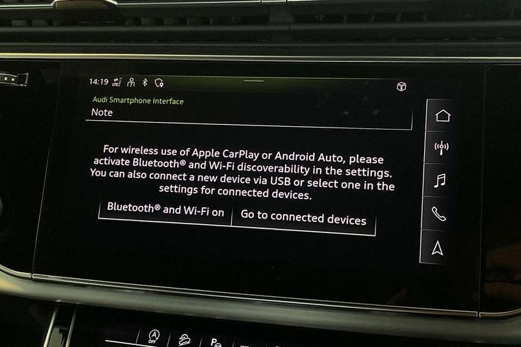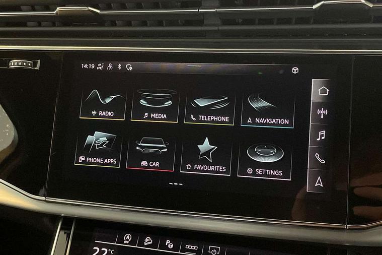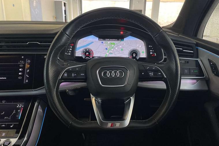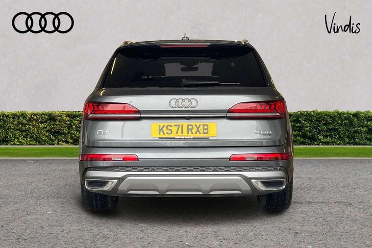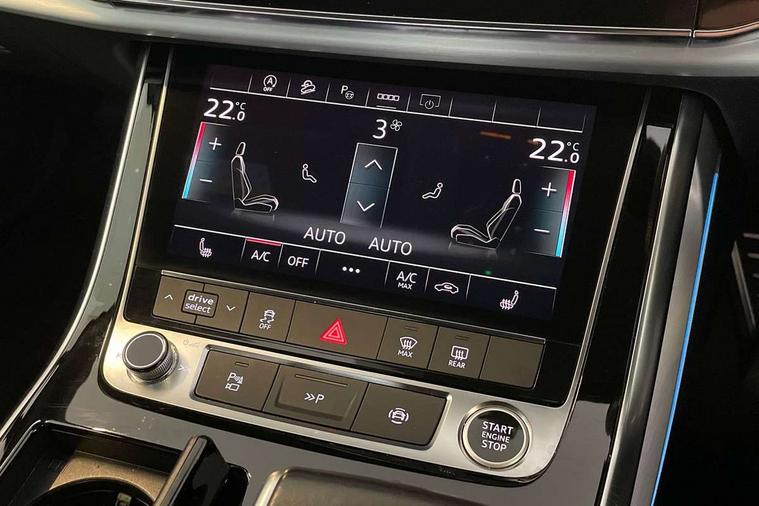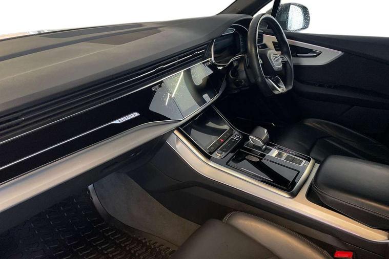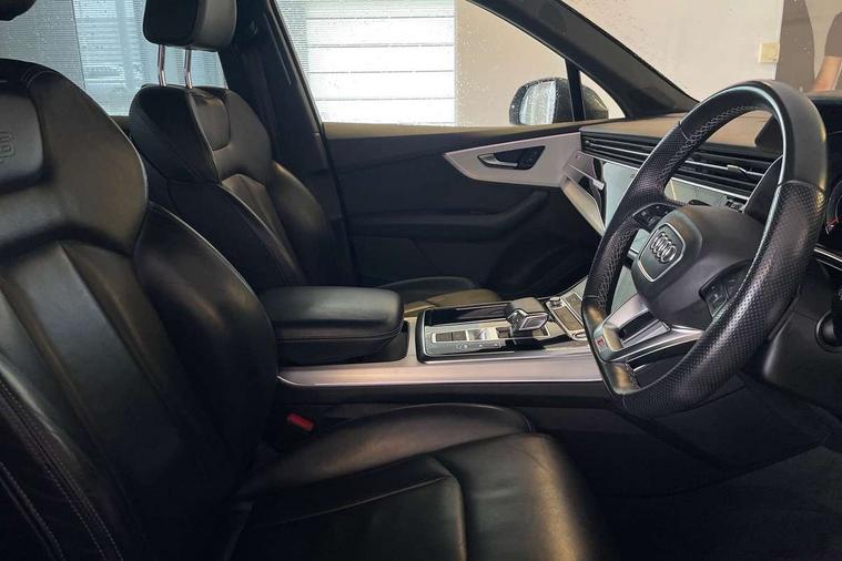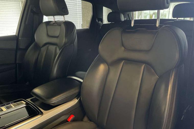 Audi connect safety and service (e-call), Audi connect with Amazon Alexa Integration, Audi drive select (Auto, Comfort, Dynamic, Efficiency, Individual, Off-road and All road), Bluetooth interface, Camera based traffic sign recognition, Electromechanical steering, MMI navigation plus with MMI touch screens includes 10.1" and 8.6" screens with haptic feedback, Natural voice recognition, Parking system plus with 360 degree display (front, rear and side sensors) - acoustic and visual park assist system, Power operated tailgate, Rear view camera, Smartphone interface includes wireless Apple carplay/Android Auto, Start/stop system, 48V Mild hybrid technology, Adaptive air suspension, Quattro all wheel drive with self locking centre differential, Audi music interface - front 2 USB-C ports with charger and data functions, Audi sound system with 6 channel amplifier, 180 watt amplifying capacity and 10 loudspeakers including subwoofer, DAB digital radio module, 3rd brake light, Aluminium roof rails, Aluminium window trim, Audi matrix LED headlights with dynamic front and rear indicators, Auto dimming frameless rear view mirror, Body coloured door mirrors, Electrically adj heated/folding + automatically dimming exterior mirrors with memory + automatic kerb side function for passenger side exterior mirror, Heat insulating glass in windshield, Integrated LED indications in door mirrors, LED daytime running lights, LED rear tail lights, Privacy glass - dark tinted rear and rear side windows from B-pillar backwards, Rear side wing doors, Rear wiper, S Line badge on wings, S line bumpers in full body colour paint finish, S line roof spoiler, S line styling side ventilation grilles and side skirts, 2 seat bench in 3rd row, 2 zone automatic climate control, 3 seat bench in 2nd row, 7 seat layout with ISOFIX points for the front passenger seat and rear passenger seat, Black cloth headlining, Comfort front centre armrest, Electric adjustable front seat with 4 way lumbar support, driver memory functionality, Folding rear seats, Front head restraints, Front/rear floor mats, Heated front seats, Illuminated door sill trims with S logo, LED interior ambient lighting, Luggage compartment cover, Luggage compartment sill protection in stainless steel, Rear head restraints, Single front passenger seat, Stainless steel pedals, Sunvisors with illuminated vanity mirrors, 3 point seatbelts on all rear seats, Audi pre sense front, Child locks on rear doors, Driver and front passenger, front side and curtain airbags, Electromechanical parking brake, Electronic Stabilisation Control (ESC) including ABS, ASR and EDL, Extended pedestrian protection measures, Hill hold assist, Seatbelt monitoring, Tyre pressure loss indicator, Warning triangle and first aid kit, Anti theft alarm, Anti-theft wheel bolts and wheel loosening detection, Keyless Go, Remote central locking, Darkened matt brushed aluminium inlays, Tool kit, Tyre repair kit,