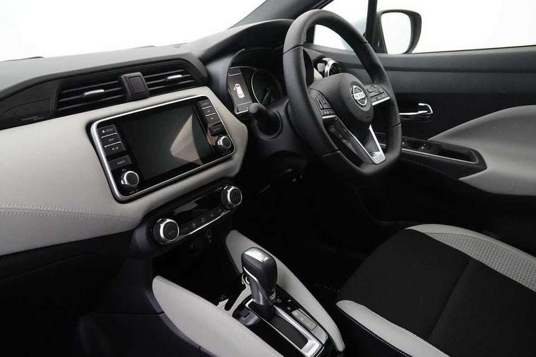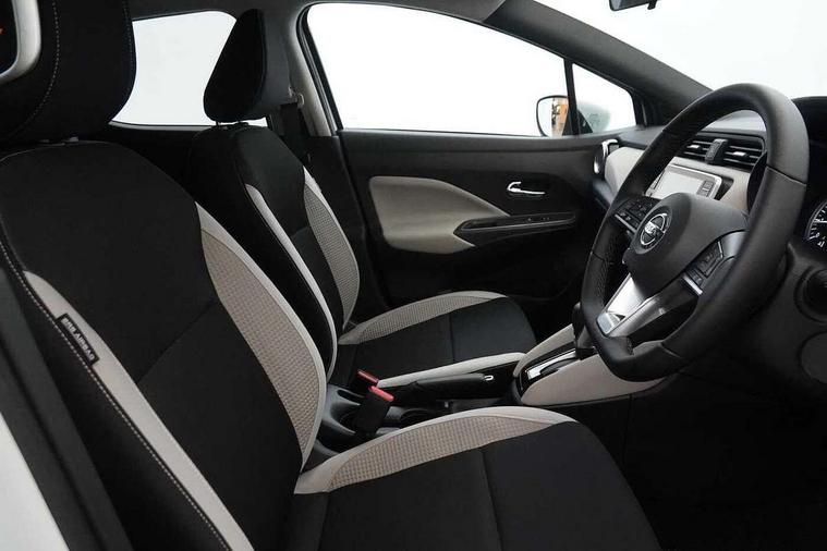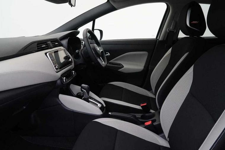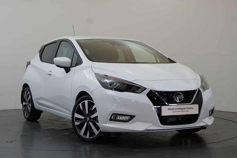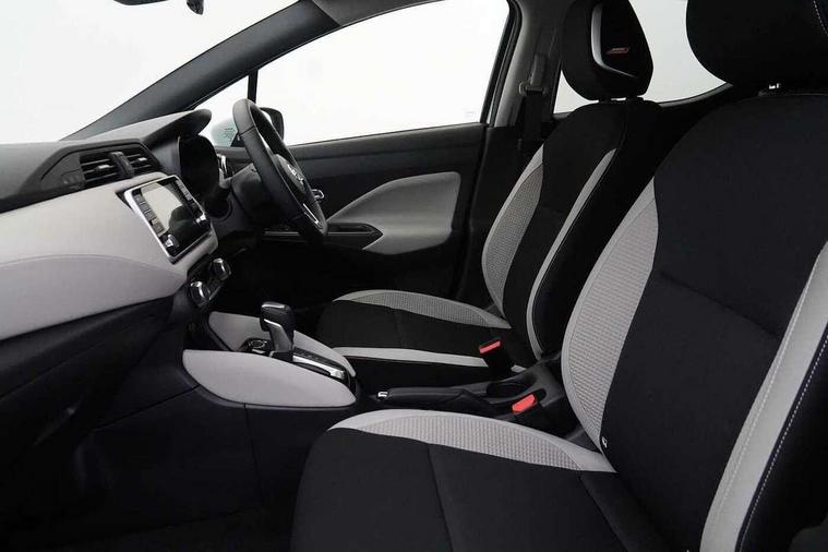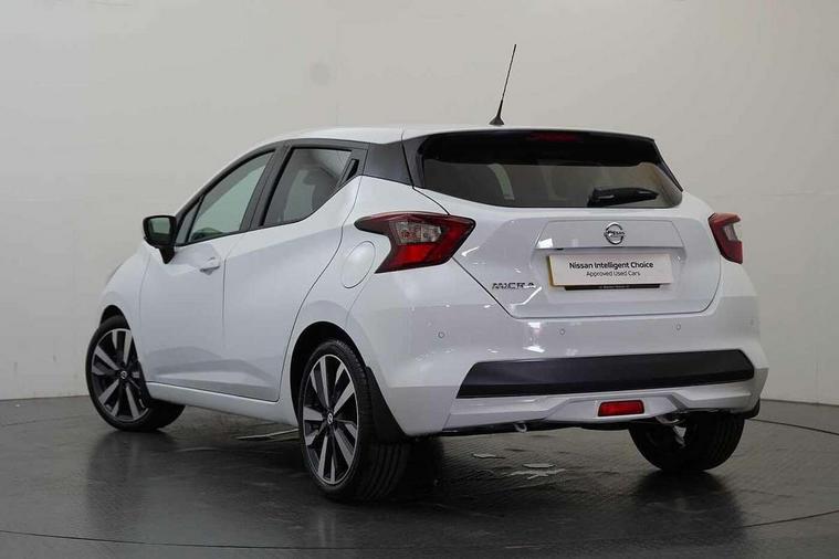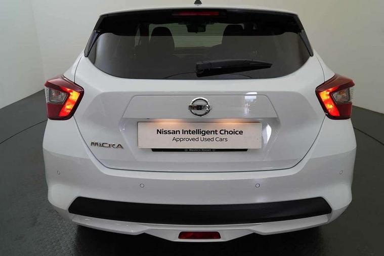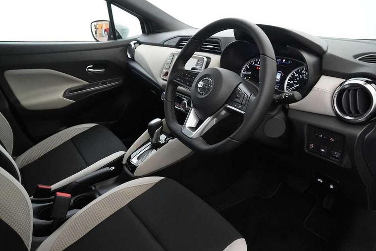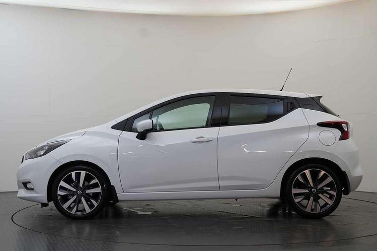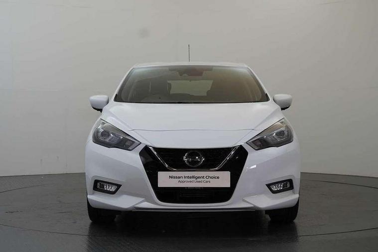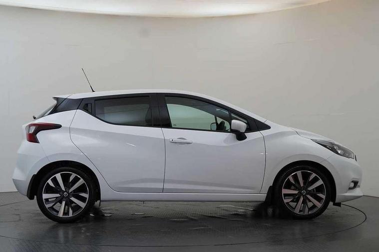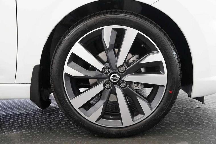 360 degree around view monitor, Adjustable speed limiter, Advanced drive assist display 5'' TFT coloured screen, Bluetooth system, Cruise control, eCall emergency call system, Engine start button, Lane departure prevention, Lane departure warning system, Nissan Connect touchscreen navigation and Entertainment system, Outside temperature gauge, Power assist steering, Rear parking sensors, Rear view camera, Smartphone integration with Apple CarPlay and Android auto, Stop/start system, TomTom services, Traffic sign recognition, Trip computer, Audio system with MP3, DAB Digital radio, Steering wheel mounted audio controls, USB/iPod connection, Antenna, Auto dimming rear view mirror, Automatic activation of hazard warning lights, Automatic headlights, Body colour front door handles, Body coloured bumpers, Body coloured door mirrors, Concealed rear door handles, Electric folding door mirrors, Front and rear electric windows, Front fog lights, Heated door mirrors, High beam assist, High mounted stop lamp, Jacknife key type x1, LED Headlights, LED signature daytime running lights, LED turn indicators on door mirrors, Rain sensor windscreen wipers, Rear privacy glass, Rear roof spoiler, Rear side wing doors, Rear wiper with reverse link, Variable front intermittent wipers, 12V power point front, 2 height adjustable rear headrests, 2 x front and 1 x rear cup holders, 3 seat bench in 2nd row, 60/40 split folding rear seat, Automatic air conditioning, Boot compartment cover, Boot light, Chrome interior door handles, Driver's seat manual height adjust, Driver/passenger sunvisors and vanity mirrors, Front and rear door pockets with bottle holders, Front console storage box, Gear shift indicator, Height adjustable front headrests with satin sliver decoration, Illuminated electric window switch, Isofix front passenger and rear seat preparation, Leather wrapped gear shift knob, Leather wrapped parking break, Leather wrapped steering wheel, LED ambient lighting in front console storage, Map reading lamp, Parcel shelf, Passenger seat back pocket, Reclining front seats, Single front passenger seat, Synthetic leather front door pads, Synthetic leather instrumental panel inserts, Tilt/telescopic adjustable steering wheel, BOSE Personal audio pack - Micra, ABS+EBD+Brake assist, Crash sensor, Driver/Front Passenger airbags, Front and rear curtain airbags, Front side airbags, Height adjustable front seatbelts with pre-tensioners and load limiters, Hill start assist, Intelligent emergency braking with pedestrian recognition, Passenger airbag deactivation system, Rear door child safety locks, Rear seatbelts with pre-tensioners and load limiters, Seatbelt warning, Three 3 point rear seatbelts, Tyre pressure monitoring system, Warning triangle and first aid kit, Anti-theft immobiliser, Intelligent key with push button ignition, Remote central locking, 17" Diamond cut alloy wheels, Tyre repair kit,