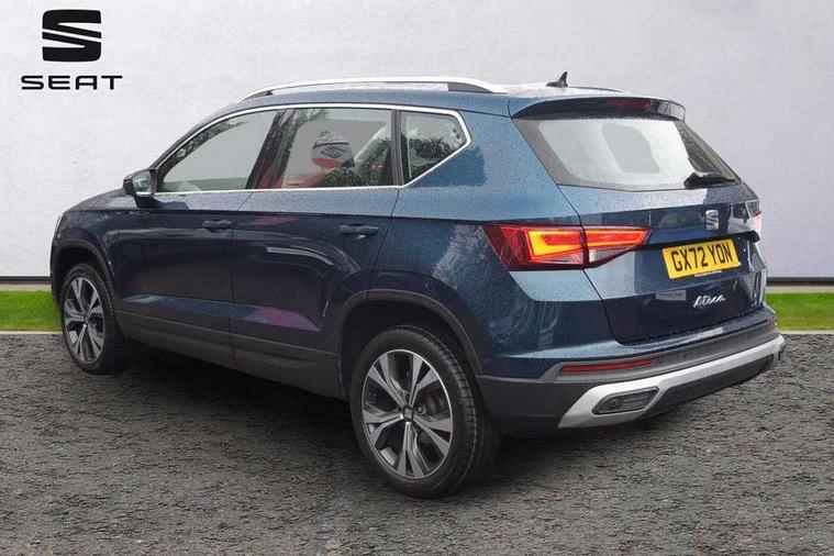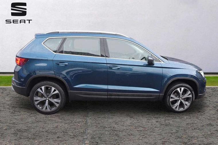 8" Digital cockpit, Colour multi-function on board computer display, Cruise control system with speed limiter, E-call, Outside temperature gauge, PAS, SEAT drive profile with driving experience button - Normal, Sport, Eco and Individual mode, steering and throttle response, Self parking functionality (includes front and rear parking sensors), Trip computer, Wireless full link smartphone integration, Wireless phone charger, Steering wheel mounted audio/phone controls, Black wheel arch surrounds, Body colour bumpers, Chrome front grille frame, Chrome roof rails, Chrome side window trim, Daytime running lights, Door mirrors with welcome light silhouette, Dynamic headlight range control with self adjusting whilst driving, Electric adjustable/heated/folding door mirrors, Front and rear electric windows, Full LED headlamps with lens and LED front fog lamps with cornering function, LED rear tail lights with dynamic indicators, Rear fog lights, Rear side wing doors, Rear wash/wipe, Simulated exhaust pipes, 12v socket in front, 3 seat bench in 2nd row, 60/40 split folding rear seat, Cloth upholstery with front comfort seats, Drawer under right front seat, Dual zone climate control, Front and rear head restraints, Front centre armrest, Front seat back storage pockets, Height adjustable driver and passenger seat with lumbar adjustment, ISOFIX points in outer rear seats with top tether anchorage points, Leather steering wheel and gear knob, Rear armrest and easy back seat release mechanism from boot, Single front passenger seat, Interior lighting pack - Ateca, Navigation system pack with DAB - Ateca, 3x3 point rear seatbelts, ABS, Traction control system (TCS), Electronic stability control (ESC) and Electronic differential lock system (XDS), Airbags - Driver and front passenger airbag with deactivation, front side, two curtain and driver's knee airbags, Electric parking brake with auto hold function, Front and rear seatbelt reminder, Front assist with autonomous emergency braking, Hill hold control, Manual rear child locks, Tiredness recognition system, Traction control, Tyre pressure monitoring system, Alarm, Keyless entry, Locking wheel bolts, Chrome interior detailing, 18" Performance machined alloy wheels 36/2 in nuclear grey,