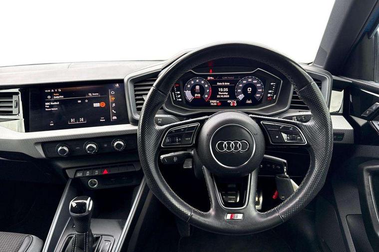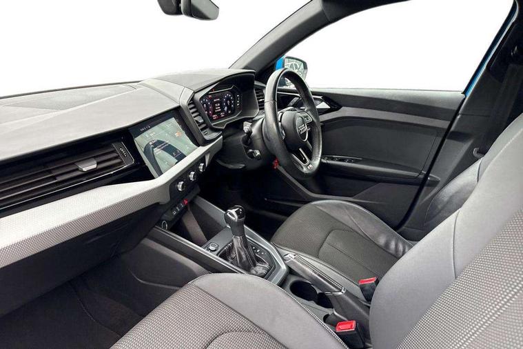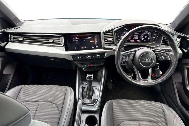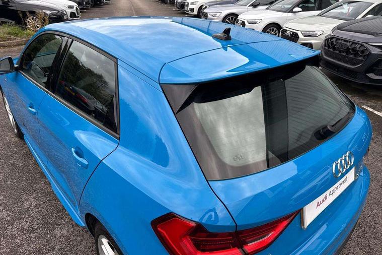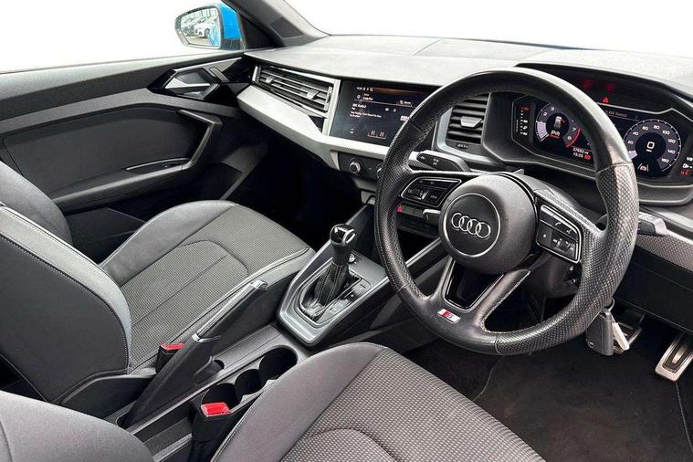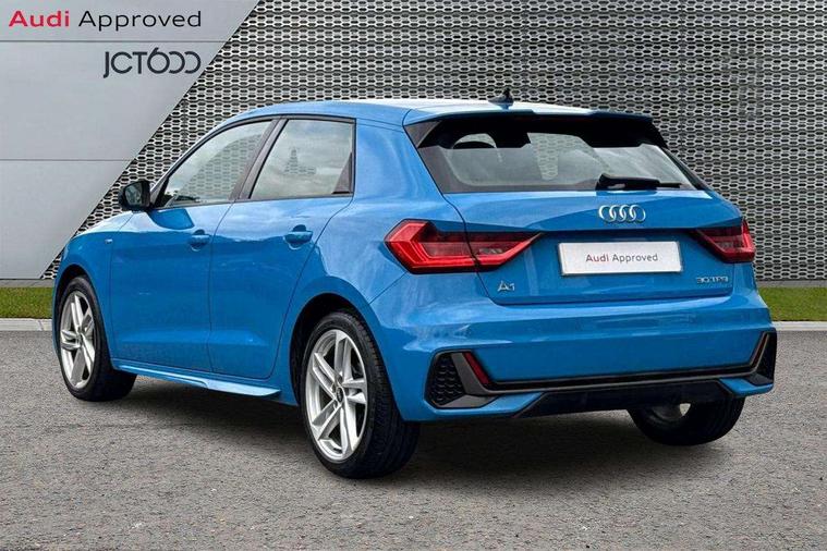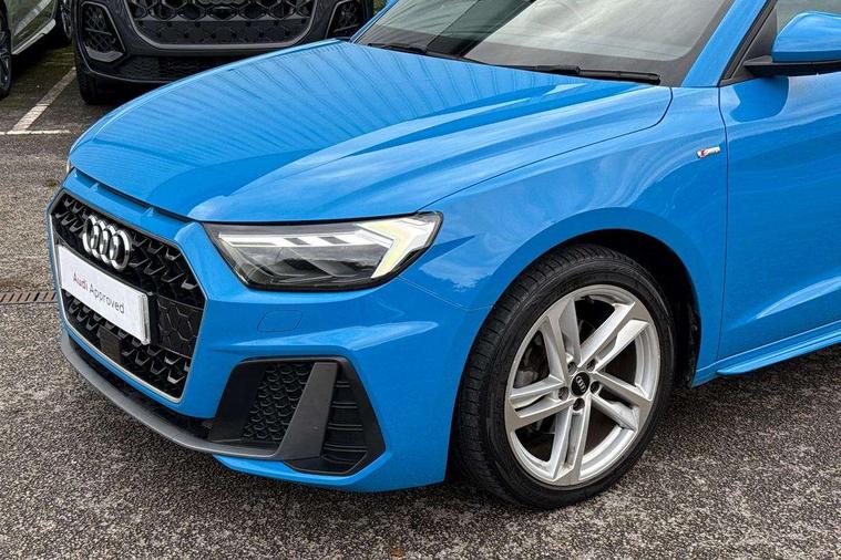 10.25" Digital instrument cluster display classis style instrument dials + speed, odometer, time, outside temperature, telephone menu + fuel level warning, Audi connect safety emergency and service including E-call, Audi drive select - power steering assistance + engine + gear shift 3 preset modes (auto, dynamic, efficiency and an Individual mode), Audi smartphone interface with connect compatible smartphone via USB directly MMI display + Nav, music, third party apps controlled via MMI controller, Automatic start/stop system, Bluetooth interface, Cruise control, Driver's information system, Electromechanical power steering, Lane departure warning system, Service interval indicator, Speed limiter, Voice control system, Washer fluid level indicator, Sports suspension, 1 x SDXC card reader, 2 x USB type C connection points, DAB Digital radio, MMI radio plus with 8.8" colour MMI display screen and MMI touch, Auto dimming rear view mirror, Body coloured door mirrors, Door sills with aluminium inlays and S Line logo, Electric front and rear windows, Electrically adjustable, heated, folding door mirrors with integrated LED side indicator, Front side air inlets in grained matt black and C frame in titanium black, Heat insulating glass windscreen and side windows, Heated rear windscreen, LED headlights with LED rear lights + dynamic rear indicators + headlight adjustment and high beam, turning light + LED daytime running lights, Radiator grille and rear diffuser in matt titanium black, Radiator protective grille frame in matt aluminium silver, Rain and light sensors, Rear fog lights, Rear wiper, S line badges on front wings, Side front spoiler lips in grained matt black, 12V socket in centre console with two cup holders, 3 rear seats with headrests, 40:60 Split folding rear seat or folded fully, Black cloth headlining, Driver and passenger seat with manual height adjust with forward and backwards adjustment, Front and rear black floor mats with contrast stitching in fine silver, Front head restraints, Height and reach adjustable steering wheel, ISOFIX child seat mounting for front passenger and outer rear seats including top tether attachment point of outer rear seats, Leather gear knob with aluminium trim, Luggage compartment light with front and rear reading lights, Manually adjustable lumbar support in front seats, Stainless steel pedals, LED interior lighting pack - A1, Luggage compartment pack - A1, S line exterior styling pack - A1 Sportback, 3x3 point rear seatbelts, Brake assist function, Driver and front passenger airbag with front side and head airbags, Electronic Stability Control including ABS, EBD, ASR and EDL, Front passenger airbag deactivation switch, Hill hold assist, Seatbelt height adjustment for front seats, Seatbelt monitoring, Tyre pressure warning light, Warning triangle and first aid kit, Anti theft alarm, Anti theft wheel bolts and loose wheel warning, Audi pre-sense front with pedestrain and cyclist recognition, Immobiliser, Remote central locking with 2 foldaway keys, Aluminium trim for control switches, air vents and digital instrument cluster, Silver grey inlays polygon structure in diamond paint finish, Structured grey accent areas including air vents, door handle recesses and centre console in quartz paint finish,