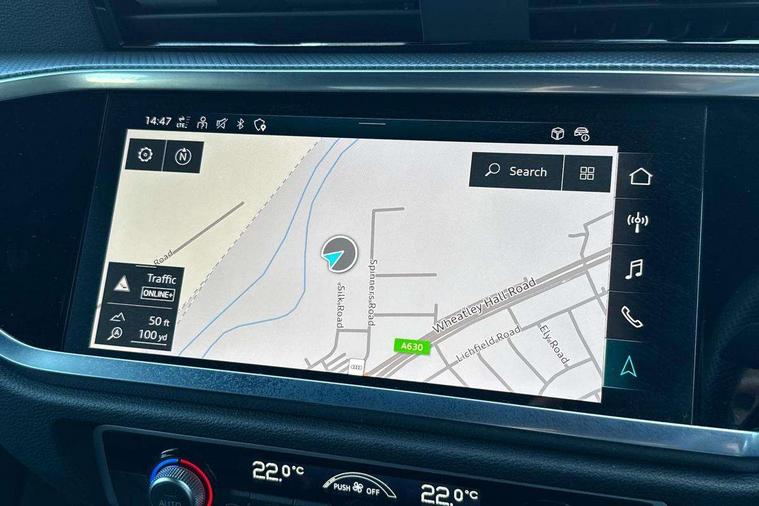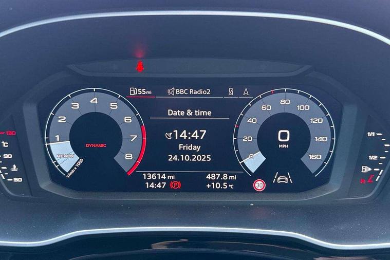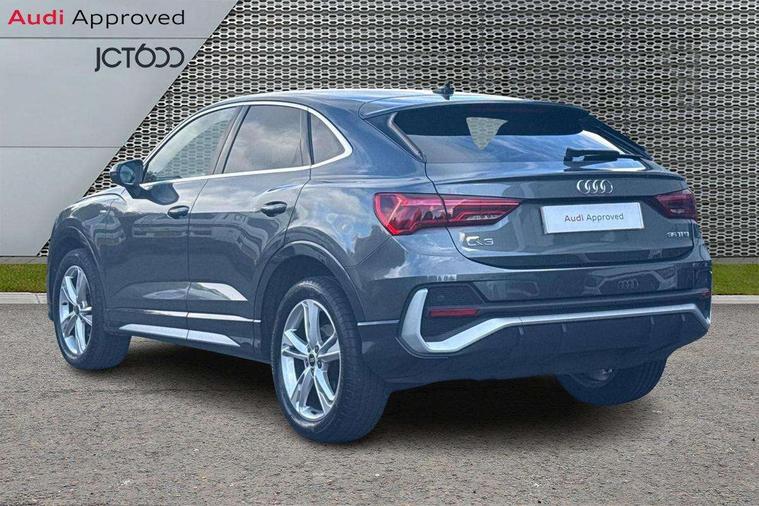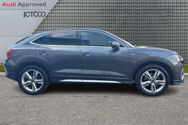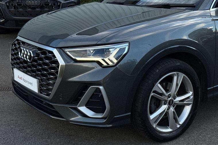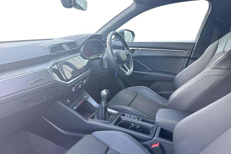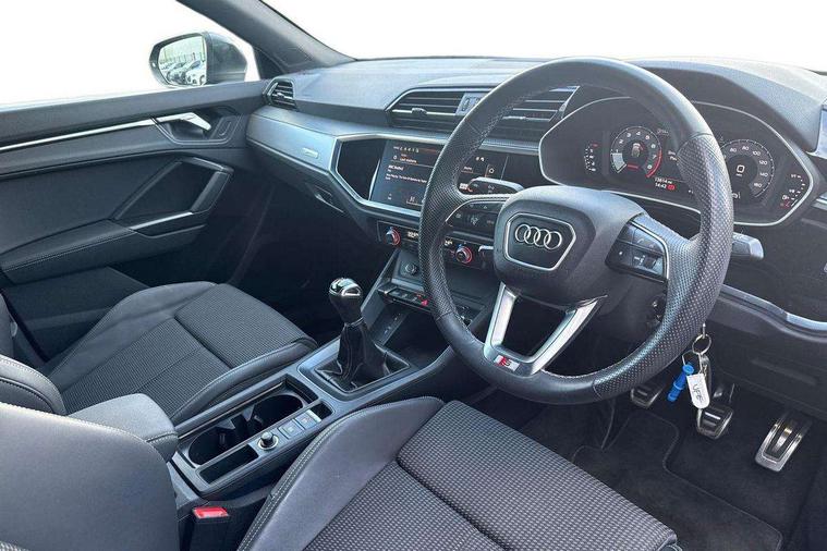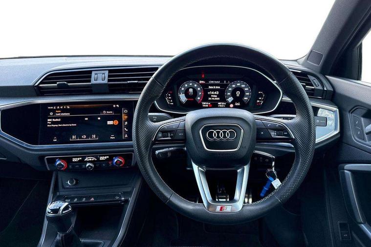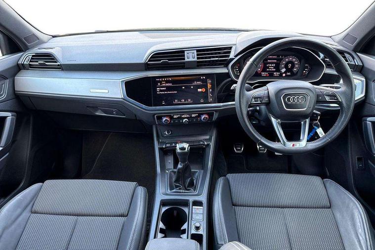 Audi drive select, Audi lane departure warning, Audi Virtual Cockpit - 10.25" display, Bluetooth interface, Camera based traffic sign recognition, Cruise control + speed limiter, Legal emergency call, MMI Navigation Plus with high resolution 10.1 inch touchscreen colour display, Power operated tailgate, Progressive steering, Rear parking sensors, Service interval indicator, Smartphone interface includes wireless Apple carplay/Android Auto, Start stop system with recuperation, Voice control system with natural language interaction, Sports suspension, 2 USB-C ports with charge and data functions, 6 passive loudspeakers, DAB digital radio module, Acoustic windscreen, Aluminium window trim, Auto dimming frameless rear view mirror, Diffuser grille in grained matt black, Diffuser trim in selenite silver, Electrically folding, adjustable and heated door mirrors with integrated LED side indicators and kerb view function for passenger side, Front and rear electric windows, Front fog lights, Front side air inlets in selenite silver, Front underbody protection in manhattan grey paint finish, Grille surround in aluminium silver matt, High gloss black finish B and C pillars, LED Dynamic rear indicators, LED headlights with LED daytime running lights, LED rear lights, LED third brake light, Privacy glass dark tinted rear and rear-side windows (from B-pillar backwards), Radiator grille in anthracite black with inlay in matt aluminium silver, Rain and light sensors, Rear side wing doors, Rear underbody protection in matt black, Rear wiper, S line badges on front wings, S line front and rear bumpers and side skirts in contrasting Manhattan grey paint finish, Side skirt insert in matt Platinium grey, Variable front intermittent wipers, 12V socket in rear centre console, 3 seat bench in 2nd row, 3 spoke leather multifunction steering wheel features S badging and grips in perforated leather with contrast stitching, 40:20:40 folding with manual adjustment for 60:40 forwards/backwards position and backrest angle, Adjustable rear seat bench/backrest with centre armrest and cupholder, Black cloth headlining, Dual zone electronic climate control, Front and rear black floor mats with contrast stitching, Front and rear headrests, Front and rear roof module including reading lights, Front centre armrest, Glove compartment lighting, Height and reach adjustable steering wheel, Illuminated door sill trims with S logo, ISOFIX child seat mounting for front passenger with airbag deactivation and outer rear seat including top tether attachment point for outer rear seats, Luggage compartment light right in white, Luggage compartment sill protection in stainless steel, Manual front seats with height adjustment, Perforated leather gearknob, Single front passenger seat, Stainless steel pedals, Ambient lighting pack - Q3, Non smoking pack - Q3, 3x3 point rear seatbelts, 6 airbags - Driver, front passenger, curtain and side windows, Audi pre-sense front with pedestrain and cyclist recognition, Electrically operated child locks on rear doors, Electromechanical parking brake, Electronic stabilisation control including ABS, ASR and EDL, Front seatbelt reminder, Hill descent control, Hill hold assist, Pre sense basic, Seatbelt monitoring, Tyre pressure warning, Warning triangle and first aid kit, Anti theft alarm, Anti theft wheel bolts, Immobiliser, Remote central locking, Aluminium look interior elements, Black dashboard, Dark matt brushed aluminium inlay, Detail dashboard around MMI touch colour display in glass look, black with surround in aluminium look, Leatherette door armrest,