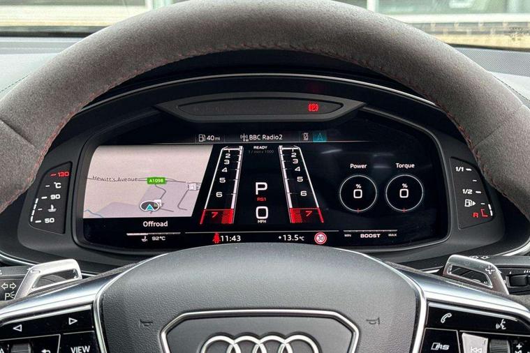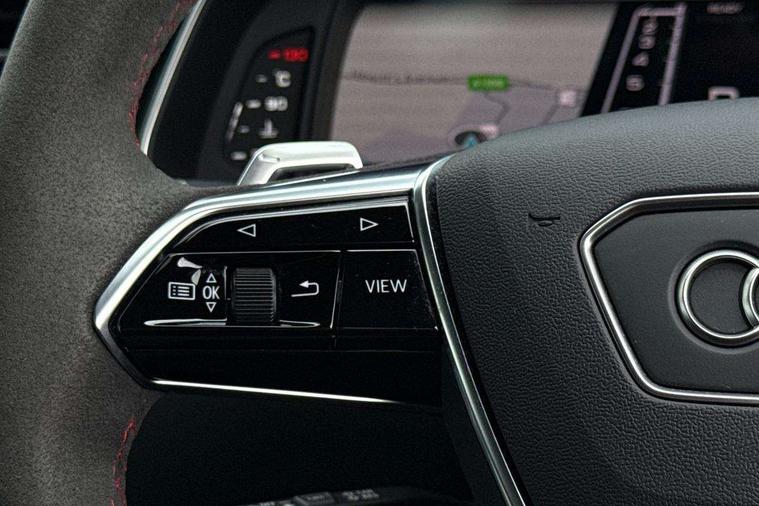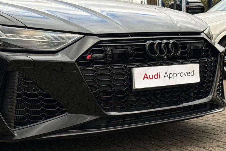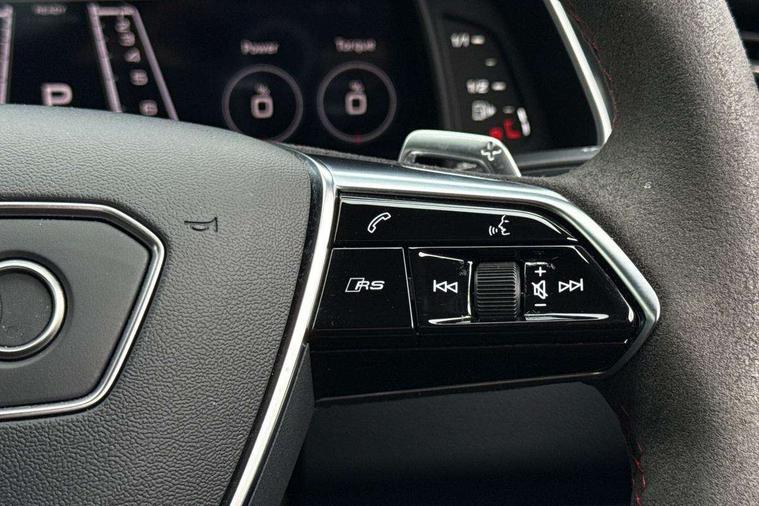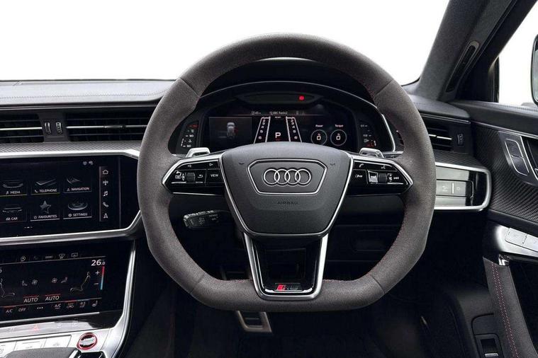 Audi connect safety and service (e-call), Audi connect with Amazon Alexa Integration, Audi drive select with 2 configurable RS modes, Audi smartphone interface includes wireless Apple carplay/Android Auto, Audi virtual cockpit plus with RS specific design and 12.3" display with additional graphic display options, Automatic start/stop system, Bluetooth interface, Dynamic all wheel steering, Head up Display, Lane departure warning system, MMI navigation with MMI touch + twin touch screens 10.1" and 8.6" with haptic and acoustic feedback, Night vision assistant, Operating buttons in black, glass look with haptic feedback including extended aluminium look, Power door closure, Power operated tailgate, Service interval indicator, Surround view camera system, Voice control system, 48V Mild hybrid technology, 73 litre fuel tank, Quattro sports differential, RS Sports suspension plus with dynamic ride control, 2 USB-C ports with charging functionality in the rear, Audi music interface, Bang & Olufsen 3D Premium Sound System, DAB Digital radio, 3rd brake light, Adaptive windscreen wipers with integrated washer jets, Black window trims, Electric front/rear windows, Electrically adjustable, heated and folding door mirrors with integrated LED indicators and kerb view function for passenger side, Frameless auto dimming interior rear view mirror, HD Matrix LED headlights with Audi laser light with dynamic light design and dynamic turn signal, Headlight washers, Heat insulating darkened glass in side and rear windows, LED daytime running lights, LED rear combination lamps with dynamic light design and dynamic turn signal, Panoramic glass sunroof, Privacy glass with rear/side windows and acoustic glazing side windows, Radiator grille in honeycomb structure, large front air inlets and rear diffuser in gloss black, Rain and light sensors, Rear side wing doors, Rear wiper, RS front bumper with air inlets on both side, RS rear spoiler in body colour, RS sports exhaust system with high gloss black oval tailpipe trims, 3 seat bench in 2nd row, 4 way electric lumbar support for driver and front passenger, 4 zone deluxe automatic climate control, Electric steering wheel adjustment, Electrically adjustable front seats with driver memory, Entry LED with RS Performance projection (Audi Beam) in front and rear, Front and rear headrests, Front centre armrest, Front seat ventilation, Heated front and rear seats, Illuminated front and rear door sill trims with aluminium inlays and RS6 logo, ISOFIX and Top Tether child seat mounting for the outer rear seats, ISOFIX child seat mounting and Top Tether with front passenger airbag deactivation, RS sports seat plus, Single passenger seat, Stainless steel pedals and foot rest, Valcona leather upholstery with perforated honeycomb and coloured RS logo, Air quality pack - RS6, Ambient lighting pack plus - RS6, City assist pack - RS6 Performance/carbon/vorsprung, Park assist pack with park assist plus - RS6, Storage pack - RS6, Tour pack - RS6 Performance/carbon/vorsprung, 3 point rear seatbelts, Airbags - Front side, front and rear including head, Direct tyre pressure monitoring system, EBD - Electronic brakeforce distribution, Electromechanical parking brake, Electronic Stability Control (ESC) including ABS, ASR and EDL, Extended pedestrian protection measures, Manual child lock in rear doors, Rear side airbags, Warning triangle and first aid kit, Anti theft alarm with tow away protection, Immobiliser, Keyless Go, Remote central locking, Tyre repair kit,