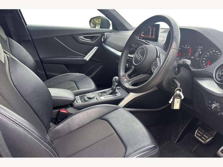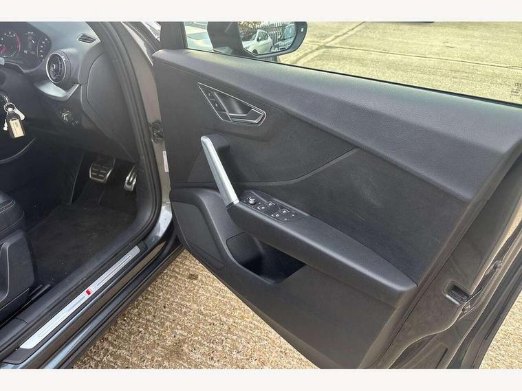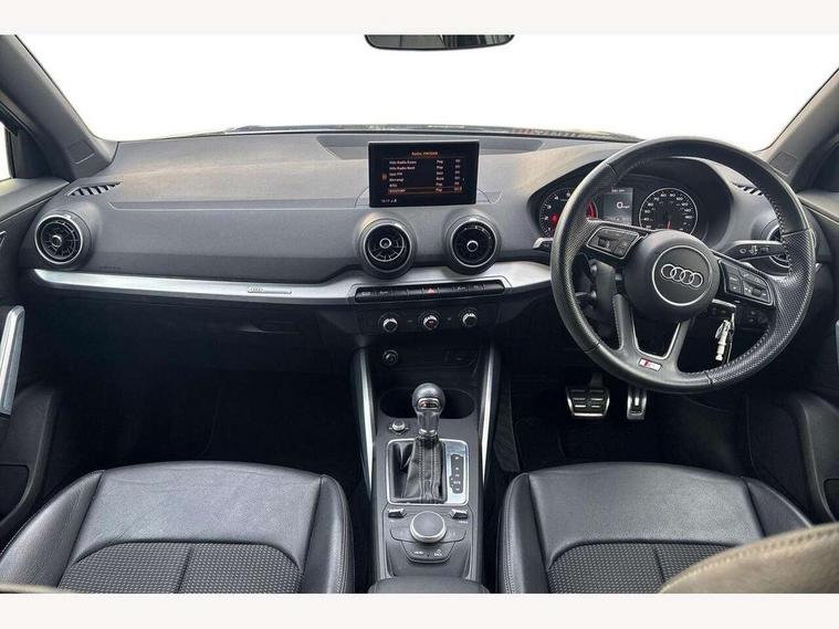 Audi drive select, Audi smartphone interface, Bluetooth hands free telephone connection, MMI - Multi Media Interface control system, MMI SD card Navigation, PAS, Service interval indicator, Voice control system, Audi music interface, Aux input, CD player, DAB digital radio module, MMI radio plus with 7" colour MMI screen and MMI controller, USB port, Body colour door mirrors, Chrome exhaust tailpipe, Door mirror integrated indicators, Electrically adjustable and heated door mirrors, Front and rear electric windows, Headlight washers, LED headlights with LED rear lights + dynamic rear indicators, Rear wiper, S Line body styling, Sunband for windscreen, Black cloth headlining, Centre console with storage/cupholders, Floor mats with contrast stitching, Front and rear door pockets, Front and rear headrests, Front centre armrest, Front sports seats, Glovebox, Height adjustable front seats, Height/reach adjust steering wheel, Illuminated door sills, ISOFIX on front passenger and rear outer seats, Stainless steel pedals, Storage compartment in rear centre console, Full body colour bumper pack - Q2, 3x3 point rear seatbelts, ABS+Electronic Brake force Distribution, Curtain airbags, Driver and passenger airbags, Driver and passenger side airbags, EDL + ASR, Electrically operated child locks on rear doors, Electromechanical parking brake, ESP, Multi-Collision braking, Pre-sense front with pedestrian recognition, Seatbelt warning light, Tyre pressure monitoring system, Warning triangle and first aid kit, Locking wheel bolts, Remote central locking, Thatcham category 1 alarm + immobiliser, Aluminium interior trim, Matt brushed aluminium fascia and door trim inlays,