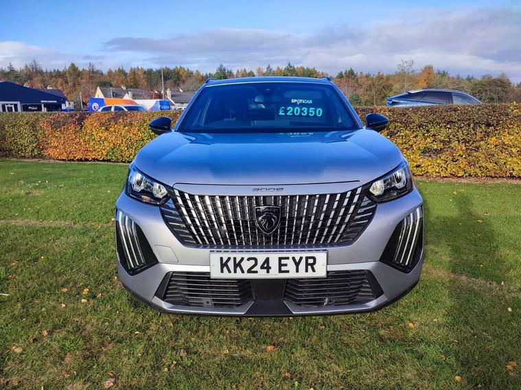 Bluetooth telephone facility, Driver attention warning, E-call, Exterior temperature indicator with ice warning, Front and rear parking sensors, Multi function trip computer, PEUGEOT i-Cockpit with 10" high definition capacitive touchscreen, PEUGEOT i-Cockpit with compact steering wheel, PEUGEOT i-Cockpit with configurable headup instrument panel, Speed limit recognition and recommendation, Wireless mirror screen with apple carplay and android auto, Petrol Particulate Filter, 1x USB-C socket in rear and 1x USB-A socket in rear, 2 USB-C ports in the front, 6 speakers radio with mp3 compatible, DAB Radio (Digital Audio Broadcasting), 2 X Rear number plate lights, Automatic hazard light activation upon heavy brake application, Black front wing trim with gloss black detail, Body coloured exterior door handles, Colour coded rear roof spoiler, Colour coded roof, Dark tinted rear side and tailgate windows, Diamond black mirror shells, Eco LED headlights, Electric, heated, and power folding door mirrors, Electrochrome rear view mirror, Front bumper - Meteor grey lower trim, Gloss black finish on B pillar, Gloss black rear cluster connecting strip, Gloss black roof bars, Headlights left on audible warning, LED daytime running lights with distinctive 3 claw signature, LED side indicator lights integrated into door mirrors, LED third brake light, Model designation badges front and rear, One touch electric front/rear windows with pinch protection, Radiator grille - Body coloured top edge trim, Radiator grille - body coloured vertical chequered grille, Rear full LED 3D peugeot signature claw effect lights with daylight function, Rear reversing lights, Rear side wing doors, Rear windscreen wiper triggered automatically in reverse gear, Tailgate with heated rear windscreen and wiper blade, Twin chromed exhaust pipes, Wheel arch extensions, 1/3 to 2/3 split folding rear seats, 12V socket, 3 seat bench in 2nd row, Automatic air conditioning with pollen and active carbon filter, Central front armrest with storage compartment, Driver and front passenger comfort seats, Driver seat manual adjustment - height, longitudinal and back rest angle, Electric power steering with reach and rake adjustable steering column, Front LED interior light with 2 reading spotlights and rear interior light with timer, Front passenger seat manual adjustment - height, longitudinal and back rest angle, High centre console, Leather steering wheel, Multifunction steering wheel, Piano keys: Gloss black and chrome toggle switches to access main functions of the vehicle and touchscreen functions, Roof lining - Mistral black, Seatbelt unfastened on the move audible and visual alert for front and rear seats, Single front passenger seat, Tri material cloth/leather effect upholstery, Two position modular boot floor, Visibility pack - 2008, 2x 2nd row ISOFIX child seat mountings, ABS (Anti-lock Braking System) with EBD (Electronic Brakeforce Distribution) and EBA (Emergency Braking Assistance), Active safety brake with night function/cyclists/pedestrians, Adaptive driver and front passenger airbags with passenger airbag deactivation function, Child locking functionality on rear doors, Driver/front passenger side airbags, Electric parking brake, ESP (Electronic Stability Program) + Hill Start Assist, Front and rear curtain airbags, Front and rear disc brakes, Front and rear three-point retractable seatbelts, with force limiters, Front optimised safety headrests and rear retractable headrests (x3), height adjustable, Tyre pressure sensor, Automatic door locking when moving off, Deadlocks, Electronic code immobiliser, Thatcham category 1 alarm, Carbon effect Dashboard, front and rear door panel finish, 17" Karakoy diamond cut alloy wheels,