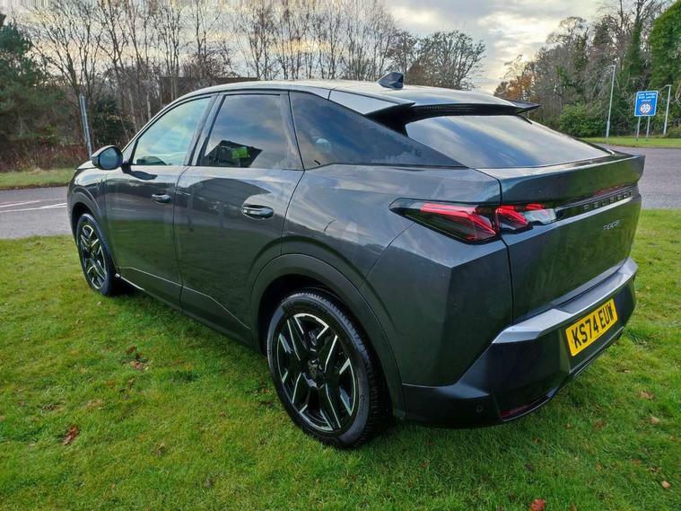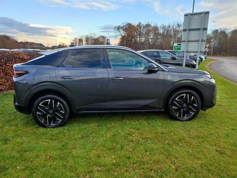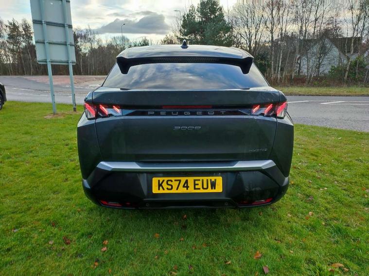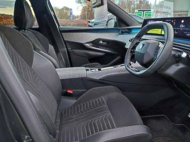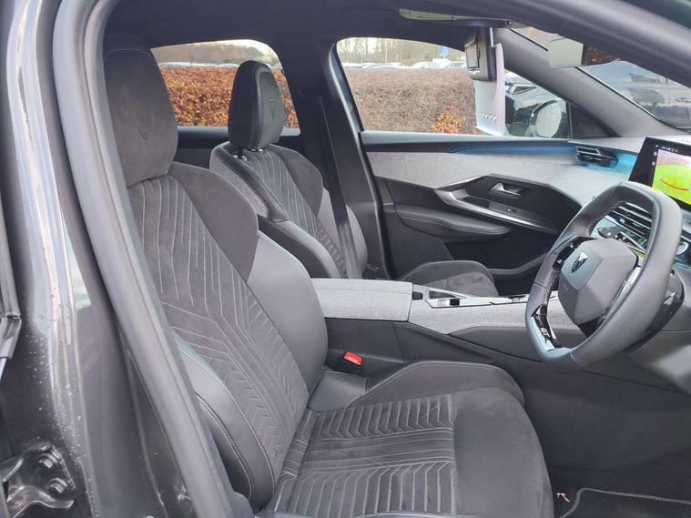 Adaptive cruise control with Stop and Go, Bluetooth with two microphones (Connect up to 2 phones), Drive modes select (Eco, normal and sport) with configurable ambient lighting, Driver foot rest, Driver profile selection, E-call, Exterior temperature indicator with ice warning, Front parking sensor, Front passenger seat detection, Hands free Smart Electric Tailgate (foot operated), Lane keep assist, Manual gear changes via steering mounted paddles, Multi function trip computer, Natural voice recognition, PEUGEOT i-Cockpit - 21" HD panoramic curved display incorporating instrument panel and touchscreen with 3colour themes, PEUGEOT i-connect advanced HD fully customisable touch screen, Navigation with Tom Tom Live updates and over the air map updates, PEUGEOT SOS and assistance, Rear parking sensor, Speed limit and traffic sign recognition and recommendation, Wireless mirror screen with apple carplay and android auto, Wireless smartphone charger with status light and ambient lighting, Dynamic stability control and electronic anti-skid system, AM/FM bi-tuner, DAB Radio (Digital Audio Broadcasting), Peugeot customisable virtual iToggles, USB-C sockets (2 x front and 2 x rear), 3008 model designation badgers front and rear in basalt grey, Acoustic windscreen, Automatic hazard light activation upon heavy brake application, Automatic headlamp activation, Automatic windscreen wiper activation with interval wiping intensity control, Black diamond roof and floating effect rear spoiler finished in nera black metallic, Body coloured exterior door handles, Dark tinted privacy glass for rear door, Tailgate and Quarter windows, Door mirrors - Welcome lighting and integrated LED indicators, Electric adjustable/heated/folding door mirrors, Flat blade wipers with magic wash integrated nozzles, Frameless electrochrome rear view mirror, Front and rear electric windows with one touch, Front grille with body coloured accents, Gloss black connecting strip between rear lights, Gloss black finish B pillar, Grained black lower door claddings and wheel arches, Heated rear window, Hybrid rear badging in basalt grey, Laminated windscreen, LED daytime running lights, LED exterior lighting, LED third brake light, Lower front and rear bumper trims in meteor grey, Orbital gloss black door mirrors, PEUGEOT shield on front wings, Pixel LED Technology headlights with adaptive high beam assist, Rain sensor, Rear full LED 3D peugeot signature claw effect lights with daylight function, Rear side wing doors, 2 cupholders in front centre console, 2 rear cupholders, 3 seat rear bench, 3x 12V sockets (Cabin front and rear and boot), 4 Grab handles retractable and damped, 4 tie down luggage rings, 40/20/40 folding rear seat backrest with fixed base, Aluminium pedals, Arch design central console with concealed storage, Cabin high efficiency filter, Central front armrest with ventilated storage compartment and LED lighting, Chrome finish interior door handles, Compact heated multifunction steering wheel with full grain leather Iced Clay stitching, gloss black and satin chrome detailing and GT badge, Dual zone climate control, Dynamic front seats, e-Toggle compact gear selector, Electric power steering with reach and rake adjustable steering column, Glasses storage box, roof mounted, LED boot light, LED footwell lights, LED front and rear roof lights, LED Glovebox light, LED illuminated driver and passenger concealed sunvisor mirrors, Luggage cover, Luxury front and rear carpet mats with Iced Clay stitching and GT logo, Mistral black pillars and headlining, Quick launch cabin heating/cooling function, Rear air vents, Rear smartphone holder, Roof lining - Meteor grey, Seatbelt unfastened on the move audible and visual alert for front and rear seats, Single front passenger seat, Stainless steel PEUGEOT door sill trims, Two bag hooks, Two position boot floor, 2x Isofix child seat fitting on outer rear seats with zipped cover, 3x3 point rear seat belts, ABS (Anti-lock Braking System) with EBD (Electronic Brakeforce Distribution) and EBA (Emergency Braking Assistance), Adaptive driver and front passenger airbags with passenger airbag deactivation function, Advanced Emergency Braking System with radar (AEBS3) providing night detection of pedestrians and cyclists, Child locking functionality on rear doors, Driver and front passenger side airbags, Electric parking brake, Front and rear curtain airbags, Front optimised safety headrests and 3 x rear retractable headrests with height adjustable, Front/rear disc brakes, Hill start assist, Post collision safety brake, Seatbelts - Front and rear outer seats with pyrotechnic pretensioners and force limiters, Tyre under inflation monitoring and detection (Indirect), 2x Keys (Lock, Unlock, Boot release function with concealed key), Acoustic vehicle alert system (AVAS), Automatic door locking when moving off, Deadlocking system, Electronic code immobiliser, Exterior passenger door lock, Locking wheel nuts, Peugeot Open and Go (keyless entry and push button start), Seatbelts reminder and unfastend warning indicator, Thatcham category 1 Perimetric and volumetric alarm with anti-lift detection, Aluminium printed dashboard and front door panel Alcove decor, Textile decor for dashboard, door panels and centre console arch, 19" YARI diamond cut alloy wheels with star center cap in orbital black, Michelin e-primacy class A tyres, Tyre repair kit includes 12V compressor, Sealant and storage box,