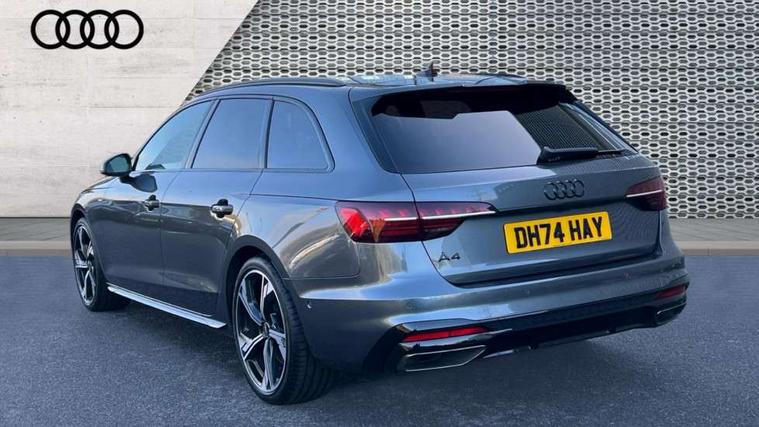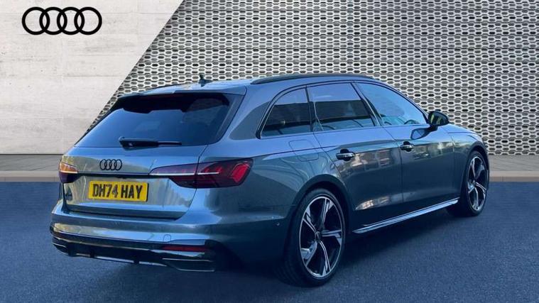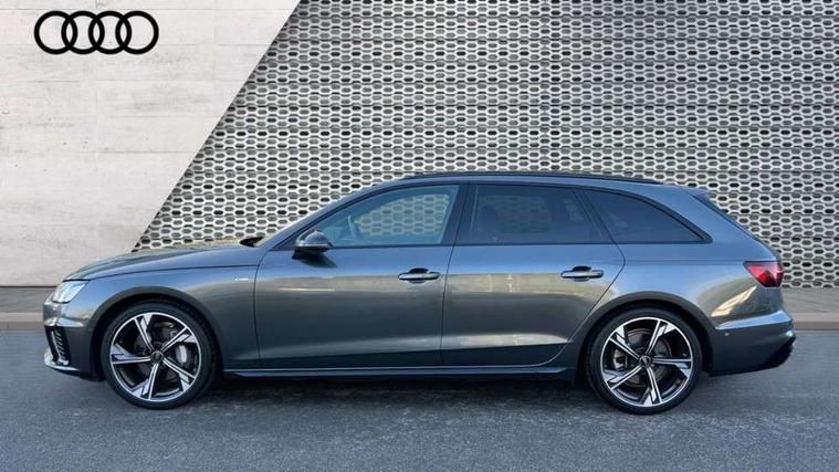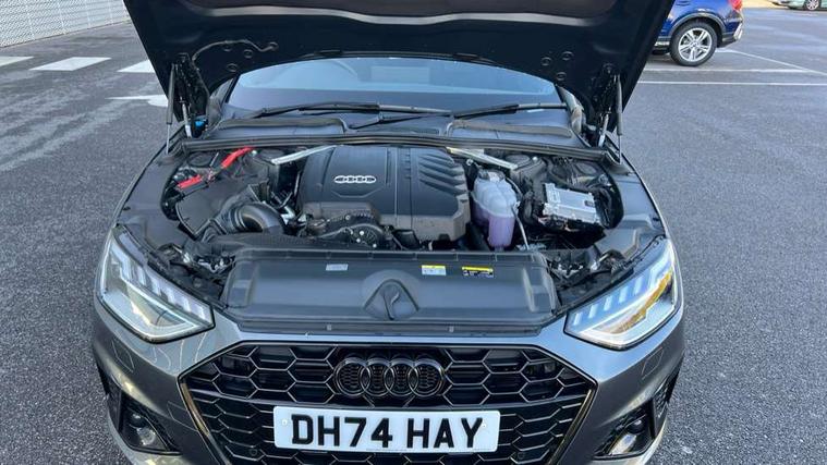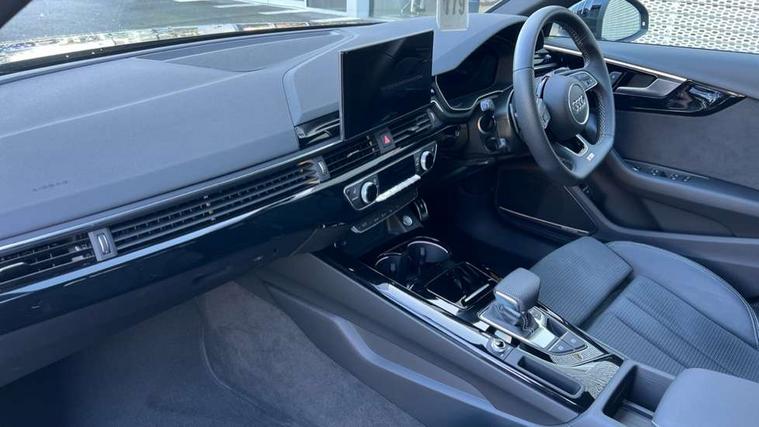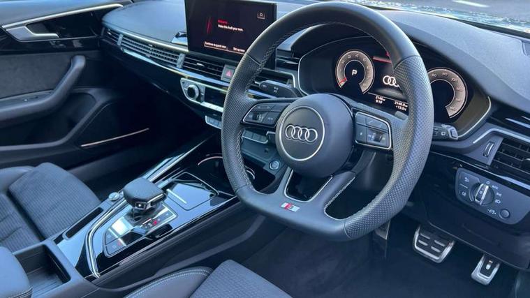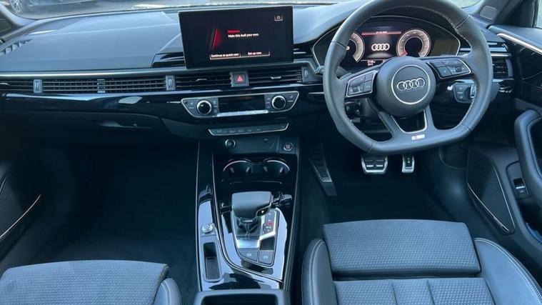 Audi connect safety and service (e-call), Audi drive select, Audi smartphone interface, Audi virtual cockpit, Automatic start-stop system with coasting functionality and efficiency programme, Bluetooth interface, Camera based traffic sign recognition, Electromechanical power steering, Email, calendar and text messages displayed via MMI, Front and rear parking sensors, Lane departure warning, MMI Navigation plus with MMI touch includes 10.1" high resolution colour MMI display, 3D map, Power operated tailgate, Rear view camera, Voice control system, 54 litre fuel tank, Sports suspension lowered by 23mm, 2 USB charging ports, 8 passive loudspeakers, DAB digital radio reception, Audi beam uses LEDs to project the audi logo onto the ground as you exit your A4, Auto dimming rear view mirror, Black Audi rings and black badging (with removed engine badging), Body colour door handles, Body colour front spoiler lip, Body colour side sill trim, Electric adjustable/heated/folding door mirrors with auto dimming, Exhaust tailpipes in dark chrome, Grained matt black side air inlets with matt aluminium silver inlay, High beam assistant, High gloss black B pillar trims and triangular rear door trim, LED headlights with LED rear lights + dynamic rear indicators + headlight adjustment and high beam, turning light + LED daytime running lights, LED third brake light, Privacy glass, Rain and light sensors, Rear diffuser in matt black with trim strip in matt aluminium silver, Rear side wing doors, Rear wiper, RS4 rear spoiler in body colour, S Line roof edge spoiler, Sport front and rear bumpers with side skirts, Variable intermittent front wash/wipe, Windscreen with acoustic glazing, 4 way electric lumbar support for driver and front passenger, 40/20/40 split folding 3 rear seat bench in 3 parts with rear centre armrest, Black carpets, Black cloth headlining, Black perforated leather gearknob, Contrast stitching on seats, steering wheel and gear lever gaiter, Deluxe 3 zone electronic climate control, Electric load area cover, Front and rear head restraints, Front centre armrest, Heated front seats, Illuminated door sill trims with S logo, ISOFIX child seat mounting and top tether, Manual seat adjustment, Single front passenger seat, Stainless steel pedals and foot rest, Black styling pack - A4 Avant, LED Interior light pack - A4/S4, 3 rear seatbelts, 6 airbags - Driver, front passenger, curtain and side windows, Attention and drowsiness assist, Electronic Stabilisation Control (ESC) including ABS, ASR and EDL, Hill hold assist, Multi collision brake assist, Pop-up bonnet for pedestrian protection, Pre sense city, Rear door child safety locks, Seatbelt monitoring, Warning triangle and first aid kit, Anti theft alarm, Anti theft wheel bolts, Central locking, Keyless Go, Piano black finish inlay, Tool kit, Tyre repair kit,