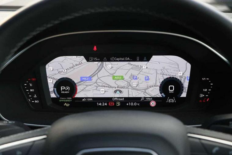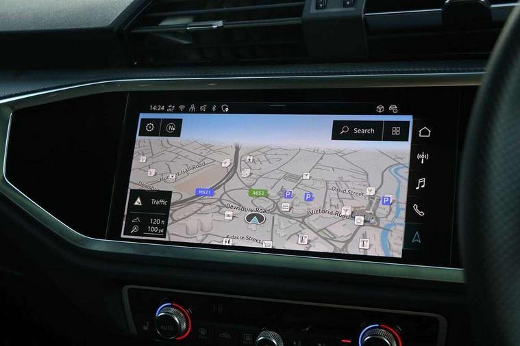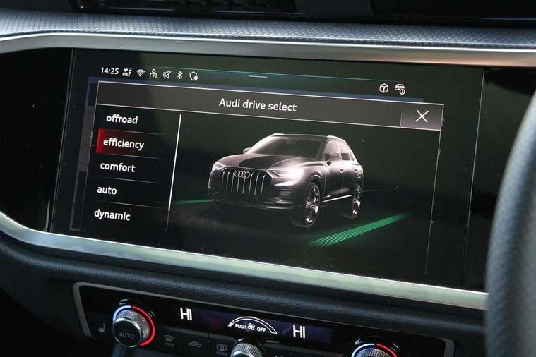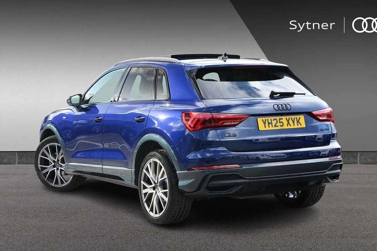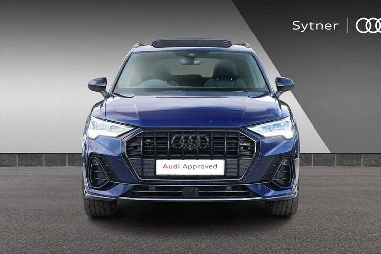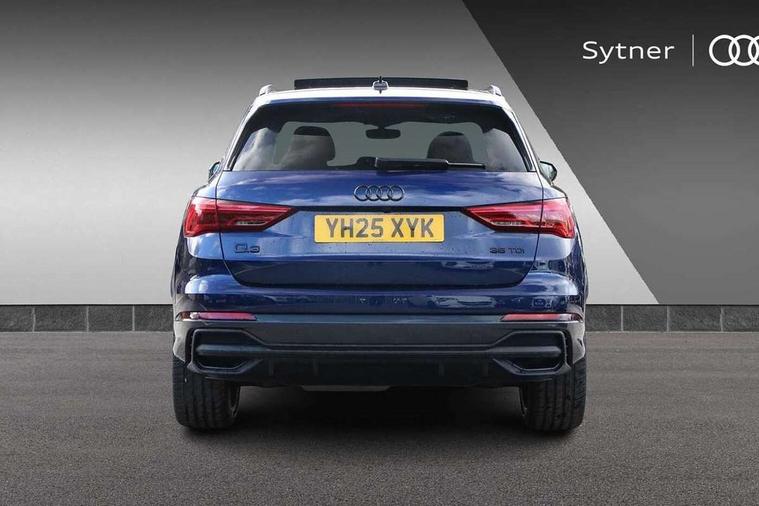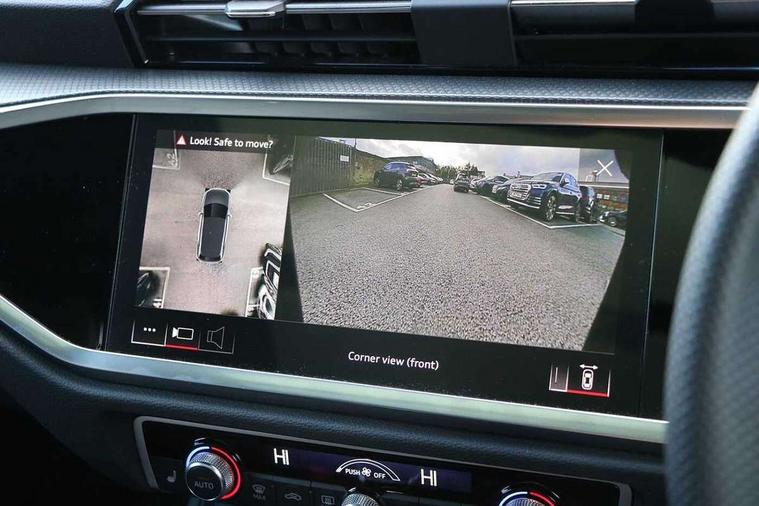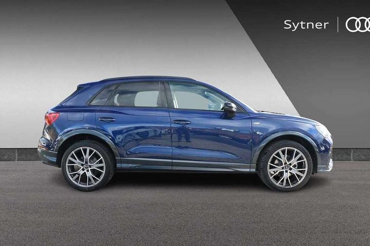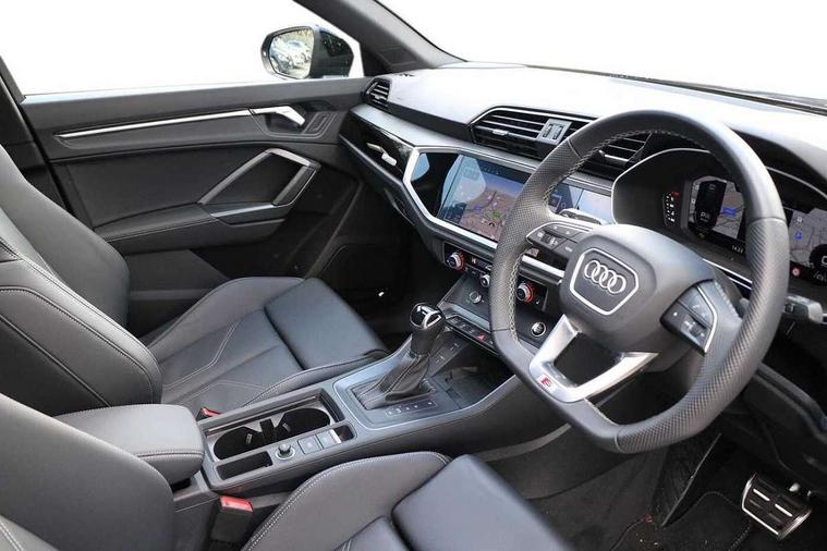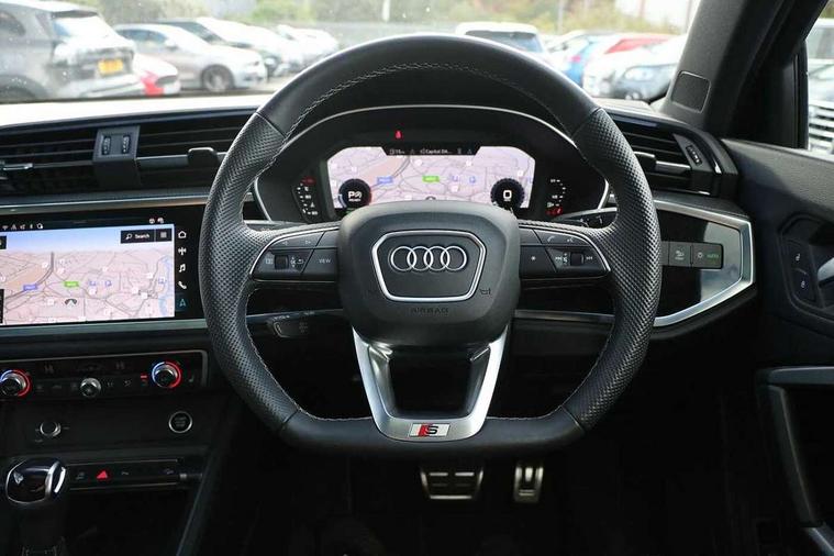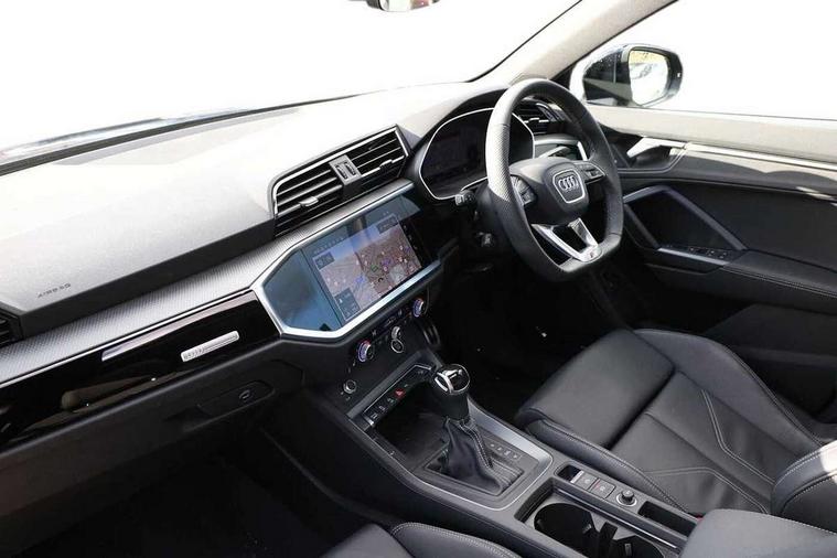 Amazon alexa Integration, Audi connect safety and service, Audi drive select, Audi lane departure warning, Audi Virtual Cockpit - 10.25" display, Bluetooth interface, Camera based traffic sign recognition, Distraction and Fatigue warning, Legal emergency call, MMI Navigation Plus with high resolution 10.1 inch touchscreen colour display, Power operated tailgate, Progressive steering, Service interval indicator, Smartphone interface includes wireless Apple carplay/Android Auto, Start stop system with recuperation, Voice control system with natural language interaction, Diesel particulate filter, Sports suspension, 2 USB-C ports with charge and data functions, 6 passive loudspeakers, DAB digital radio module, Acoustic windscreen, Audi Beam uses LEDs to project the Audi logo onto the ground as you exit your Q3, Auto dimming door mirrors, Auto dimming frameless rear view mirror, Black roof rails, Electrically folding, adjustable and heated door mirrors with integrated LED side indicators and kerb view function for passenger side, Front and rear electric windows, Front fog lights, Grille vertical bars in aluminium silver/Matt, High gloss black finish B and C pillars, LED Dynamic rear indicators, LED headlights with LED daytime running lights, LED rear lights, LED third brake light, Privacy glass dark tinted rear and rear-side windows (from B-pillar backwards), Rain and light sensors, Rear diffuser grille in grained matt black, Rear diffuser strip in matt anthracite black, Rear side wing doors, Rear wiper, S line bumpers in contrasting Manhattan grey, Variable front intermittent wipers, 12V socket in rear centre console, 3 seat bench in 2nd row, 40:20:40 folding with manual adjustment for 60:40 forwards/backwards position and backrest angle, Adjustable rear seat bench/backrest with centre armrest and cupholder, Black cloth headlining, Dual zone electronic climate control, Electric lumbar support, Front and rear black floor mats with contrast stitching in rock grey, Front and rear headrests, Front centre armrest, Height and reach adjustable steering wheel, Illuminated door sill trims with S logo, ISOFIX child seat mounting for front passenger with airbag deactivation and outer rear seat including top tether attachment point for outer rear seats, Manual front seats with height adjustment, Perforated leather gearknob, Single front passenger seat, Stainless steel luggage compartment sill finisher, Stainless steel pedals, Twin leather upholstery with front sport seats + S embossing, Black styling pack - Q3, Non smoking pack - Q3, 3x3 point rear seatbelts, 6 airbags - Driver, front passenger, curtain and side windows, Audi pre-sense front with pedestrain and cyclist recognition, Electrically operated child locks on rear doors, Electromechanical parking brake, Electronic stabilisation control including ABS, ASR and EDL, Front seatbelt reminder, Hill descent control, Hill hold assist, Pre sense basic, Seatbelt monitoring, Tyre pressure warning, Warning triangle and first aid kit, Anti theft wheel bolts, Immobiliser, Remote central locking, Thatcham approved category 1 anti theft alarm, Aluminium look interior elements, Detail dashboard around MMI touch colour display in glass look, black with surround in aluminium look, Leatherette door armrest, Piano black inlay,