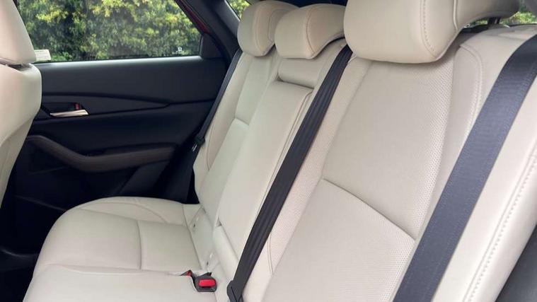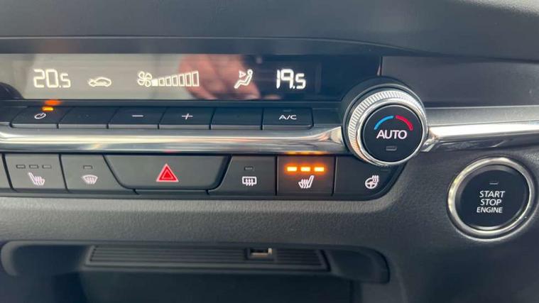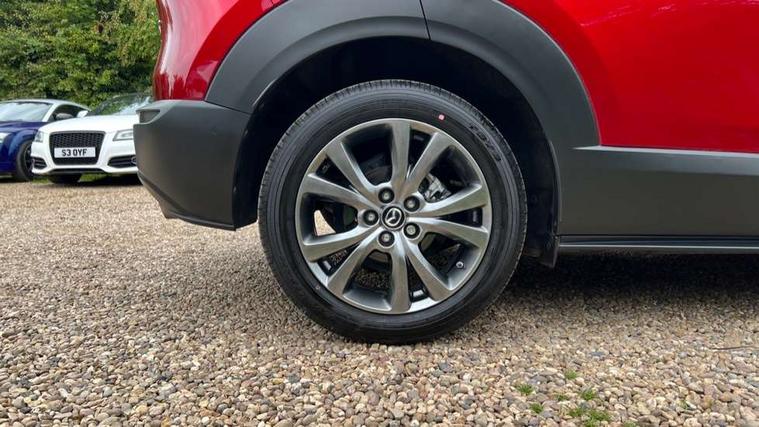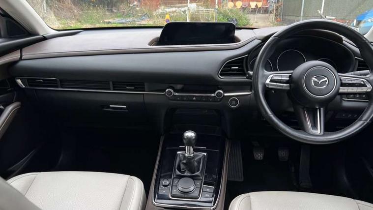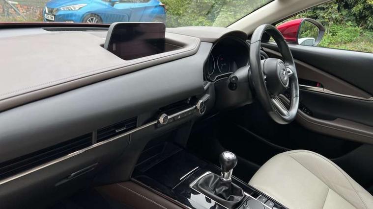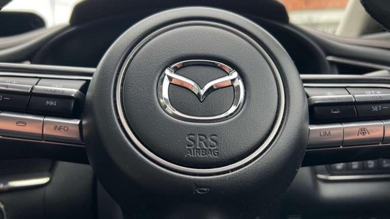 360 View Monitor, 7" TFT Colour driver instrument panel display, 8.8" Colour centre touch screen display with Mazda Connect infotainment, Adaptive cruise control (Mazda radar cruise control), Apple car play/Android Auto, Blind spot monitoring with rear cross traffic alert, Cruising Traffic Support, Driver attention alert system, Driver monitoring system, E-call with GPS, Emergency stop signalling system, Engine start/stop button, Front and rear parking sensors, Front Cross Traffic Alert, Integrated bluetooth, Integrated Mazda navigation system, Intelligent speed assist, Lane keep assist system (LAS) with Lane departure warning system (LDWS), PAS, Power lift gate, Service indicator, Trip computer, Window projected colour active driving display (head up display) with traffic sign recognition, i-stop, 2 USB charging ports, Bose surround sound system with 12 Speaker, Bose center point, Bass match and audio pilot technology, DAB Digital radio, Multimedia Commander including separate volume dial, Steering wheel mounted audio/bluetooth controls, Adaptive LED Headlights, Auto dimming driver's door mirror, B-pillar and C-pillar garnishes in piano black finish, Body coloured, electrically adjustable, heated auto power folding door mirrors with integrated indicators, Coming/leaving home lighting function, Door mirrors with tilt-down function when reversing, Dual chrome exhaust, Dusk sensing headlights, Electric front/rear windows with one touch auto up/down, Frameless auto dimming interior rear view mirror, Front grille in piano black finish, Front kodo turn signal, High beam assist, Piano black rear roof spoiler, Power tilt/slide sunroof, Privacy glass (rear side windows and rear screen), Rain sensing front wipers with adjustable speed and intermittent wipe, Rear fog lights, Rear wiper, Signature front LED daytime running lights, Signature LED rear combination lights with LED rear turn lights, 60/40 split fold down rear seats, Chrome centre bezel steering wheel, Chrome horn pad ring, Dashboard, door cards and front centre armrest in rich brown leather, Driver and front passenger visors with covered vanity mirror and driver ticket holder, Driver seat memory function, Driver's seat, power tilt, slide, recline, height and lumbar adjustment, Driver, Front passenger and two rear grab handles with coathooks, Dual zone climate control air conditioning with rear air vents, Electrical power outlet, Folding rear centre armrest with two cup holders, Front and rear (x3) head restraints, Front and rear door pockets, Front and rear LED lighting, Front armrest, Front centre storage with two cupholders, Front passengers seat manual slide, recline and height adjustment, Gear shift indicator, Glove box handle with chrome surround, Glovebox illumination, Heated front seats with 3 stage setting, Heated steering wheel, ISOFIX child seat anchorage points attached on outer rear seats, Leather wrapped gear shift knob, Leather wrapped steering wheel with telescopic and tilt adjustment, Luggage compartment light, Rear passenger seat map pockets, Roof mounted sunglasses holder, Vinyl leather door panel inserts, 3 point ELR front seat belts x2 with pretensioners, 3 point ELR rear seat belts, Anti-lock braking system (ABS), Driver/Front Passenger airbags, Drivers knee airbag, DSC - Dynamic Stability Control, Electronic parking brake with auto disengage function and auto hold function, Front and rear curtain airbags, Front and rear smart city brake support, Front passenger airbag cut-off switch, Front side airbags, G-Vectoring control plus, Hill launch assist, Mild Hybrid system with regenerative braking, Rear cross traffic braking, Seatbelt reminder for driver/front passenger and rear seats, Traction control system (TCS), Tyre pressure monitoring system (TPMS), Remote central locking with deadlocking and automatic door lock when driving, Smart keyless entry, Thatcham accredited alarm and immobiliser, 18" Bright silver metallic alloy wheels, Emergency tyre repair kit,