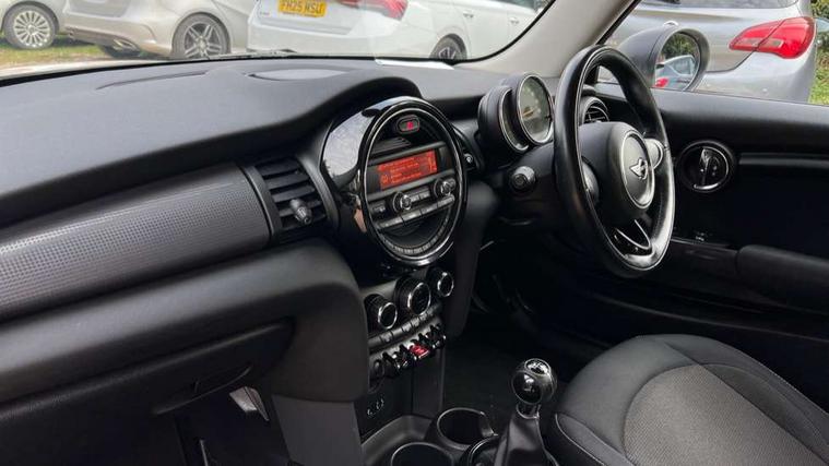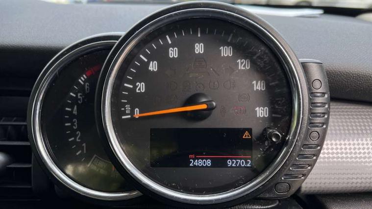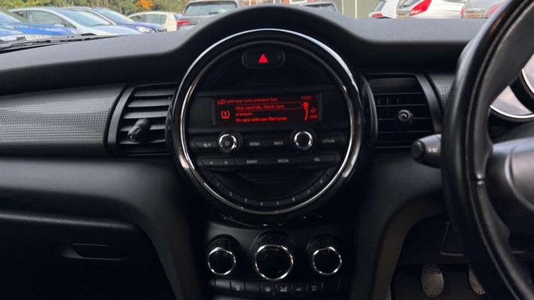 Acoustic seat-belt warning, Brake fluid level warning light, Brake pad wear indicator warning light, DTC - Dynamic traction control, Exterior temperature gauge, Intelligent emergency call, MINI TeleServices, Oil level indicator, On board computer, Push button starter, Service interval indicator, Servotronic PAS, Electronic differential lock, Auxiliary input socket, DAB digital radio module, 2 speed wipers+intermittent wipe, Anti dazzle mirror, Anti trapping/one touch open close front windows, Black tailgate handle, Body colour roof, Body coloured bumpers, Chrome bezels around rear lights and headlights, Chrome door handles, Chrome exhaust tailpipe, Chrome plated radiator grille, Chrome plated trim on bottom edge of window, Chrome strip on lower grille, Electric front windows, Electrically adjustable door mirrors, Flared wheel arches, Follow me home headlights, Green tinted heat insulating glass, Heated door mirrors/heated windscreen washers, Heated rear window with auto timer, Metal look door sill finishers, Rear wiper, Roof spoiler in roof colour, 2 rear head restraints, 3rd sun visor on driver side, 4 boot load lashing points, 4 way manually adjustable passenger seat with height, reach, tilt, backrest and headrest, 6-way manually adjustable driver's seat, Active carbon filter, Air recirculation system, Auxiliary socket in centre console storage compartment, Centre console storage, Driver's seat height adjuster, Driver/passenger sunvisors, Easy entry seats, Front and rear cupholders, Front head restraints, Front interior light, Front passenger grab handle, Gear/selector and handbrake in artificial leather, Internal chrome door handles, Isofix child seat preparation, Luggage compartment lighting, Reach + rake adjustable steering column, Rear grab handles, Rear storage trays, Split folding rear seats, Storage compartments in doors, Toolkit in luggage compartment, Vanity mirrors, 3 point seatbelts, ABS/EBD, ASC+T, Cornering brake control (CBC), Crash Sensor - activates hazard/interior lighting + unlocks doors, Driver and passenger airbags, Driver/front passenger side airbags, DSC - Dynamic Stability Control, Fuel cut off safety device, Head airbags, Hill start assist, Passenger airbag deactivation system, Seatbelt pretensioners, Tyre pressure warning, Ventilated front disc brakes, Drive away door locking, Locking wheel bolts, Remote central locking/doors+fuel cap+tailgate, Second remote key, Thatcham category 1 alarm + immobiliser,