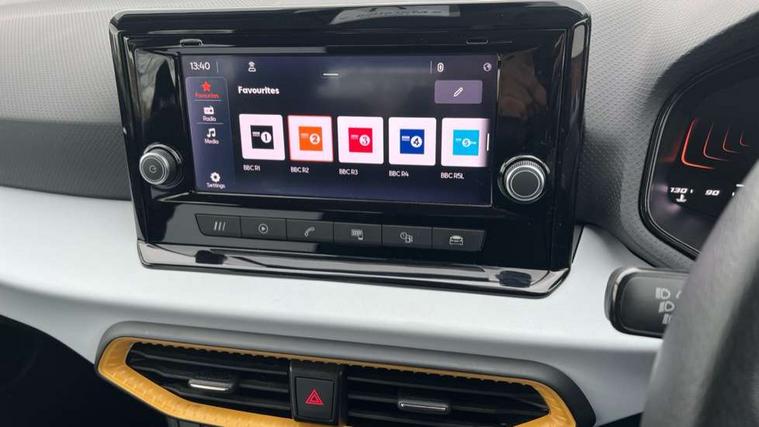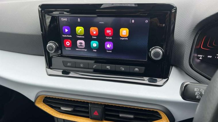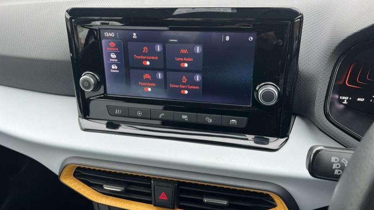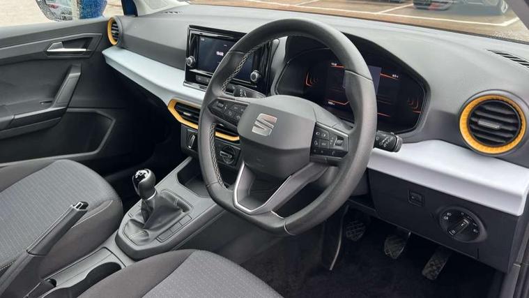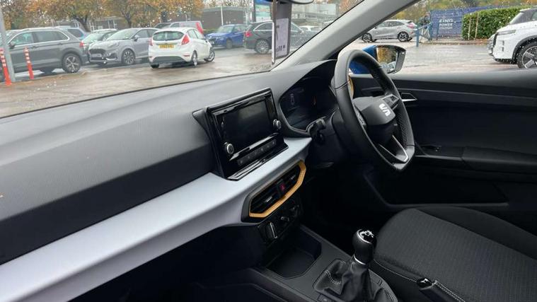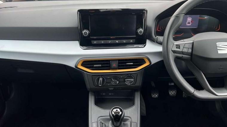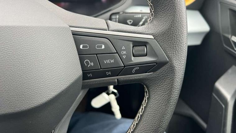 'Lights On' Reminder warning buzzer, 8" Digital cockpit, 8.25" touchscreen display with type C USB socket and DAB/AM/FM radio, Auto start and stop system, Bluetooth audio streaming with handsfree system, Cruise control, Digital clock, E-call, Full link smartphone integration with mirror link, wireless apple carplay, Google android auto + USB Type C cable for apple and android devices, Lane assist, Low fuel warning light, Outside temperature gauge, Power Steering, Seat connect with safety, service and remote, SEAT logo boot release, Speed limiter, Trip computer, Comfort suspension, Auxiliary input socket, Radio/MP3 player, Steering wheel mounted controls, Anti theft roof antenna, Body colour bumpers, Body colour door handles, Body colour door mirrors, Dimming interior rear view mirror, ECO LED automatic headlights and LED daytime running lights, Electric front windows, Electric headlight adjustment, Electrically adjustable door mirrors, Front/rear fog lights, Halogen tailights, Rain sensor, Rear side wing doors, Rear wiper, Third brake light, 3 seat bench in 2nd row, 60/40 split folding rear seat, Air conditioning with dust and pollen filter, Chrome interior detailing and grey headlining, Cloth upholstery, Comfort seats, Front courtesy lights, Front cupholders x 2, Front reading lights, Gear shift indicator, Glovebox, Height adjustable front and rear headrests (five), Height adjustable front seats, Height/reach adjust steering wheel, Illuminated boot, Instrument lighting with brightness control, Isofix, Leather multifunction flat bottomed sports steering wheel, Passenger sunvisor, Single front passenger seat, Sunvisors with mirror and driver side card holder, 3 point seatbelts on all 3 rear seats, ABS, Active front headrests, Child locks on rear doors, Electronic stability control, Energy recovery system, Front assist forward collision warning and autonomous emergency braking, Front driver and passenger side airbags with curtain airbag and front passenger airbag deactivation, Hill hold control, Multi-Collision braking, Seat belt reminder for front and rear seats, Tiredness recognition system, Tyre pressure monitoring system, Electronic engine immobiliser, Locking wheel bolts, Remote central locking + deadlocks, 15" Enjoy alloy wheels in Brilliant silver,