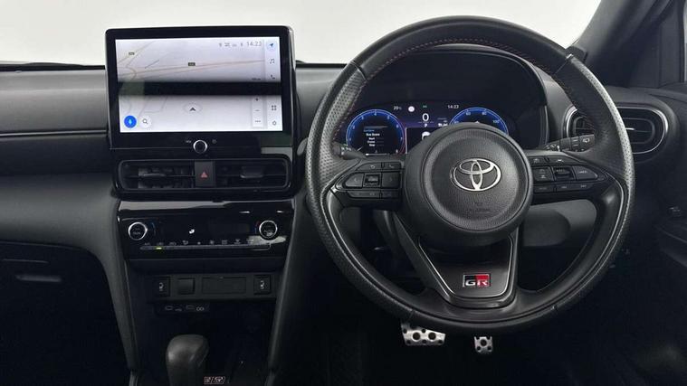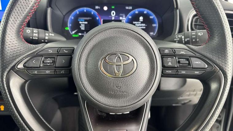 10.5" Multimedia display screen, 10.5" Toyota smart connect+ with navi multimedia system with wireless Smartphone integration incl Apple CarPlay, 12.3" Multi information display screen, Adaptive cruise control, multi info switches on steering wheel, Adjustable speed limiter, Bluetooth connectivity, Color multi-information display, Digital speedometer, Digital tachometer, Drive mode selector, Driver attention alert system, eCall emergency system, Electric power steering, Emergency driving stop system, Full range intelligent adaptive cruise control, Hybrid system indicator, Intersection turn assist, Key reminder warning, Lane trace assist, My T Connected services, Pre-collision system enhanced with emergency steering assist, Reversing camera, Road sign assist - RSA, Static guide lines on reversing camera, Telephone switch on steering wheel, Wireless Mobile Phone Charger, Steering assisted vehicle stability control, 6 speakers, DAB Digital radio, Front USB Type-C connector, Front USB-C device charger, 3rd brake light, Acoustic windscreen glass, Anti-jam protection on power windows, Auto dimming rear view mirror, Auto high beam [AHB] with on/off switch, Auto intermittent windscreen wipers, Automatic headlights, Automatic headlights cut-off, Black door moulding, Black lower front grille, Black protection moulding on side doors, Black rear bumper with diffuser, Black rear under run, Black roof rails, Black wheel arch mouldings, Body colour door handles, Body colour front bumper, Electric adjustable heated door mirrors, Follow me home headlights, Front and rear electric windows with auto up/down function, Gloss black upper front grille, GR Sport meshed lower front grille, GR Sport meshed upper front grille, GR sport scuff plates, Headlight cut off reminder, Indicators integrated on door mirrors, Intermittent rear wiper, LED daytime running lights guide, LED front fog lights, LED front light guide, LED Indicators, LED projector headlights, LED rear lights with sequential indicators, Manual headlight levelling, Noise reduction layer on windscreen, Privacy glass, Rain sensor, Rear side wing doors, Rear spoiler, Rear window defogger, Shark fin antenna, 12v power outlet - front, 12V power point in boot, 2x Rear coat hooks, 3 seat bench in 2nd row, 3 Spoke GR Sport leather steering wheel, 40/60 split deckboard, 40:20:40 split folding rear bench seat, Adjustable rear headrests, Adjustable speed limiter switch on steering wheel, Black roof lining, Boot light, Driver and front passenger personal lights, Driver and front passenger Whiplash injury Lesseing seats, Driver and passenger seatback pockets, Dual zone automatic air conditioning, Fabric door trim, Front console box, Front cup holders, Front door pockets, Front head restraints, Front sport seats, Front/rear assist grips, Gear shift indicator, GR sport floor mats, Heated driver and passenger seats, Height adjustable driver's seat, Height adjustable front passenger seat, Hooks for luggage holding belts, ISOFIX child restraint system, Lane departure alert switch on steering control, Leather gearshift, LED centre room light, Light on driver and passenger sun visor, Manual telescopic and tilting steering wheel, Mirror on driver and passenger sun visor, Nanoe-X air purifier, Pollen air filter, Power adjustable lumbar support on driver seat, Rear cup holders, Rear door pockets, Rear head restraints, Remote air-conditioning system, Single compartment glovebox, Single front passenger seat, Soft tonneau cover, Storage box under boot floor, Ultra suede cloth upholstery, Voice recognition switch on steering wheel, White ambient lighting in centre console, White ambient lighting in footwell, White ambient lighting on front doors, 3x3 point rear seat belts, ABS+EBD+Brake assist, Driver and passenger central airbags, Driver and passenger front airbags, Driver and passenger side airbags, Electronic parking brake, Emergency brake light system (EBS), Front seat belt reminder, Hill start assist control (HAC), Passenger airbag on/off switch, Pre-collision system with pedestrian and cyclist detection, Rear door child safety locks, Rear passenger side airbags, Rear seat belt reminder, Traction control, Tyre pressure warning system, Immobiliser, Intrusion alarm, Keyless smart entry with push button start, Power door locks, Power passenger window lock, Remote door lock, Tyre repair kit,