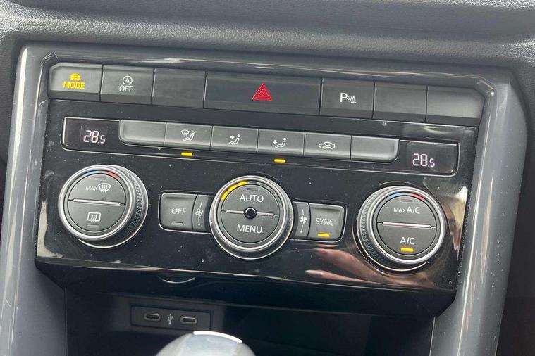 3 rear three point seatbelts, ABS, Curtain airbags, Driver and front passenger safety-optimised head restraints, Drivers and front passengers airbags with passengers deactivation switch, Drivers seatbelt reminder, Electronic parking brake with auto hold, Electronic stability control (ESC) includes ASR, EDL, EDTC and trailer stabilisation function, Front seat side impact airbags, Predictive pedestrian protection, Rigid safety cell with front and rear crumple zones, Three point height adjust front seatbelts + pretensioners, Tyre pressure loss indicator, Ventilated front and rear disc brakes, Volkswagen roadside assistance, Alarm with remote central locking and interior protection, Electronic engine immobiliser, Remote central locking with 2 remote folding keys, Battery regeneration during braking, Centre arm rest including USB type C interface and USB charging socket, DAB Digital radio, Diversity antenna for FM reception, Front USB type C Interface 2X and USB charging socket, Music playback - MP3, WMA and AAC files, Premium USB cable in choice of either Apple or Android smartphone compatibility, SD card slot, Simultaneous pairing of 2 compatible mobile devices, SMS functionality - read, compose and send SMS messages using touch-screen display, Storage compartment with longitudinal and height adjustable in armrest and two rear air vents, Three route options - Fast, Short, Eco, Title and cover art display, Auto dimming interior rear view mirror, Black grained lower door protectors, Black grained wheel arches, Body colour bumpers with silver metallic underbody fascia, Body colour door handles, Chrome effect left and right trapezoid exhaust tailpipe fascia surround, Chrome trim on upper and lower radiator grille, Electrically foldable, adjustable and heated door mirrors with puddle lights and reverse activated kerb-view adjustment on passenger's door mirror, Front and rear electric windows, Front fog lights with static cornering function, Front windscreen wiper with intermittent wipe and 4 position delay, Fully galvanised body, Heated rear window, High level 3rd brake light, LED darkened rear light clusters, LED rear number plate lights, Manual coming/automatic leaving home lighting function, Rain sensor, Rear tinted glass from B-pillar backwards approx 65% tinted, Rear wash/wipe with intermittent wipe setting, Volkswagen roundel, 2 Front and rear reading lights incorporating LED technology, 3 rear head restraints, 4 load lashing points in luggage compartment, Ambient lighting in front footwell and light strips below trim in front doors, Branded points of interest, Climate control - 2 zone electronic air conditioning with automatic air recirculation and allergy filter, Drawer under drivers seat, Front cupholders x 2, Front seat back storage pockets, Glovebox, Height adjustable front seats, Height/reach adjust steering wheel, Illuminated vanity mirrors, Instrument lighting, white adjustable panel illumination, Interior light delay, Isofix easy fit child seat preparation for 2 outer rear seats, Load through provision with single cup holder when folded down, Luggage compartment cover, removable, Luggage compartment lighting, Split folding rear seat backrests with centre armrest, Storage compartment in left and right luggage area, Storage compartment in rear doors, Storage compartments in driver and front passenger doors, 'Lights On' Reminder warning buzzer, Adaptive cruise control with front assist, radar sensor controlled distance monitoring, city emergency braking, Automatic start/stop system, Bluetooth telephone and audio connection for compatible devices, Car information display, Digital Cockpit Pro - Active info display, Discover navigation including 8" touch screen display, streaming and internet, Driver alert system with audible and visual fatigue detection system, Driver tips and journey analysis, Dusk sensor, Lane assist with warning text instrument cluster, Modified key software - reduce switch off time for key status change to Long no motion, Multifunction computer with visual gear change recommendation for fuel consumption, Service interval indicator, Think blue trainer driver tips and journey analysis, Voice activation, Wireless app connect for apple carPlay,
