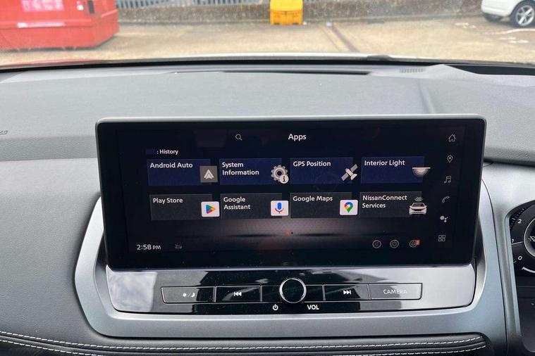 2 front USB-C ports, 2 rear USB-C ports, 360 degree Intelligent around view monitor with moving object detection, Advanced windscreen head up display, Blind spot warning, Drive assist, Drive assist custom mode, Drive modes (sport, normal, eco), Driver drowsiness and attention warning, Electric speed sensitive power steering, Emergency and breakdown call, Emergency lane keep assist, Emergency Stop Signal (ESS), Engine start/stop button, Event data recorder, Front and rear parking sensors, Full Digital 12.3" TFT Digital Combimeter, Google virtual personal assistance, Hands free power tailgate, Idle stop/start system, In-car WIFI hotspot, Intelligent Cruise control (ICC), Intelligent driver alert system, Intelligent forward collision warning, Intelligent lane intervention, Intelligent speed assist, Lane departure warning system, Nissan connect 12.3 inch touchscreen infotainment system, Nissan connect navigation with google maps, Nissan connect services 2.0 (Google Automotive System), Outside temperature sensor, Rear cross traffic alert, Remote control services - door locks, lights, horn and car locator, Reversing detection, Traffic sign recognition with legal speed adjustment, Trip computer, Wireless Apple CarPlay/Android Auto, Wireless charging pad, Limited slip differential, 6 speakers, AM/FM audio system with DAB, Bluetooth audio streaming, Auto dimming frameless rear view mirror, Auto rear wiper when reversing, Body colour mirror caps, Body coloured door handles, Bodyside mouldings, Chrome side window finisher, Electric auto folding door mirrors, Electrically adjustable and heated door mirrors with LED turn indicator, Follow me home headlights, High beam assist, Intelligent auto headlights, LED 3rd brake light, LED daytime running lights, LED headlights with adaptive driving beam, LED rear lights, LED sequential turn lights, One touch front and rear electric windows with remote opening and closing, One touch passenger window, Partially body coloured bumpers, Rain sensing wipers, Rear privacy glass, Rear roof spoiler, Rear side wing doors, Rear styling plate, Reverse tilting door mirrors, Shark fin antenna, Silver roof rails, Splash free rain sensing wipers, Super RED rear LED lights, Super UV and infrared cut glass, Thermaclear heated windscreen, 12v power socket in dashboard and luggage, 3 bench rear seats in 2nd row, 3 rear headrests, 60/40 split folding rear seat bench, Chrome interior door handles, Dark headlining, Driver and passenger sunvisors with illuminated vanity mirrors, Driver seat back pocket, Dual zone automatic climate control with pollen filter, Electrically adjustable driver seat, Electrically adjustable lumbar support for driver, Fixed Glass roof with electric sunshade, Front centre console and armrest, Front cupholders, Front door with bottle holders, Heated front seats, Heated steering wheel, Height adjustable front headrests, Height adjustable passenger seat, Leather shift knob, Luggage board system, Luggage space lighting, Manual adjustable lumbar support for passenger, Multifunction steering wheel, Passenger seat back pocket, Quilted/PVC upholstery, Rear door bottle holders, Rear seat armrest with 2 cupholders, RGB ambient light (Full area coverage), Single front passenger seat, Smooth leather steering wheel, Tilt/telescopic adjustable steering wheel, Two rear isofix child seat anchorage points with top tether, 3x3 point rear seatbelt pretensioners + load limiters, ABS with EBD and brake assist, Autonomous emergency braking, Child locks on rear doors, Curtain and front side, far side airbags, Driver and passenger airbags, Driver, passenger and 2nd row rear seat belt reminder, Electric handbrake with auto hold function, Front seatbelt pretensioners + load limiters, Height adjustable front seatbelts, Hill start assist, Intelligent blind spot intervention, intelligent front emergency braking, Intelligent rear automatic braking, Tyre pressure monitoring system, Vehicle dynamic control, Engine immobiliser, Intelligent key with walk away lock and approach unlock functions, Remote central door locking with deadlocking, Thatcham alarm, 19" Diamond cut alloy wheels, Tyre puncture repair kit,