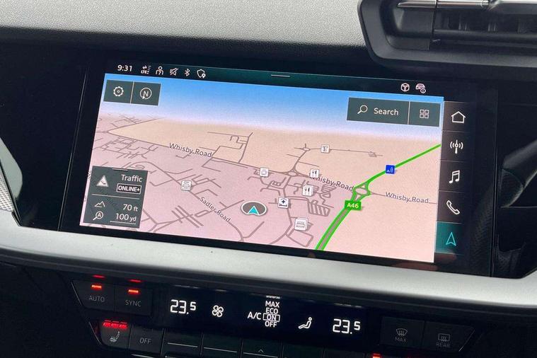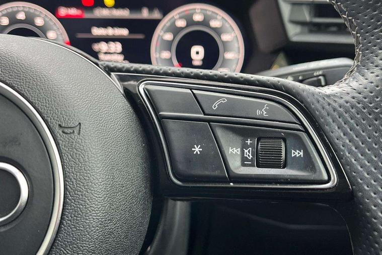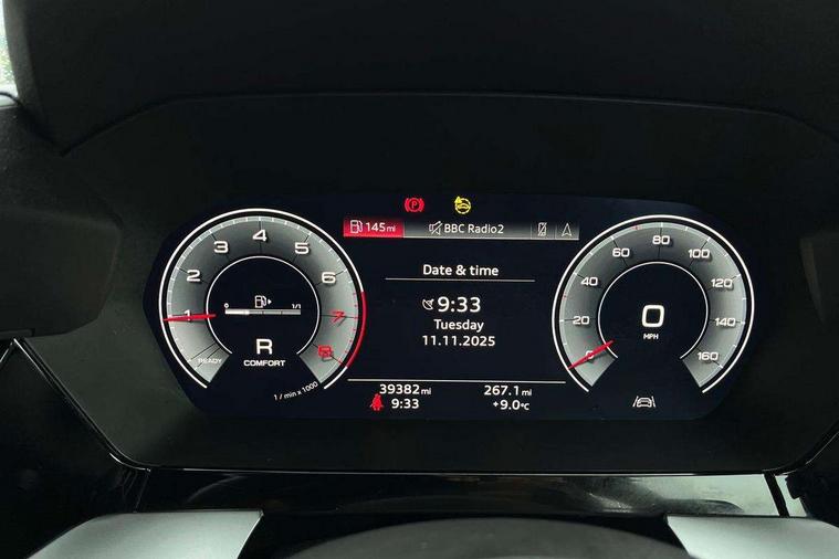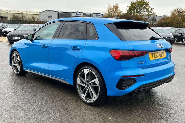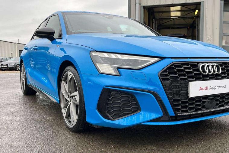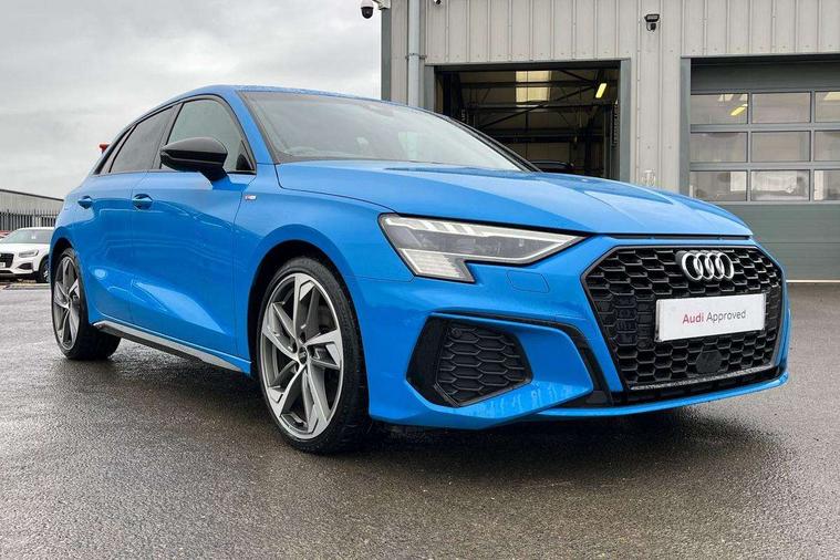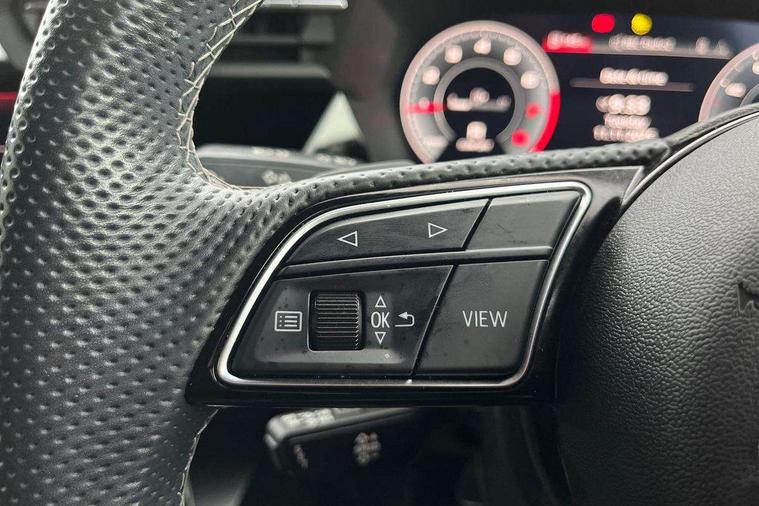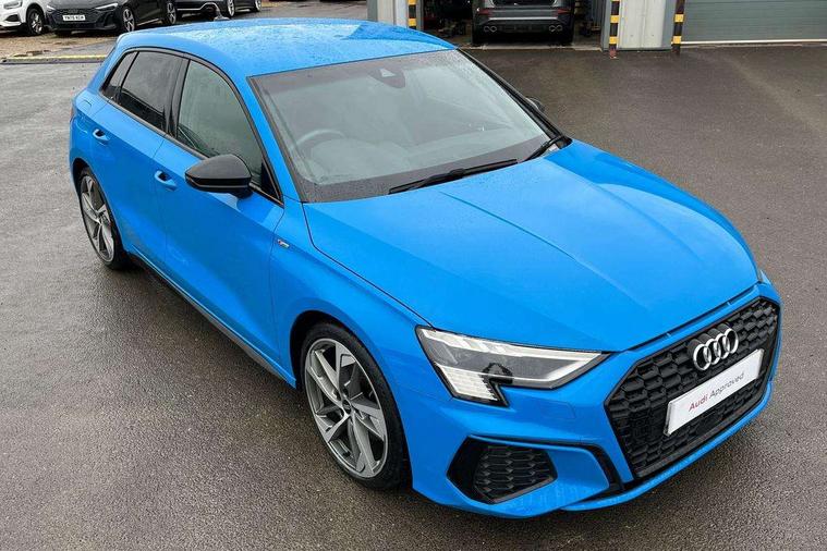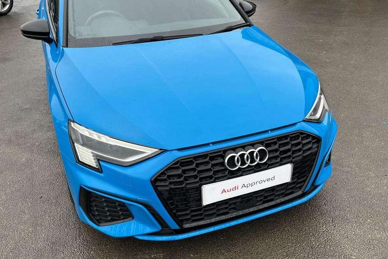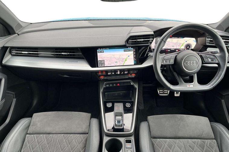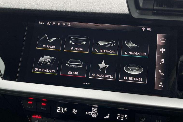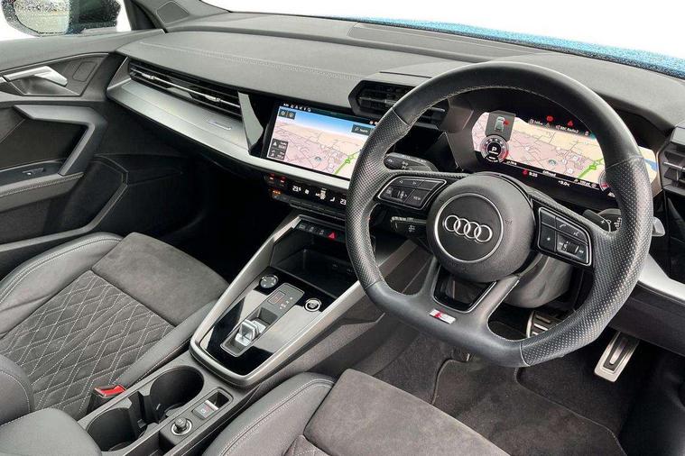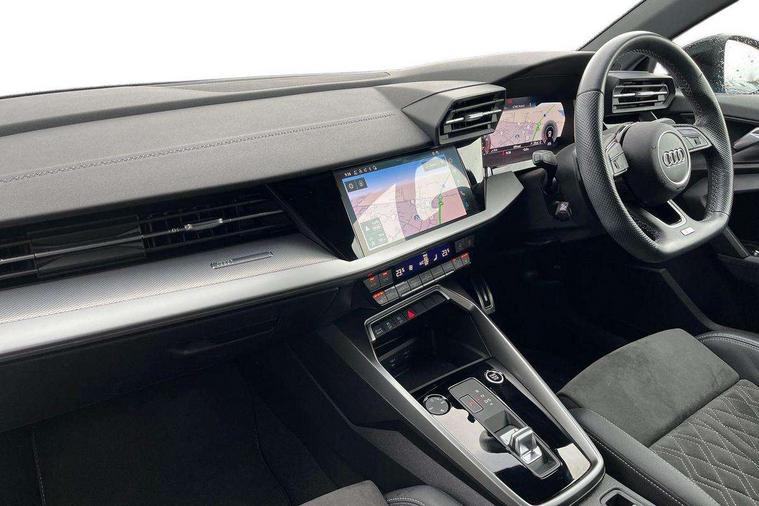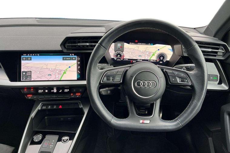 Audi connect emergency call and service, Audi drive select (Auto, Comfort, Dynamic, Efficiency and Individual), Audi smartphone interface, Audi virtual cockpit plus - 12.3" full HD resolution dynamic digital instrument cluster, Automatic start/stop system with recuperation, Bluetooth interface, Collision avoidance assistant, Electromechanical power speed sensitive steering, Lane departure warning system, MMI Navigation Plus with high resolution 10.1" colour touch screen display, Service indicator, Trip computer, Voice control system with natural language interaction, Sports suspension, 2xUSB-C connection with data and charging functions, 6 passive loudspeakers, DAB Digital radio, Acoustic glass windscreen, Auto dimming frameless rear view mirror, Body colour front spoiler blade, Electrically adj heated/folding + automatically dimming exterior mirrors + automatic kerb side function for passenger side exterior mirror, Front electric windows, Illuminated aluminium inserts front door sills with S logo, Integrated LED indicators in door mirrors, LED daytime running lights, Light and rain sensors, Privacy glass - dark tinted rear window, rear door and side windows, Rear diffuser in grained matt black, Rear electric windows, Rear side air outlets in grained matt black, Rear wiper, S roof spoiler, 12V socket and storage compartment in front centre console, 4 way electrically adjustable lumbar support for driver and front passenger, 40/20/40 split folding rear seat bench with cupholder, Alcantara/twin leather upholstery with front sports seats S embossed logo, Black cloth headlining, Dual zone electronic climate control, Electrically adjustable front seats for driver's side, Front and rear centre armrest in leather, Front and rear headrests, Front/rear floor mats, Heated front seats, Height and reach adjustable steering wheel, Interior lighting - glove compartment light and right hand side, Luggage compartment floor covering, Seat side bolsters, Stainless steel pedals and front footrest, Aluminium interior elements pack - A3 Sportback, Black styling pack - A3 Sportback, Extended ambient lighting pack - A3 Sportback, LED interior lighting pack - A3 Sportback Edition 1/Vorsprung, Matrix LED Exterior lighting Pack - A3, 3x3 point rear seat belts, Driver and front passenger airbag with passenger airbag deactivation, Electronic Stabilisation Control (ESC) including ABS, ASR and EDL, First aid kit with warning triangle and 2 safety vests, Front side airbags with head airbags and interaction airbag, Hill hold assist, Pre-sense front with pedestrian and cyclist detection, Seatbelt monitoring, Tyre pressure loss indicator, Anti theft alarm, Anti-theft wheel bolts, Electronically operated child lock, Immobiliser, Remote control central locking, Accent surfaces in the dashboard and centre console in platinum grey silk effect paint finish, Dark spectrum aluminium inlays, 19" 5 arm trapezoid design alloy wheels in titanium matt grey with diamond cut finish,