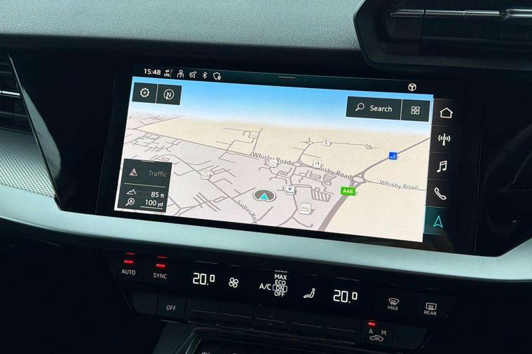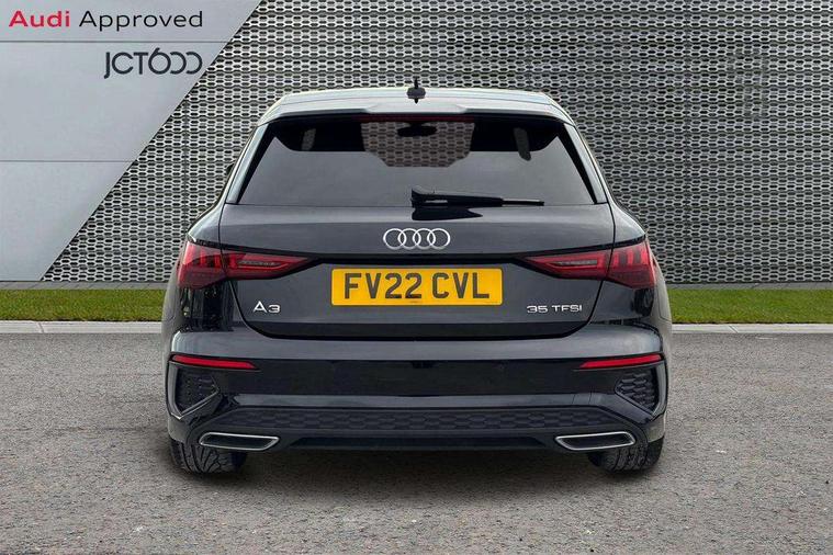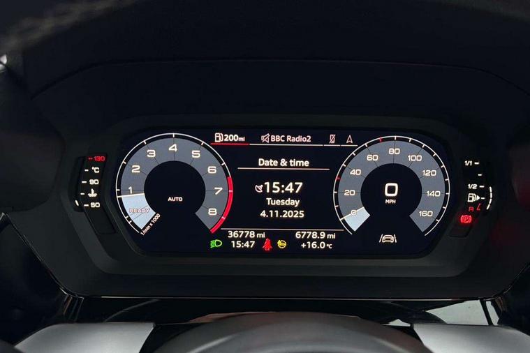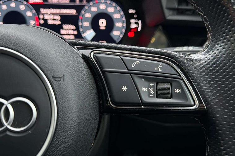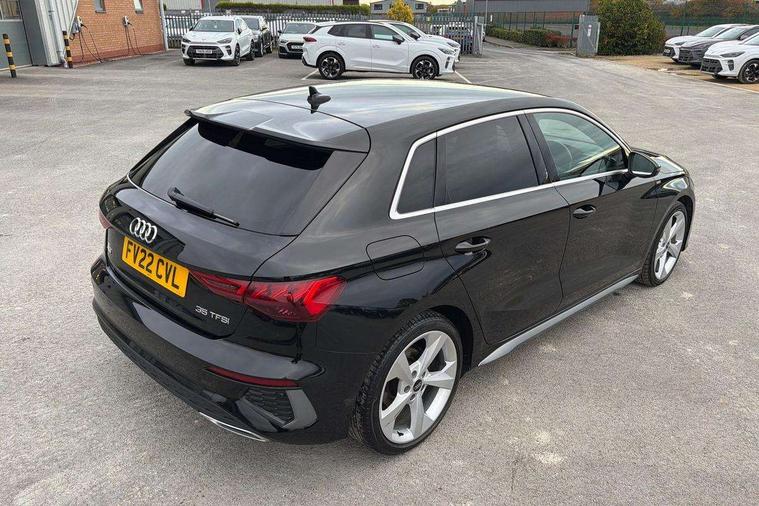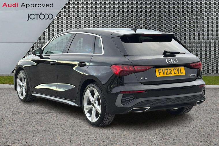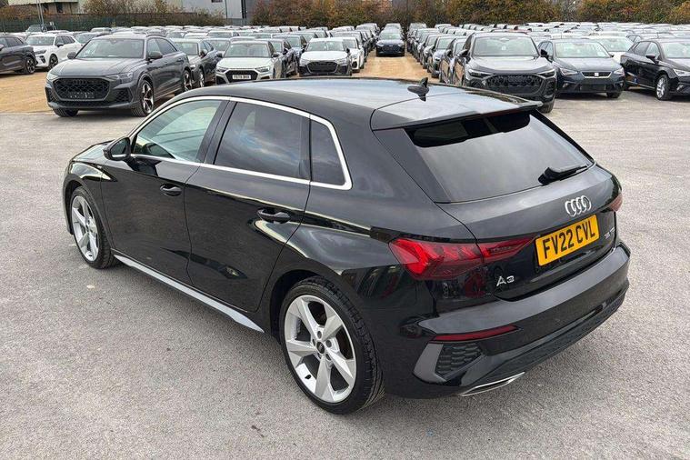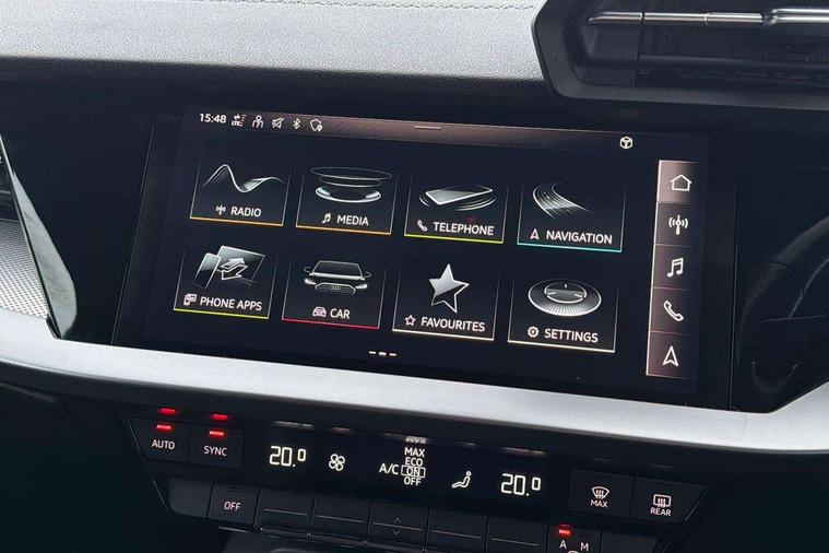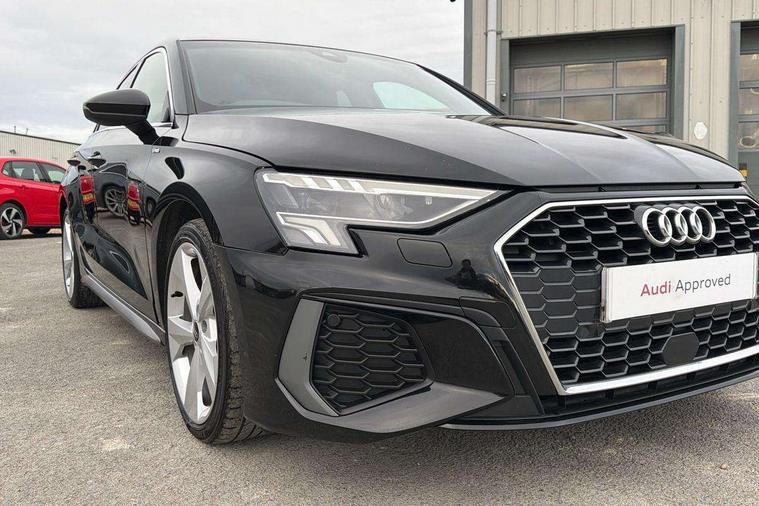 Audi connect emergency call and service, Audi drive select (Auto, Comfort, Dynamic, Efficiency and Individual), Audi smartphone interface, Audi Virtual Cockpit - 10.25" digital and colour instrument cluster, Automatic start/stop system with recuperation, Bluetooth interface, Collision avoidance assistant, Electromechanical power speed sensitive steering, Lane departure warning system, MMI Navigation Plus with high resolution 10.1" colour touch screen display, Service indicator, Trip computer, Voice control system with natural language interaction, 2xUSB-C connection with data and charging functions, 6 passive loudspeakers, DAB Digital radio, 3rd brake light, Acoustic glass windscreen, Aluminium window trim, Auto dimming frameless rear view mirror, Electrically adjustable/heated/folding/auto dimming door mirrors with integrated LED indications + kerb view function for passenger side, Front electric windows, Illuminated aluminium inserts front door sills with S logo, LED daytime running lights, LED headlights with LED rear lights and dynamic rear indicators, Light and rain sensors, Privacy glass - dark tinted rear window, rear door and side windows, Rear electric windows, Rear side air outlets in grained matt black, Rear side wing doors, Rear wiper, S line bumpers, S roof spoiler, 12V socket and storage compartment in front centre console, 3 seat bench in 2nd row, 40/20/40 split folding rear seat bench with cupholder, Black cloth headlining, Dual zone electronic climate control, Front and rear centre armrest in leather, Front and rear headrests, Front/rear floor mats, Height and reach adjustable steering wheel, Illuminated vanity mirror, Interior lighting - glove compartment light and right hand side, Luggage compartment floor covering, Manual boot compartment lid, Manually adjustable front seats, Seat side bolsters, Single front passenger seat, Stainless steel pedals and front footrest in black, Twin leather upholstery with front sports seats S embossed logo, Aluminium interior elements pack - A3 Sportback, S line styling pack - A3 Sportback, 3x3 point rear seat belts, Driver and front passenger airbag with passenger airbag deactivation, Electronic Stabilisation Control (ESC) including ABS, ASR and EDL, First aid kit with warning triangle and 2 safety vests, Front side airbags with head airbags and interaction airbag, Pre-sense front with pedestrian and cyclist detection, Seatbelt monitoring, Tyre pressure loss indicator, Anti theft alarm, Anti-theft wheel bolts, Immobiliser, Manual child locks, Remote control central locking, Accent surfaces in the dashboard and centre console in platinum grey silk effect paint finish, Dark spectrum aluminium inlays,