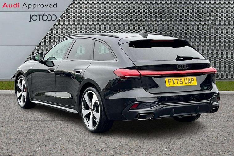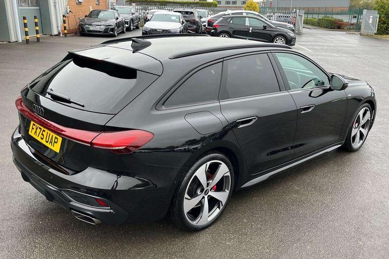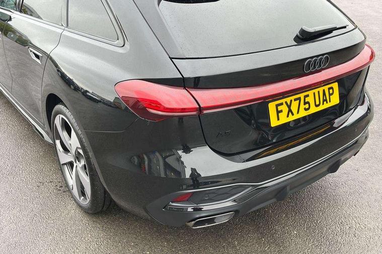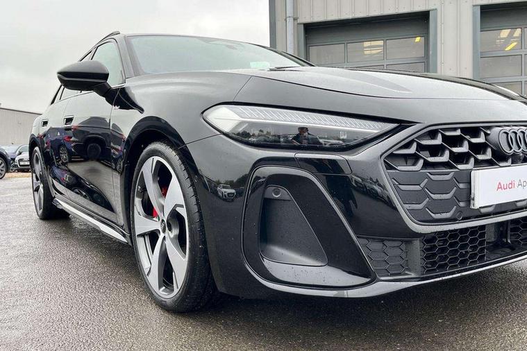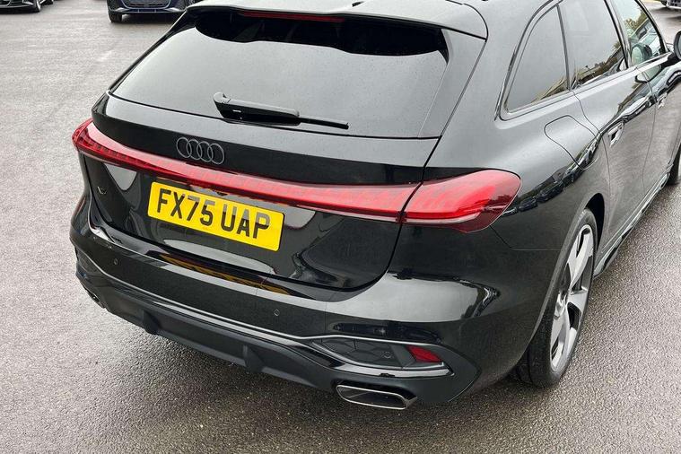 Adaptive cruise control, Advanced driver attention and fatigue montior, Audi application store, Audi assistant, Audi connect emergency call and service, Audi drive select, Audi virtual cockpit plus with 11.9" OLED colour display, Automatic start/stop system with coasting functionality, Camera based traffic sign recognition, Intersection assist, Lane change assistant with exit warning system, rear cross traffic alert and rear turn assist, Lane departure warning with emergency assist, MMI 10.9" front passenger touch display, MMI navigation plus with high resolution 14.5" OLED touchscreen colour display, Park assist plus, Parking system plus with 360 display, Progressive steering with servotronic, Smartphone interface, Swerve assist and turn assist, Top view camera, Traffic sign based speed limiter, Sports suspension lowered by 20mm, 2 USB-C ports in both the front and rear, Audi sound system impressive sound with 8 loudspeakers including centre speaker and subwoofer, 6-channel amplifier with a total output of 180 watts, DAB digital radio reception, Smartphone compartment with wireless charging, Aluminium window trims, Auto dimming rear view mirror, Black door handles, Black roof rails, Dark chrome-plated tailpipe trims, Door mirrors - electrically adjustable, heated, folding and auto dimming on both sides, Front and rear electric windows, Front door sill trims with aluminium inlays, illuminated with 'S' logo, Headlight cleaning system, High beam assist, LED daytime running lights, LED rear lights pro incl. dynamic rear indicators and illuminated light strip with animated coming and leaving home function, LED third brake light, Matrix LED headlights with eight light signatures selectable via the MMI or the myAudi app, Privacy glass, Rear and side windows with heat insulating glass, Rear side wing doors, Rear wash/wipe, S Line badges on the front wings, S line bumpers, radiator grille and diffuser in phantom black and diffuser insert in matt anthracite, White rhombus logo projection light in exterior mirrors, Windscreen with acoustic glazing, 3 rear headrests, 3 seat rear bench, 3 spoke leather steering wheel with multi-function buttons with touch control, flattened on top and bottom, with S badging and contrast stitching, 3-zone automatic climate control, 40:20:40 split folding rear seat bench with centre armrest and cup holders, Comfort front centre armrest, Electrically adjustable front seats, Front and rear floor mats, Front sport seats with integrated headrest and S embossed logo, Headlining in black cloth, Heated front seats, i-Size child seat mounting on the front passenger side and outer rear seats, i-Size and top tether on the outer rear seats, Luggage compartment lid, electrically opening and closing, Manual steering column height and depth adjustment, Memory function for driver seat, Single front passenger seat, Stainless steel pedals and footrest, Steering wheel grips in perforated leather and shift paddles, Ambient lighting package plus - A5, Black styling package plus - A5, 3x3 point rear seat belts, Acoustic vehicle alerting system, Convenience key with safelock, Driver airbag, Electric child safety locks, First aid kit with warning triangle and vests, Front emergency brake assist, Front passenger airbag, Front passenger airbag deactivation, Hill hold assist, Occupant detection in rear seat area, Proactive passenger protection system for front, sides and rear, Red brake calipers, Seat belt monitoring with rear seat occupant reminder, Side airbags in front and rear with head airbag system and front interaction airbag, Tyre pressure loss indicator, Anti theft alarm, Anti-theft wheel bolts, Keyless Go, Accent surfaces and control buttons in gloss black, Black dashboard with contrast stitching, Softwrap in Dinamica with contrast stitching, Upper and lower interior elements in dinamica microfiber, 20" 5 arm fold design Audi sport alloy wheels in silk matt grey and gloss turned finish, Tyre repair kit,
