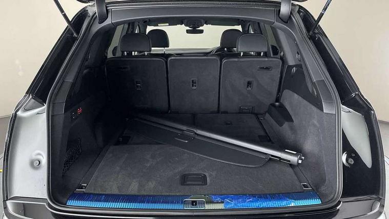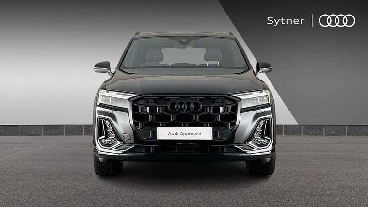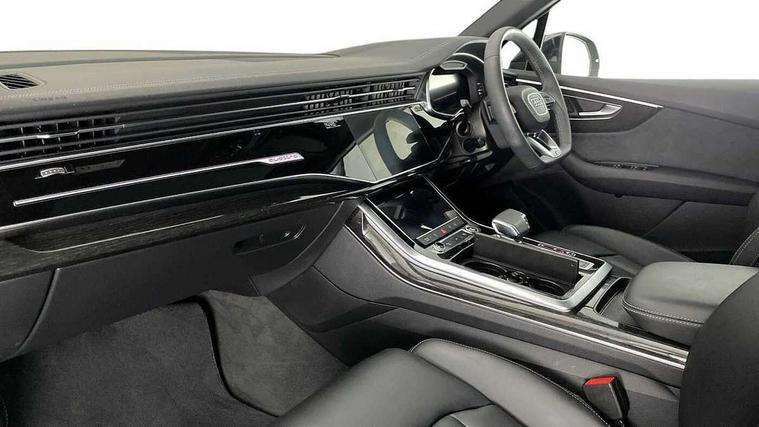 Audi connect safety and service (e-call), Audi connect with Amazon Alexa Integration, Audi drive select (Auto, Comfort, Dynamic, Efficiency, Individual, Off-road and All road), Audi phone box light with wireless charging, Audi virtual cockpit - 12.3" high-resolution LCD display with fully customisable instrument cluster, Bluetooth interface, Camera based traffic sign recognition, Electromechanical power steering, MMI navigation plus with MMI touch screens includes 10.1" and 8.6" screens with haptic feedback, Natural voice recognition, Operating buttons in Matte black, Parking system plus with 360 degree display (front, rear and side sensors) - acoustic and visual park assist system, Power operated tailgate, Rear view camera, Smartphone interface includes wireless Apple carplay/Android Auto, Start/stop system, 48V Mild hybrid technology, Adaptive air sports suspension, Quattro all wheel drive with self locking centre differential, Audi music interface - front 2 USB-C ports with charger and data functions, Audi sound system with 6 channel amplifier, 180 watt amplifying capacity and 10 loudspeakers including subwoofer, DAB digital radio module, Audi Beam uses LEDs to project S emblem with red rhombus onto the ground when opening the side doors (front/rear), Auto dimming frameless rear view mirror, Black exhausts, Black roof rails, Electrically adj heated/folding + automatically dimming exterior mirrors with memory + automatic kerb side function for passenger side exterior mirror, Heat insulating glass in windshield, Integrated LED indications in door mirrors, LED 3rd brake light, LED daytime running lights, LED rear tail lights, Loading edge protection in stainless steel, Matrix LED headlights with dynamic front and rear indicators, Privacy glass - dark tinted rear and rear side windows from B-pillar backwards, Rear side wing doors, Rear wiper, 2 seat bench in 3rd row, 2 zone automatic climate control, 3 seat bench in 2nd row, 7 seat layout with ISOFIX points for the front passenger seat and rear passenger seat, Black cloth headlining, Comfort front centre armrest, Electric adjustable front seat with 4 way lumbar support, driver memory functionality, Folding rear seats, Front head restraints, Front/rear floor mats, Heated front seats, Illuminated door sill trims with S logo, ISOFIX child seat mounting for front passenger seat and 2 outer rear seats with top tether child seat mounting for all 3 rear seats, LED interior ambient lighting, Luggage compartment cover, Luggage compartment sill protection in stainless steel, Rear head restraints, Single front passenger seat, Stainless steel pedals, Sunvisors with illuminated vanity mirrors, Black styling pack plus - Q7, 3 point seatbelts on all rear seats, Audi pre sense front, Child locks on rear doors, Convenience key with safelock and gesture tailgate, Driver and front passenger, front side and curtain airbags, Electromechanical parking brake, Electronic Stabilisation Control (ESC) including ABS, ASR and EDL, Extended pedestrian protection measures, Hill hold assist, Seatbelt reminder, Tyre pressure loss indicator, Warning triangle and first aid kit, Anti theft alarm with tow away protection, Anti-theft wheel bolts and wheel loosening detection, Keyless Go, Remote central locking, Polished oak trim with grey finish inlay, Tool kit, Tyre repair kit,