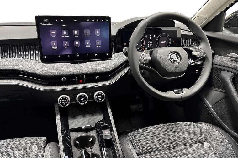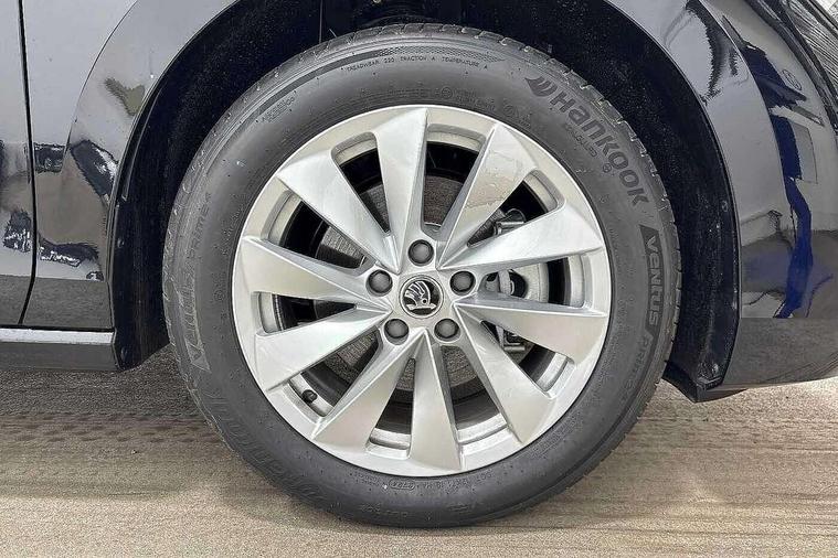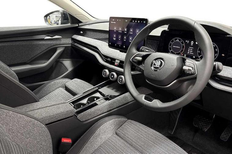 13" touchscreen display with satellite navigation, 4x USB-C ports (2x in front centre console and 2x in rear) (45W), Adaptive cruise control with speed assist, lane assist plus and traffic tram assist, Blind spot detection with door exit warning, Bluetooth system, CareConnect and Emergency Call, ChatGPT functionality, Driver fatigue sensor, Front assist with extended predictive pedestrian protection, Front cross traffic assist, PAS, Quick start all heating software functionality, Rear view camera with washer, Stop/start engine system, Traffic sign recognition, Turn assist with evasive assistance, Virtual Cockpit - 10.25" digital display, Voice control system, Wireless charging for one smartphone (15W) with cooling function, Wireless smartlink apple carplay, SmartLink+ android auto, 8 Speakers, DAB Digital radio, Display cleaner, FM radio connection, Web radio connection, Acoustic side windows and interior noise suppression, Backdrop lighting, Body colour door handles, Body coloured door mirrors, Chrome window surround, Electrically adjustable, heated, folding and driver side auto-dimming door mirrors with integrated indicators and logo projection, Frameless auto-dimming rear view mirror with USB-C, Front windscreen with heat-insulating glass, Ice scraper in fuel tank cap, LED 3rd brake light, Light assist with High beam control, Light assistant (coming/leaving home/tunnel light), Privacy glass, Rear fog light (x1), Rear side wing doors, Tow bar preparation, Unique dark chrome design logo on alloy wheels, Unique dark chrome grille surround with dark chrome rib elements, Windscreen wipers with rain sensor, 12V socket 1x centre console 1x boot, 12V socket and 2x cargo elements in boot, 2 spoke multifunction steering wheel with DSG paddles, 3 seat bench in 2nd row, 60:40 Split folding rear seats, Bottle holders in the front doors 1.5 litre bottle and rear 1.5 litre bottle, Cup holder in front with easy open mat, Front and rear footwell illumination, Front armrest with storage box, Front comfort seats, Heated front seats, Height adjustable driver and front passenger seats with 2-way electric tilt, 4-way pneumatic lumbar support, and extendable thigh support, Height adjustable front and rear head restraints, Height adjustable front passenger seat, Illuminated glovebox, Interior lights with control switches, Isofix child seat fittings in outer rear and front passenger seats, LED front and rear reading lights, Massage function for front seats, Single front passenger seat, Skoda lettering on steering wheel, Storage pockets on back of front seats, Sun visors with illuminated vanity mirrors, Ticket holder on A Pillar, Tri zone climate control, Umbrella in driver's door, 3 rear seatbelts, 8 Airbags - Front driver and passenger, front side driver and passenger, centre, curtain front and rear, drivers knee, Crew protect assist, Driver and passenger seatbelts with warning light, Electronic parking brake, ESC including ABS, EBV, MSR, ASR, EDS, HBA, DSR, RBS, CBC, multi-collision brake (MKB) and Auto hold, Hill hold assist, Power operated child lock in rear doors, Alarm with interior monitoring tilt sensor and back up horn, Backrest remote release from trunk, Electronic engine immobiliser, Keyless start/stop, Remote central locking with SAFE system, Third key, Decorative front door sills,