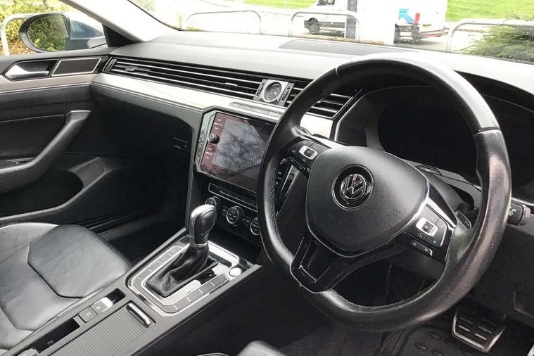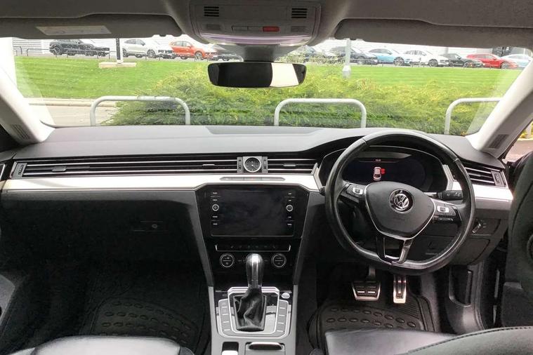 'Lights On' Reminder warning buzzer, Active information display, Adaptive Cruise Control with pedestrian detection and speed limiter, Analogue clock, App-Connect, Door/tailgate open warning lights, Driver alert system, Driver profile selection, Lane assist, Press and drive key, Progressive power assisted steering, Remote tailgate release, Rev counter with fuel gauge, Service interval indicator, Touch screen display, Traffic message channel (TMC), Warning buzzer and light for front seatbelts unfastened, CD/MP3/WMA, USB and SD card reader, aux-in, DAB Digital radio, MDI with USB/iPod connection cables, Volkswagen media control, Auto dimming driver's door mirror, Auto dimming rear view mirror, Automatic activation of hazard warning lights, Automatic coming/leaving home lighting function, Automatic headlights with dusk sensor, Body colour bumpers, Body colour door handles, Chrome headlight surround, Chrome louvres in grille, Chrome side window surrounds, Dynamic light assist, Electric adjustable/heated/folding door mirrors, Front and rear electric windows, Front fog lights, Headlight range control, Headlight washers, Heated rear window, Heated windscreen washer jets, High beam assist, LED daytime running lights, LED headlights with dynamic curve lighting, LED rear lights, Matt chrome door mirrors, Rain sensor, Reverse activated kerb-view adjustment on passenger's door mirror, Side skirts with chrome inserts, Stainless steel door sill protection, Tinted rear windows, Trailer stability assist, Windscreen wipers/ intermittent wipe + 4 position delay, 12V Accessory socket in centre console, 12v socket in front centre armrest storage compartment, 2 bag hooks in luggage compartment, 3 rear head restraints, 3 spoke multi-function leather steering wheel, 3 Zone electronic climate control with automatic air recirculation, 60/40 split folding rear seat, Aluminium finish interior door handles, Ambient lighting, Cover for storage compartment in centre, Front + rear carpet mats, Front and rear interior lighting with delay and dimming function, Front centre armrest with storage box and rear air vents, Front cupholders x 2, Front footwell lights, Front seat and rear pockets, Gearshift paddles, Heated front seats, Height adjustable head restraints, Height/reach adjust steering wheel, Isofix system on outer rear seats, LED reading lights, Load through provision, Lockable, illuminated, cooled glovebox, Luggage compartment lighting, Mistral headliner, Nappa leather upholstery, Rear armrest with 2 cupholders, Removable luggage cover, Stainless steel foot rest, Stainless steel pedals, Storage box in luggage compartment, Storage compartment in driver's door, Storage compartment in passenger's door, Storage compartment in rear doors, Sunvisors with illuminated vanity mirrors, USB charging point, 3 rear 3 point seatbelts + pretensioners, ABS+EBD+Brake assist, Active bonnet, Driver/Front Passenger airbags, Driver/Front passenger WOKS head restraints, Drivers knee airbag, Electronic parking brake with auto hold, ESP with EDL + ASR, Front and rear curtain airbags, Front and rear seat side impact airbags, Front assist including city emergency braking, Front passenger airbag deactivation, Height adjustable front 3 point seatbelts + pretensioners, Hill start assist, Proactive passenger protection system, Two tone horn, Tyre pressure warning, Warning triangle, Alarm with interior protection, Anti-theft wheel bolts, Electronic engine immobiliser, Remote central locking with 2 remote folding keys, Piano black centre console, Full size alloy spare wheel,