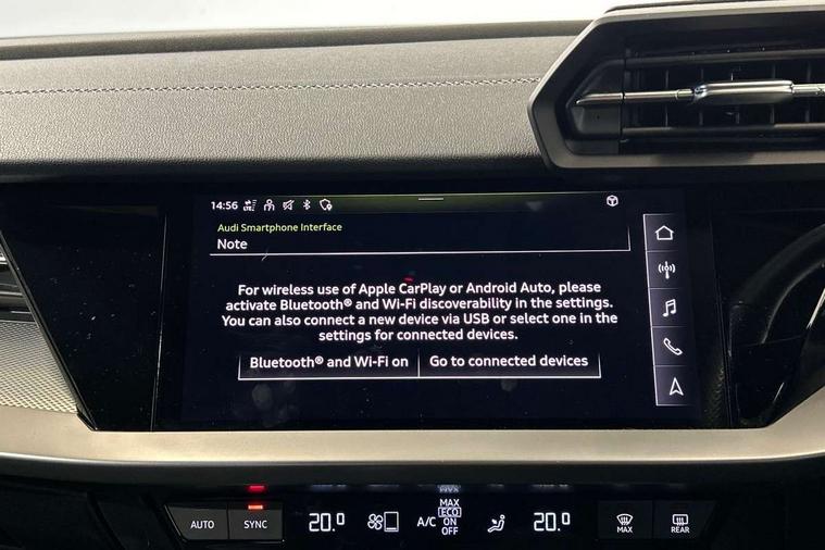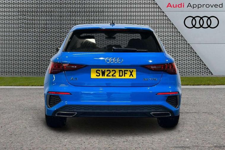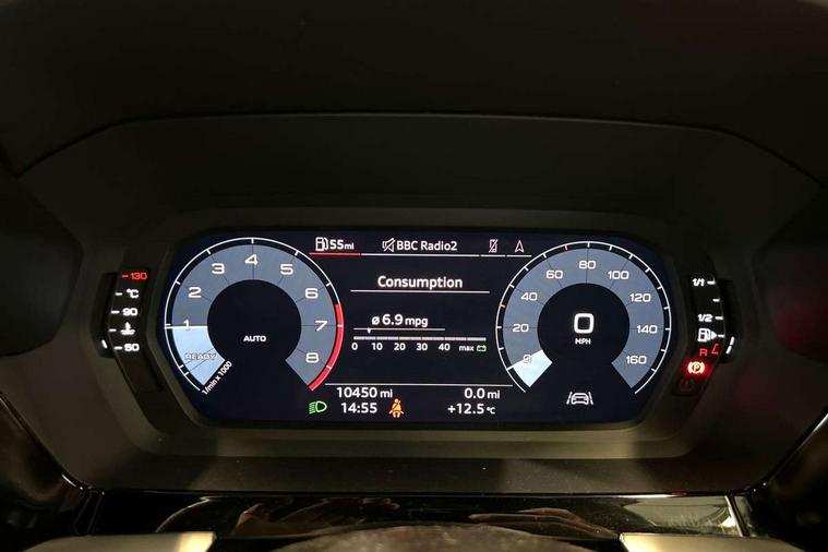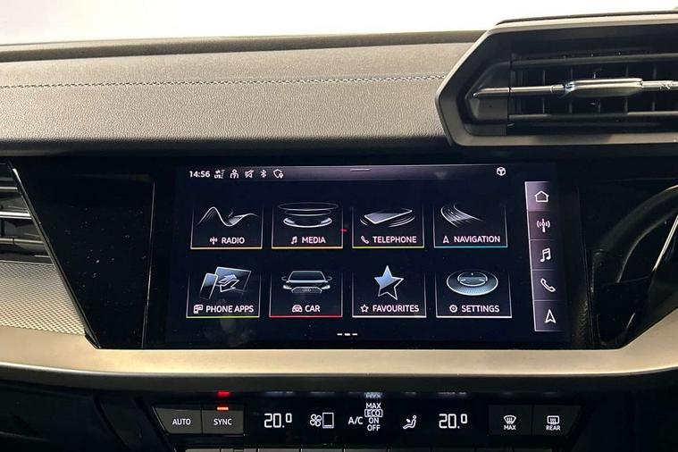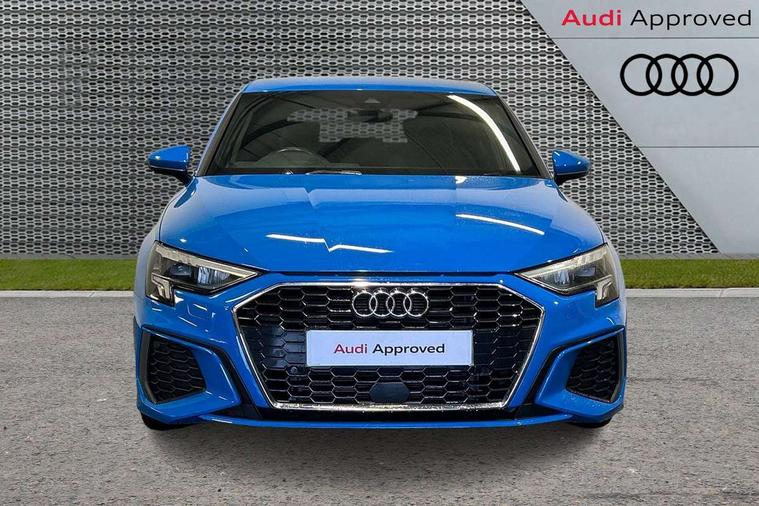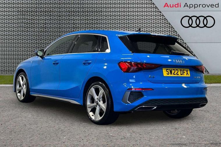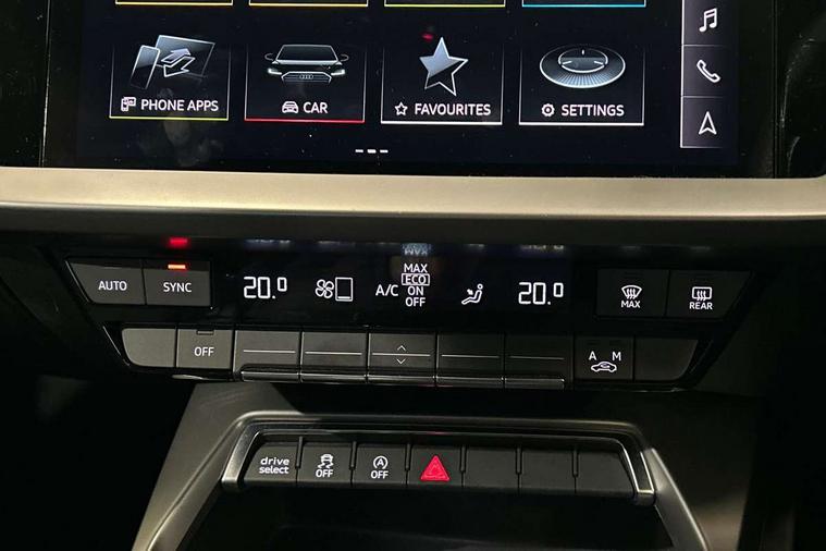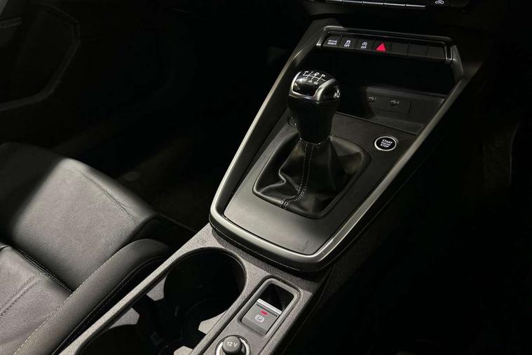 Audi drive select (Auto, Comfort, Dynamic, Efficiency and Individual), Audi smartphone interface, Audi Virtual Cockpit - 10.25" digital and colour instrument cluster, Automatic start/stop system with recuperation, Bluetooth interface, Collision avoidance assistant, Cruise control, e-Call (emergency call), Electromechanical power speed sensitive steering, Lane departure warning system, MMI Navigation Plus with high resolution 10.1" colour touch screen display, Rear parking sensors, Service indicator, Trip computer, Voice control system with natural language interaction, 2xUSB-C connection with data and charging functions, 6 passive loudspeakers, DAB Digital radio, 3rd brake light, Acoustic glass windscreen, Aluminium window trim, Auto dimming frameless rear view mirror, Electrically adjustable/heated/folding/auto dimming door mirrors with integrated LED indications + kerb view function for passenger side, Front electric windows, Illuminated aluminium inserts front door sills with S logo, LED daytime running lights, LED headlights with LED rear lights and dynamic rear indicators, Light and rain sensors, Privacy glass - dark tinted rear window, rear door and side windows, Rear electric windows, Rear side air outlets in grained matt black, Rear side wing doors, Rear wiper, S line bumpers, S roof spoiler, 12V socket and storage compartment in front centre console, 3 seat bench in 2nd row, 40/20/40 split folding rear seat bench with cupholder, Black cloth headlining, Dual zone electronic climate control, Front and rear centre armrest in leather, Front and rear headrests, Front/rear floor mats, Height and reach adjustable steering wheel, Illuminated vanity mirror, Interior lighting - glove compartment light and right hand side, Luggage compartment floor covering, Manual boot compartment lid, Manually adjustable front seats, Seat side bolsters, Single front passenger seat, Stainless steel pedals and front footrest in black, Twin leather upholstery with front sports seats S embossed logo, Aluminium interior elements pack - A3 Sportback, S line styling pack - A3 Sportback, 3x3 point rear seat belts, Audi pre sense front, Driver and front passenger airbag with passenger airbag deactivation, Electronic Stabilisation Control (ESC) including ABS, ASR and EDL, First aid kit with warning triangle and 2 safety vests, Front side airbags with head airbags and interaction airbag, Pre-sense front with pedestrian and cyclist detection, Seatbelt monitoring, Tyre pressure loss indicator, Anti theft alarm, Anti-theft wheel bolts, Immobiliser, Manual child locks, Remote control central locking, Accent surfaces in the dashboard and centre console in platinum grey silk effect paint finish, Dark spectrum aluminium inlays,