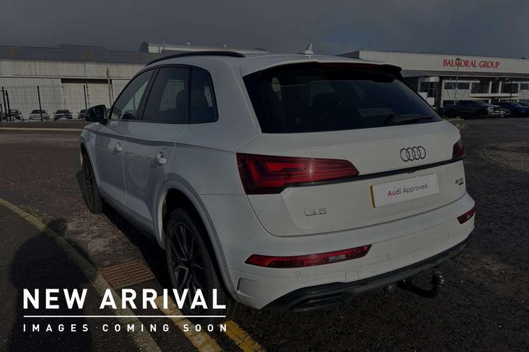 Audi connect safety and service (e-call), Audi connect with Amazon Alexa Integration, Audi drive select, Audi virtual cockpit plus with 12.3" screen and three different layout designs, Audi wireless smartphone interface, Automatic start-stop system with coasting functionality and efficiency programme, Bluetooth interface, Electro - mechanical power assisted steering, MMI navigation plus with 10.1" touch screen, Power tailgate, Reversing camera, Service interval indicator, Voice control system with Audi hotword activation "Hey Audi", Diesel particulate filter, Quattro on demand, S line sports suspension, 2 x USB charging port with aux input socket, DAB Digital radio, Acoustic windscreen, Audi matrix LED headlights with dynamic front and rear indicators, Audi rings at front and rear in black, Audi rings decal on rear doors, Auto dimming door mirrors, Auto dimming rear view mirror, Automatic headlight adjustment, Automatic headlights and windscreen wipers, Black roof rails, Body colour bumpers, Body colour underbody protection, Chrome plated exhaust trims, Daytime running lights, Door sills in Selenite silver, Electric adjustable/heated/folding door mirrors, Front air inlet surrounds in titanium black, Front and rear electric windows, Headlight washers, High gloss black B pillar trims and triangular rear door trim, High level LED brake light, Rear chrome trim strip below lights, Rear privacy glass and rear side windows, Rear side wing doors, Rear wiper, Roof bars, S Line rear spoiler, 3 rear headrests, 4 way electric lumbar support for driver and front passenger, 40:20:40 split folding 3 rear bench seat in 2nd row with rear centre armrest, Black cloth headlining, Comfort front centre armrest, Contrast stitching on seats, steering wheel and gear lever gaiter, Deluxe 3 zone electronic climate control, Electrically adjustable front seats, Fine Nappa leather upholstery with diamond pattern contrast stitching + front sport seats with S embossed logo, Front/rear floor mats, Gear lever in black leather, Heated front seats, Height adjustable front head restraints, Height/reach adjustable steering column, Illuminated door sill trims with S logo, ISOFIX child seat mounting and top tether, Luggage compartment cover, Rear seat bench plus, Removable luggage compartment floor, Single front passenger seat, Stainless steel pedals, Sunvisors with vanity mirrors, Black styling package - Q5 Edition 1, Extended interior upholstery pack - Q5, Extended LED Interior multi coloured Lighting Pack - Q5, 3 point seatbelts on all seats, 6 airbags - Driver, front passenger, curtain and side airbags, Electrically operated child locks on rear doors, Electromechanical parking brake, Electronic stabilisation control including ABS, ASR and EDL, Front and rear brake calipers painted in red, Front passenger airbag deactivation, Hill descent control, Hill hold assist, Multi collision brake assist, Pop-up bonnet for pedestrian protection, Pre sense city, Seat belt force limiter, Seatbelt monitoring, Tyre pressure warning, Warning triangle and first aid kit, Anti theft alarm, Anti-theft wheel bolts, Keyless Go access/ignition system, Remote central locking, Piano black finish inlay,