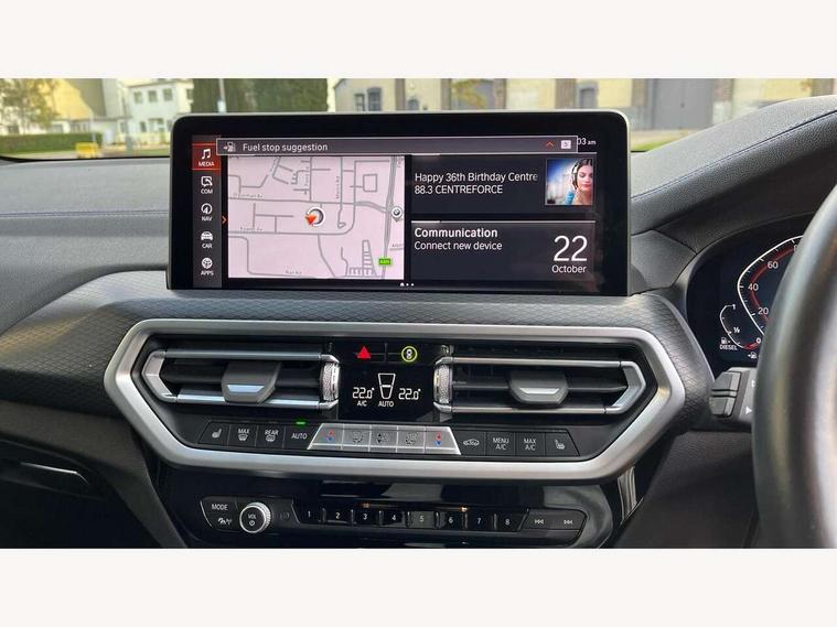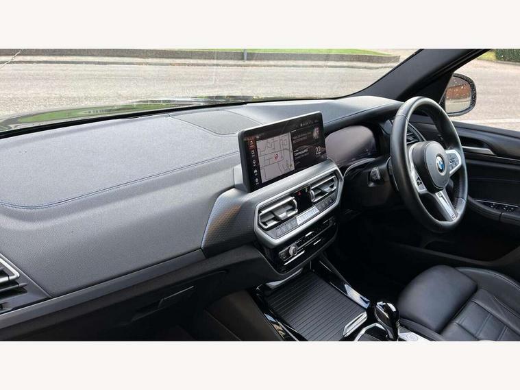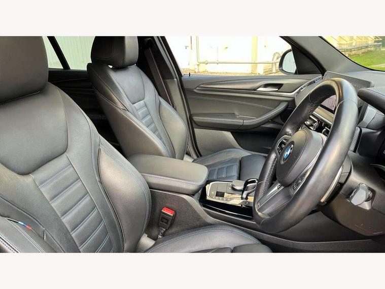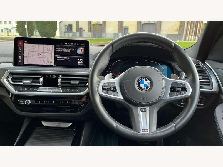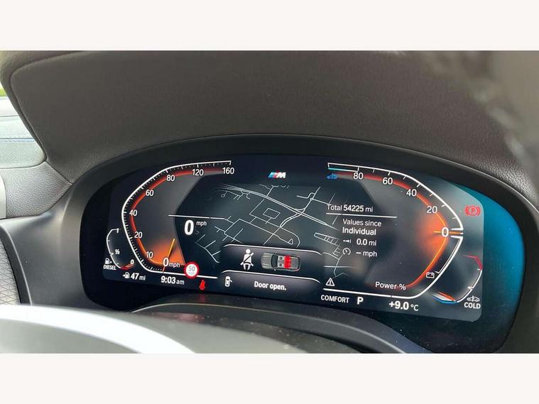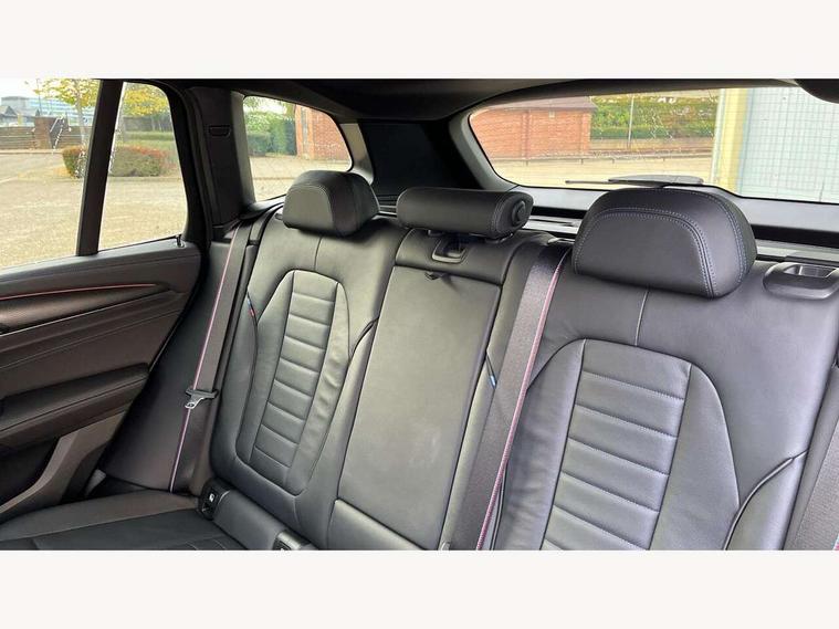 Active Guard, Attentiveness assist, BMW Live Cockpit Professional nav system including 12.3" instrument display + 12.3 high resolution control display, BMW Online services, BMW Teleservices, Brake pad wear indicator in front and rear, Check Control warning system for monitoring of lights and door/luggage compartment open warning, Condition based service - BMW service history, electronic service booklet, integrated owner's handbook, Connected drive services, Cruise control with brake function + speed limiter, Electric boot lid, Front/rear Parking distance control, iDrive Controller with 8 favourite buttons, Instrument cluster with speedometer with mph readout, tachometer, fuel gauge and oil temperature gauge, Lights on warning by audio warning signal when ignition is switched off, Oil sensor for level and grade, warning by check control system, On board computer - average speed+fuel consumption, service interval, clock/date, odometer/trip meter, outside temperature display and ice warning, Optimum shift indicator, Personal Profile - automatic lock when driving away selectable, Run flat indicator, Stop/start system, Variable sports power steering with drive performance control Sport+ mode, Automatic transmission with gearshift paddles, Diesel particulate filter, Incorrect fuelling protection, Larger capacity fuel tank, M sport suspension, Multi-link rear suspension, Performance Control, BMW professional radio/CD/MP3, DAB tuner, Acoustic glazing, Automatic windscreen wipers and automatic headlight, Black finish on B pillars, Body colour door handles, Body colour electric adjust heated aspherical door mirrors, Body colour roof mouldings, Body coloured bumpers, Direction indicator, side repeaters, integrated in exterior mirrors, Dynamic brake lights, Exhaust tailpipes - dual, round, split left and right with chrome finisher, Fingertip control / anti-trap function on electric window, Folding wing mirrors with auto dimming, Follow me home headlights, Front and rear bumper system with replaceable deformation elements, Front and rear electric windows, Gloss chrome tailpipes finishers, Green tinted heat insulating glass, Heated windscreen washer jets, High beam assistant, High gloss black shadow line roof rails, High gloss shadowline exterior trim in decorative moulding side frame/recess cover/guide rail/B, C pillars/mirror frame and triangle with mirror base, High level 3rd brake light incorporating LED Technology, Interior rear view electrochromatic mirror with automatic anti dazzle function, LED tail lights, Lightweight engineering, M aerodynamic bodystyling, M Sport entry door sill strips, Model designation, Rear side wing doors, Rear wing door, Rear wiper, Shark fin antenna, Side exterior M designation badges, Visible VIN plate, Welcome lighting, Windscreen wipers with adjustable interval, 12V power socket in front centre console, 3 rear headrests, 3 seat bench in 2nd row, 3 zone automatic air conditioning, 4 lashing points to secure luggage, 40:20:40 split folding rear seat with loading system, Ambient lighting, Anthracite headlining, Automatic interior light when door is opened/ignition switched off or via remote key, Driver seat backrest width adjustment, Floor mats in velour, Foldable storage floor with compartment, Four grab handles integrated in roof lining, Front and rear bottle holders integrated into door trim storage compartments, Front and rear side armrests integrated into door trim, Front centre armrest with storage compartment, Front footwell lights, Front head restraints, Front passenger seat, Front sports seats, Front/rear courtesy lights with soft on/off dimming, Front/rear reading lights, Heated front seats, Isofix rear child seat preparation, Leather gear knob, Luggage area underfloor compartment, Luggage compartment lighting, M sport leather steering wheel, Multifunction steering wheel, Parcel shelf removeable and storable under boot floor, Reach and rake adjustable steering column, Rear centre armrest with 2 cupholders, Removable / retractable luggage cover, Slope adjustable rear seats, Storage compartment in rear centre console and front/rear door trims, Sun visors with vanity mirrors and ticket pocket, Toolkit located in luggage compartment, Two front cupholders with removable oddments tray/lid, Vernasca leather upholstery, Connected pro pack - X3, Driving assistant pack - X3, ADB - Automatic Differential Brake, Anti-lock braking system (ABS) with brake assist, Automatic Stability Control (ASC), Battery safety cut-off, BMW emergency call, Brake drying, Brake energy regeneration, Braking pre-tensioning, Child locks on rear doors, Cornering brake control (CBC), Crash Sensor - activation of central locking release, hazard warning light and interior lighting, Deactivation of fuel pump in the event of a crash, Driver and front passenger front and side airbags with passenger deactivation and ITS front and rear head airbags, DSC+, Dynamic brake control, Dynamic Traction Control - DTC, Electromechanical parking brake, Hill descent control, Hill start assist, Seatbelt security check for front seats, Side impact protection, Three point seatbelts to all seats with front and outer rear pyrotechnic belt tensioners and seat belt force limiters, Two tone horn, Tyre pressure sensor, Ventilated front and rear disc brakes, Warning triangle and first aid kit, Central locking switch for all doors, fuel filler cap and luggage compartment, Electronic engine immobiliser, Locking wheel nuts, Remote control including two integrated key - one button for open/close all lockable content, windows and separate button for open luggage compartment, Remote control Thatcham category 1 alarm, Start/stop button with Comfort Go keyless engine start and auto Start/stop deactivation button, Low rolling resistance tyres,