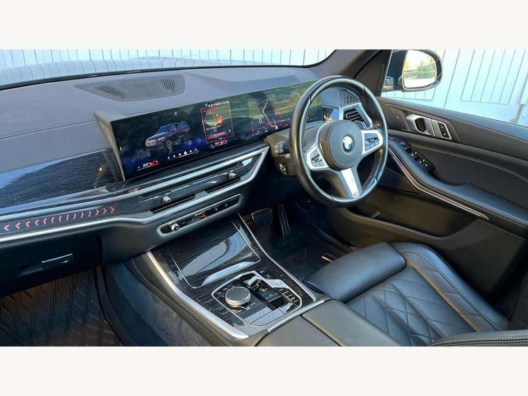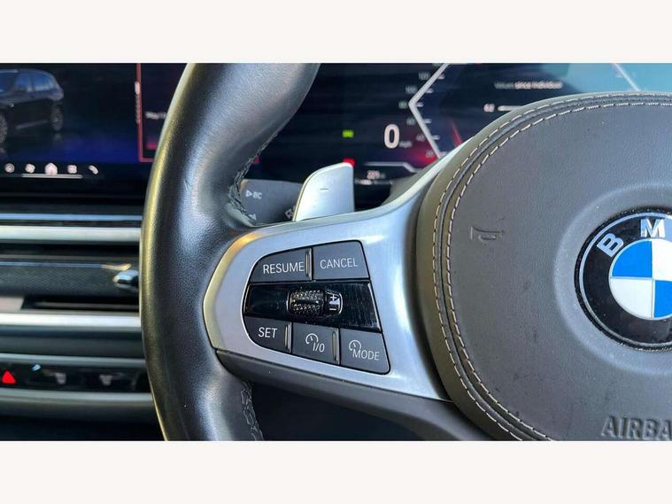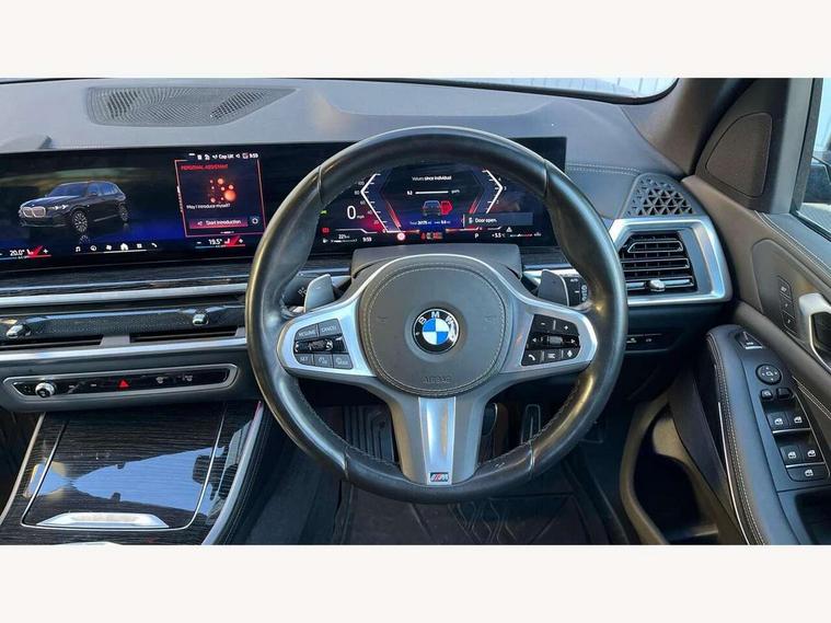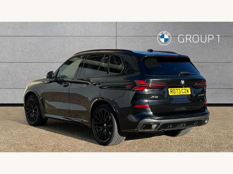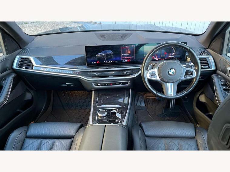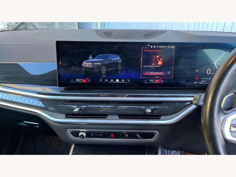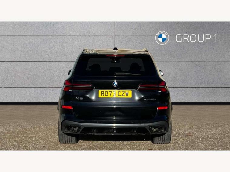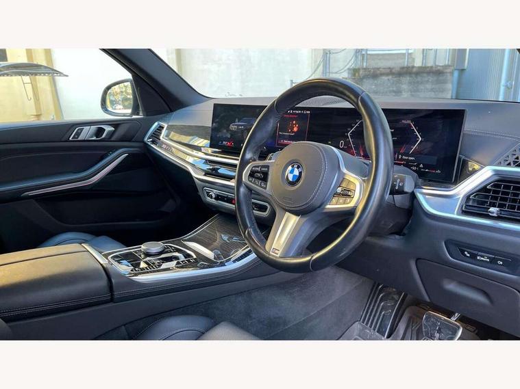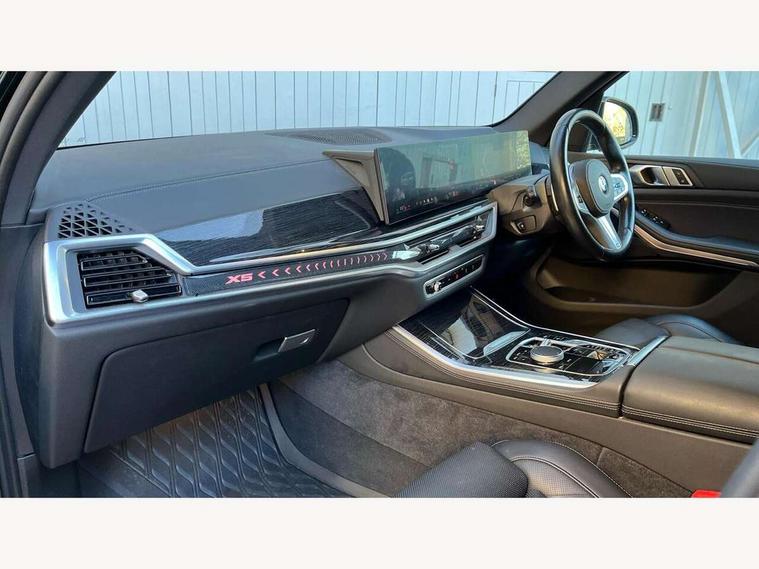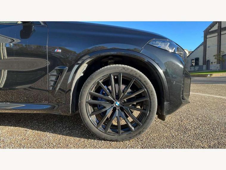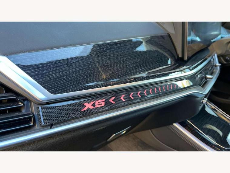 Attentiveness assist, Automatic tailgate operation, BMW ConnectedDrive online services, BMW live cockpit + with curved 12.3 instrument cluster/14.9 central display, nav/Tuner with diversity reception, RDS/4GLTE/remote software upgrade, BMW Recovery system, BMW Teleservices, Condition based service, Cruise control with brake assist, eCall emergency call system, Enhanced bluetooth with wireless charging, Integrated owner's handbook, PAS, Speed limiter, Wi-Fi hotspot, Drive performance control with ECO PRO comfort + sport mode, Eight speed steptronic sport automatic transmission and gearshift paddles on the steering wheel, Hi-Fi loudspeaker system, Adaptive LED Headlights, Front and rear electric windows, High beam assistant, High gloss black shadow line roof rails, LED daytime running lights, Rear side wing doors, Third brake light in rear spoiler, Variable intermittent rear wash/wipe, 12V - Power sockets with 2x centre console and 1x luggage compartment, 3 seat bench in 2nd row, Foldable rear centre armrest with 2 cupholders and storage compartment, Front and rear side armrest integrated into door trim, Headrests for all seats, Luggage compartment separating net, Single front passenger seat, Three spoke sport M leather steering wheel, Velour floormats, Ambient light interior pack - X5, Driving assistant pack with radar based driver assistance system - X5, Expanded exterior mirror pack - X5/X5 M, M aerodynamics pack - X5, 3 rear seatbelts, Active protection, Airbags - driver/front passenger, rear and side, first and second row seats head airbags, front passenger seat airbag deactivation + knee airbag, Anti-lock braking system (ABS), Automatic Stability Control (ASC), Brake energy regeneration, Cornering brake control (CBC), Crash sensor activating central locking release, hazard warning lights, fuel cut off, interior lighting + activation of safety battery terminal clamp, DSC - Dynamic Stability Control, Dynamic Traction Control - DTC, Electromechanical parking brake with automatic drive away release and auto hold function, Electronic brake force distribution, Hill start assistant, M Sport blue painted brake calipers with 'M' designation, Mechanical child proof lock on rear doors, Tyre pressure monitoring system, Tyre pressure sensors, Ventilated front and rear disc brakes, Warning triangle and first aid kit, Closing system with central locking, Comfort access system, Locking wheel bolts, Sensatec instrument panel,