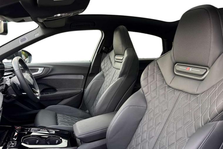 Adaptive cruise assist plus with steering intervention, Advanced driver attention and fatigue montior, Audi application store, Audi assistant, Audi connect emergency call and service, Audi drive select, Audi smartphone interface, Audi virtual cockpit plus with 11.9" OLED colour display, Automatic start/stop system with coasting functionality, Camera based traffic sign recognition, Garage door opener, Intersection assist, Lane change assistant with exit warning system, rear cross traffic alert and rear turn assist, Lane departure warning with emergency assist, MMI 10.9" front passenger touch display, MMI navigation plus with high resolution 14.5" OLED touchscreen colour display, Park assist plus, Parking system plus with 360 display, Progressive steering with servotronic, Swerve assist and turn assist, Top view camera, Traffic sign based speed limiter, Quattro with sport differential, S sports suspension with damper control lowered by 20mm, 2 USB-C ports in both the front and rear, DAB digital radio reception, Smartphone compartment with wireless charging, Aluminium window trims, Auto dimming rear view mirror, Black door handles, Black roof rails, Dark chrome-plated tailpipe trims, Digital OLED tail lights including communication light, Door mirrors - electrically adjustable, heated, folding and auto dimming on both sides, Front and rear electric windows, Front door sill trims with aluminium inlays, illuminated with 'S' logo, Headlight cleaning system, High beam assist, LED daytime running lights, LED third brake light, Matrix LED headlights with eight light signatures selectable via the MMI or the myAudi app, Panoramic glass roof with switchable transparency, Privacy glass, Rear and side windows with heat insulating glass, Rear side wing doors, Rear wash/wipe, Red S rhombus badging with S lettering on rear, S bumpers, radiator grille and diffuser in titanium matt black and diffuser insert in matt silver, White rhombus logo projection light in exterior mirrors, Windscreen with acoustic glazing, 3 rear headrests, 3 seat rear bench, 3 spoke leather steering wheel with multi-function buttons with touch control, flattened on top and bottom, with S badging and contrast stitching, 3-zone automatic climate control, 40:20:40 split folding rear seat bench with centre armrest and cup holders, Comfort front centre armrest, Electric steering wheel adjustment, Electrically adjustable front seats, Front and rear floor mats, Front sport seats plus with integrated headrest and S embossed logo, Headlining in black cloth, Heated front and outer rear seats, Heated steering wheel, i-Size child seat mounting on the front passenger side and outer rear seats, i-Size and top tether on the outer rear seats, Luggage compartment lid, electrically opening and closing, Memory function for driver seat, Pearl Nappa leather upholstery, Pneumatically adjustable lumbar support, Single front passenger seat, Stainless steel pedals and footrest, Steering wheel grips in perforated leather and shift paddles, Ventilation seat and massage function for the driver and front passenger, Black styling package plus - A5, Sound and vision pack - A5, 3x3 point rear seat belts, Acoustic vehicle alerting system, Convenience key with safelock, Driver airbag, Electric child safety locks, First aid kit with warning triangle and vests, Front emergency brake assist, Front passenger airbag, Front passenger airbag deactivation, Hill hold assist, Occupant detection in rear seat area, Proactive passenger protection system for front, sides and rear, Red brake calipers, Seat belt monitoring with rear seat occupant reminder, Side airbags in front and rear with head airbag system and front interaction airbag, Tyre pressure loss indicator, Anti theft alarm, Anti-theft wheel bolts, Keyless Go, Accent surfaces and control buttons in gloss black, Black dashboard with contrast stitching, Softwrap in Dinamica with contrast stitching, Upper and lower interior elements in dinamica microfiber, 20" 5 twin spoke design Audi Sport alloy wheels in metallic black and gloss turned finish, Tyre repair kit,
