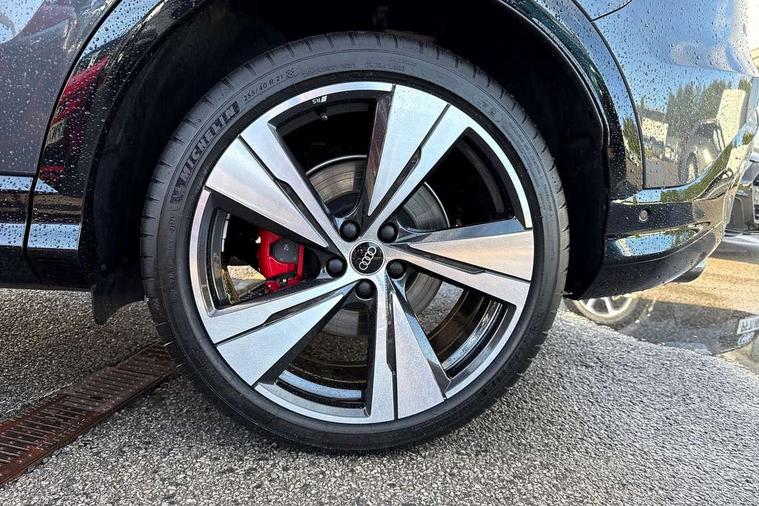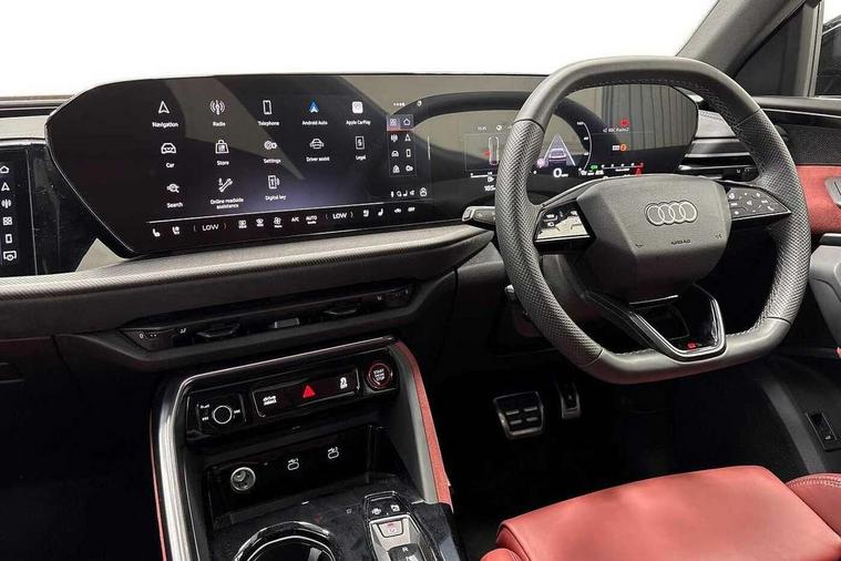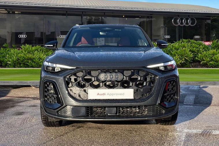 Adaptive cruise assist plus with steering intervention, Advanced driver attention alert, Audi application store, Audi connect emergency call and service, Audi digital key, Audi drive select, Audi smartphone interface, Audi virtual cockpit plus with 11.9" OLED colour display, Camera based traffic sign recognition, Fatigue monitor, Front cross traffic intersection assist, Garage door opener, Lane change assistant with exit warning system, rear cross traffic alert and rear turn assist, Lane departure warning with emergency assist, MMI 10.9" front passenger touch display, MMI navigation plus with high resolution 14.5" OLED touchscreen colour display, Park assist plus, Parking system plus with 360 display, PAS, Reversing camera, Swerve assist and turn assist, Top view camera, Traffic sign based speed limiter, S adaptive air suspension, 2 USB-C ports in both the front and rear, DAB Digital radio, Smartphone compartment with wireless charging, Acoustic glass for front door windows, Active digital light signatures - Six additional combinations of active daytime running light signature, Auto dimming rear view mirror, Black door mirrors, Black roof rails, Coming/leaving home lighting function, Contrast bumpers in mythos black metallic paint finish, Digital OLED tail lights including communication light, Electrically adjustable heated and folding + automatically dimming exterior mirrors, Entry LED with red and white rhombus S logo projection, Exhaust tailpipes in dark chrome, Front and rear electric windows, Front door sill trims with aluminium inlays, illuminated with 'S' logo, Headlight cleaning system, Heated rear window, High beam assist, High gloss window surrounds, Inlay and front air inlets in matt anthracite chrome, Logo projection light in exterior mirrors, Matrix LED headlights, Memory function for door mirrors, Privacy glass, Projection light for rear window, Radiator grille in phantom black, Rear and side windows with heat insulating glass, Rear honeycombe grille in matt black with inlay in matt anthracite chrome, Rear side wing doors, Rear wash/wipe, Red S rhombus badging with 'S' lettering on rear, S exterior styling, Towbar preparation, Windscreen with acoustic glazing, 3 rear head restraints, 3 seat bench in 2nd row, 3 spoke leather steering wheel with multi-function buttons with touch control, flattened on top and bottom, with S badging and contrast stitching, 40:20:40 split folding rear seat bench with centre armrest and cup holders, Comfort centre armrest, Deluxe 3 zone electronic climate control, Electric steering wheel adjustment, Electrically adjustable front seats with memory function for driver's side, Front and rear floor mats, Front seat ventilation, Front sport seats with integrated head reastrains, Headlining in black cloth, Heated front seats, Heated outer rear seats, Heated steering wheel, i-Size child seat mounting on the front passenger side and outer rear seats, i-Size and top tether on the outer rear seats, Interior trim in aluminium look, Luggage compartment lid, electrically opening and closing, Perforated fine nappa leather with diamond stitching incl. ventilation and massage function for front seats, Pneumatically adjustable lumbar support with massage function for front seats, Single front passenger seat, Softwrap in Dinamica, Stainless steel pedals and footrest, Steering wheel grips in perforated leather and shift paddles, Ambient lighting package plus - Q5, Black styling package plus - Q5, Sound and Vision pack - Q5, Storage and luggage compartment pack - Q5, Vanadium pack - Q5, 3x3 point rear seatbelts, ABS, Acoustic vehicle alerting system, Convenience key with safelock, Driver and front passenger airbag with passenger airbag deactivation, Electric child safety locks, First aid kit with warning triangle and high visibility vests, Front emergency brake assist, Front side airbags with head airbag system and front interaction airbag, Hill hold assist, Occupant detection in rear seat area, Proactive passenger protection system for front, sides and rear, Red brake calipers, Side airbags in front and rear with head airbag system and front interaction airbag, Tyre pressure loss indicator, Anti theft alarm, Anti-theft wheel bolts, Remote control key with SAFELOCK and keyless go, Black dashboard with contrast stitching, Carbon micro twill structure inlay, Steel grey seat stitching, Upper and lower interior elements in dinamica microfiber, 21" 5 arm slit black metallic, gloss turned finish Audi Sport alloy wheels, Tyre repair kit,