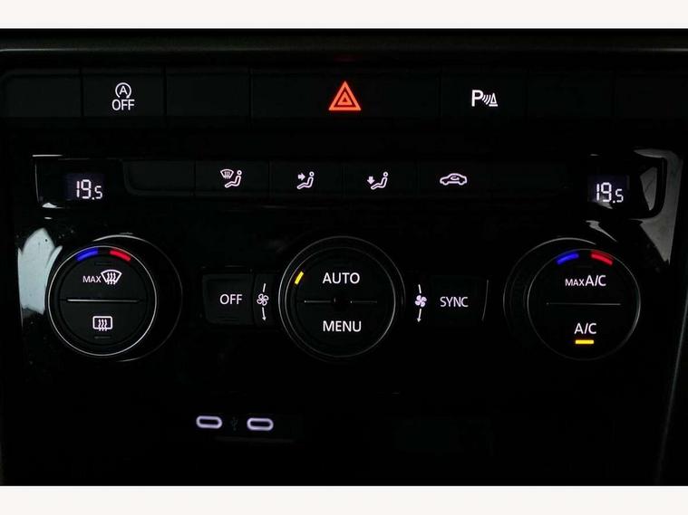 'Lights On' Reminder warning buzzer, Adaptive cruise control with front assist, radar sensor controlled distance monitoring, city emergency braking, Automatic start/stop system, Bluetooth telephone and audio connection for compatible devices, Car information display, Driver tips and journey analysis, Emergency call service, Lane assist with warning text instrument cluster, Modified key software - reduce switch off time for key status change to Long no motion, Multifunction computer with visual gear change recommendation for fuel consumption, Service interval indicator, Think blue trainer driver tips and journey analysis, Wireless app connect for apple carPlay, Battery regeneration during braking, Centre arm rest including USB type C interface and USB charging socket, DAB Digital radio, Diversity antenna for FM reception, Front USB type C Interface 2X and USB charging socket, Music playback - MP3, WMA and AAC files, Premium USB cable in choice of either Apple or Android smartphone compatibility, SD card slot, Simultaneous pairing of 2 compatible mobile devices, Single CD player, glovebox mounted, SMS functionality - read, compose and send SMS messages using touch-screen display, Storage compartment with longitudinal and height adjustable in armrest and two rear air vents, Title and cover art display, Auto dimming interior rear view mirror, Black grained lower door protectors, Black grained wheel arches, Body colour bumpers with silver metallic underbody fascia, Body colour door handles, Chrome trim on upper and lower radiator grille, Dusk sensor, Electrically foldable, adjustable and heated door mirrors with puddle lights and reverse activated kerb-view adjustment on passenger's door mirror, Front and rear electric windows, Front windscreen wiper with intermittent wipe and 4 position delay, Fully galvanised body, Heated rear window, High level 3rd brake light, LED rear number plate lights, Manual coming/automatic leaving home lighting function, Rain sensor, Rear wash/wipe with intermittent wipe setting, Volkswagen roundel, 2 front reading lights, 3 rear head restraints, 4 load lashing points in luggage compartment, Climate control - 2 zone electronic air conditioning with automatic air recirculation and allergy filter, Drawer under drivers seat, Front cupholders x 2, Front seat back storage pockets, Glovebox, Height adjustable front seats, Height/reach adjust steering wheel, Illuminated vanity mirrors, Instrument lighting, white adjustable panel illumination, Interior light delay, Isofix easy fit child seat preparation for 2 outer rear seats, Load through provision with single cup holder when folded down, Luggage compartment cover, removable, Luggage compartment lighting, Split folding rear seat backrests with centre armrest, Storage compartment in left and right luggage area, Storage compartment in rear doors, Storage compartments in driver and front passenger doors, 3 rear three point seatbelts, ABS, Curtain airbags, Driver and front passenger safety-optimised head restraints, Drivers and front passengers airbags with passengers deactivation switch, Drivers seatbelt reminder, Electronic parking brake with auto hold, Electronic stability control (ESC) includes ASR, EDL, EDTC and trailer stabilisation function, Front seat side impact airbags, Predictive pedestrian protection, Rigid safety cell with front and rear crumple zones, Three point height adjust front seatbelts + pretensioners, Tyre pressure loss indicator, Ventilated front and rear disc brakes, Volkswagen roadside assistance, Alarm with remote central locking and interior protection, Electronic engine immobiliser, Remote central locking with 2 remote folding keys, Limestone grey decorative inserts in dash and door panel,