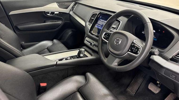 12.3" Progressive Driver Display, 360 degree surround view parking camera with side proximity sensors, 9" centre console portrait touch screen, Adjustable steering wheel force, Bluetooth hands free telephone connection, Driver alert control with lane keeping aid, Driver assistance (pilot assist and adaptive cruise control), Driver awareness - Blind spot information system with steer assist, cross traffic alert with autobrake and rear collision warning and mitigation, Emergency call service, Front and rear park assist, Google Automotive Services - Navigation with Voice recoginition and google assistant, Handsfree power tailgate opening and closing, Oncoming Lane Mitigation, Power operated tailgate, Service interval indicator, Speed limiter, Speed sensitive steering, Trip computer, Volvo on call, Wireless Mobile Phone Charger, 8 speed automatic transmission with start/stop + manual change functions, Touring chassis, DAB Radio (Digital Audio Broadcasting), Premium Sound by Harman Kardon, dirac unison, dolby pro logic II surround sound, 13 speakers/600W output and fresh air subwoofer, Steering wheel remote infotainment controls, Active bending headlights with adaptive shadow technology, Adaptive brake lights with high level LED brake lights, Auto dimming interior + exterior mirrors, Auto folding and heated power door mirrors, Automatic headlight levelling system, Automatic LED Headlights + Active high beam incorporating daytime running lights, Body colour bumpers, Front and rear power windows, Headlight cleaning system, Heated front windscreen, High gloss black door mirrors and window surround, High gloss black front and rear bumper deco, High gloss black mesh front grille with surround, Home safe and approach lighting, Integrated roof rails in high gloss black, LED front fog lights with cornering light function, Power glass tilt and slide panoramic sunroof with sun curtain, Puddle lights, Rain sensor with automatic windscreen wiper activation, Rear side wing doors, Rear wash/wipe with intermittent wipe setting, Roof antenna, Roof spoiler, Visible VIN plate, 12V socket front tunnel console, rear passenger compartment and cargo area, 2 seat bench in 3rd row, 2nd Row centre armrest with and cupholders, 3 seat bench in 2nd row, 4 zone electronic climate control with Clean zone air quality system + pollen filter, A-pillar parking ticket holder, Advanced interior air cleaner PM2.5, Air conditioning for 3rd row of seats, Ambient door and instrument panel lighting, B Pillar ventilation, Bright metal luggage threshold, Centre console cupholders and storage, Floor mats, Front and rear door pocket and front cupholder illumination, Front and rear reading lights, Theatre lighting and centre armrest storage illumination, Front footwell and side step illumination, Front headrests, Front seat cushion extensions, Heated front seats, Heated rear seats, Heated steering wheel, Height/reach adjustable steering column, Illuminated front and rear tread plates, Illuminated luggage compartment, Illuminated tailgate, Illuminated vanity mirrors + ticket holder, Illumination lockable glovebox compartment, Integrated sun curtains in rear doors, Isofix outer rear child seat preparation in 2nd row, Load protection net, Luggage compartment divider with grocery bag holder, Outboard armrest with cupholder and storage for third row passengers, Power driver seat with multi directional lumbar support and memory for seat and exterior mirrors, Power folding 2nd row headrests, Power passenger seat with multi directional lumbar support and memory, Rear footwell and side step illumination, Rear headrests, Semi automatic load cover, Single front passenger seat, Underfloor luggage compartment storage, 7 three point seatbelts, City safety with steering support includes pedestrian, cyclist and large animal detection and front collision warning with full auto brake, Drivers knee airbag, Dual stage driver/passenger airbags, First aid kit, Front seats SIPS airbags, Hill descent control - off drive mode, Hill start assist, IC (Inflatable Curtains) - Full Length, Passenger airbag cut-off switch, Power child locks on rear doors, Power parking brake with auto hold function, Road sign information display, Run off Road Mitigation, Run off Road Protection, Seatbelt reminder and pretensioners for all seats, SIPS (Side Impact Protection System), Slippery road and hazard light alert, Stability and Traction Control with Spin control, Engine Drag Control and Corner Traction Control, Tyre pressure monitoring system, Vehicle deceleration control with Anti-lock Brake System, Electronic Brake Distribution and Emergency Brake Assist, Warning triangle, WHIPS whiplash protection system - front, Anti-theft alarm including immobiliser/volume sensor + level sensor, Care key with user defined top speed, Key integrated remote control central locking + fuel flap with deadlocking system and auto open/close power windows, Keyless drive includes keyless entry and keyless start, Locking wheel nuts, Private locking for glovebox and tailgate, Tailored Instrument Panel and Door Tops with Contrast Stitching, Tempa spare wheel and jack,