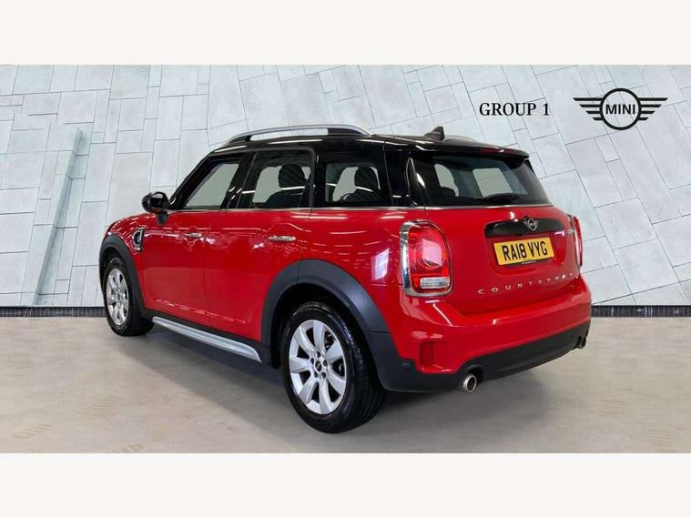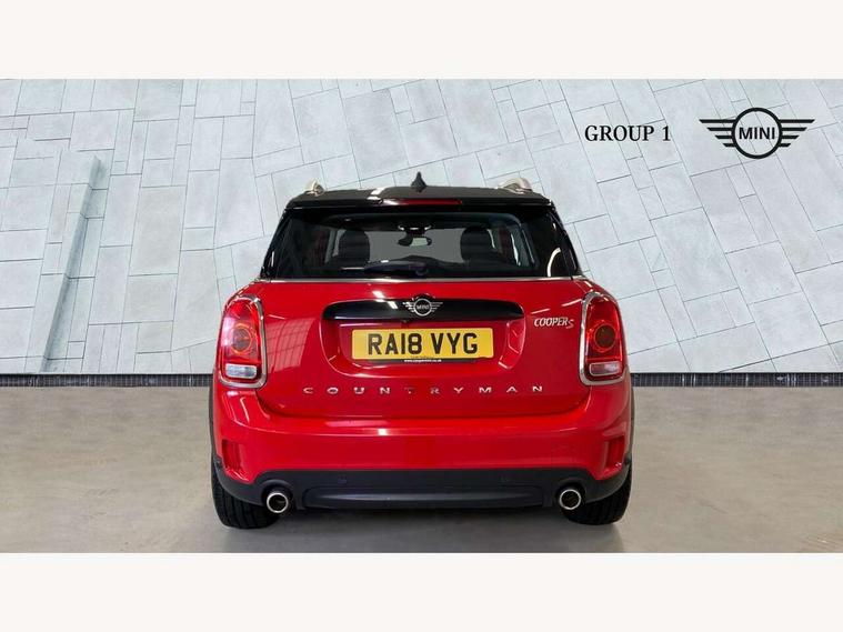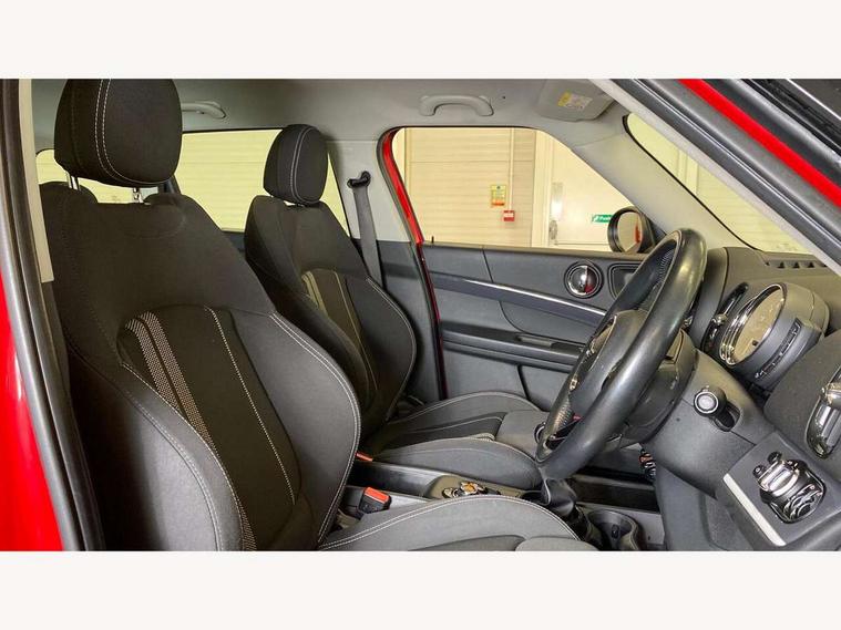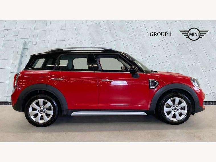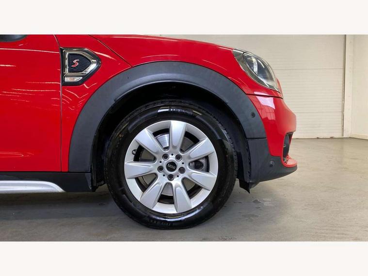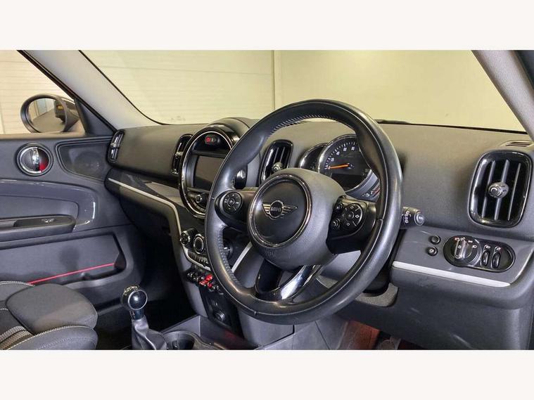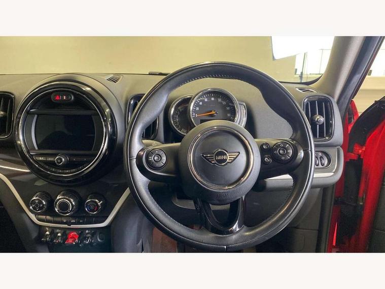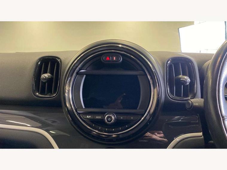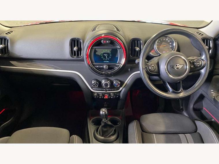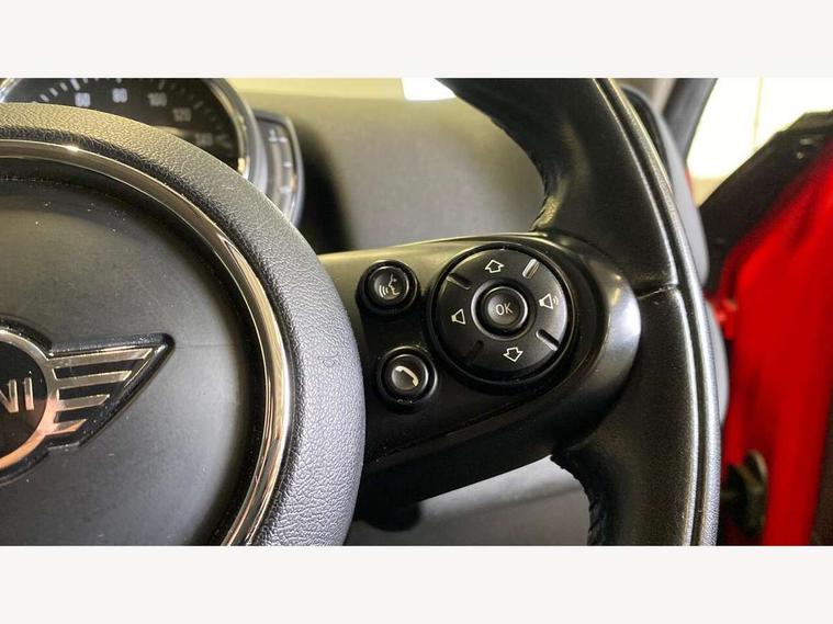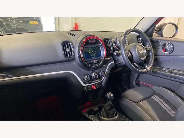 Apple CarPlay preparation, Brake pad wear indicator warning light, Central display with LED ring and 6.5" colour touch screen, Connected driver, DTC - Dynamic traction control, Exterior temperature gauge, Intelligent emergency call, MINI remote services, MINI TeleServices, Navigation system, On board computer, Personal Profile, Real time traffic information, Service interval indicator, Servotronic speed sensitive power steering, Electronic differential lock, Performance Control, Auxiliary input socket, DAB digital radio module, MP3 compatible radio/single CD player, Radio visual boost, Anti dazzle rear view mirror, Body colour scoop integrated into engine- compartment lid, Chrome door handles, Chrome headlight surround, Chrome plated radiator grille, Chrome side scuttle, Chrome window surround, Electric front windows + one touch + anti-pinch, Electrically adjustable door mirrors, Follow me home headlights, Green tinted glass, Heated door mirrors/heated windscreen washers, Heated rear window with automatic switch off, Metal look door sill finishers, Rain sensor including auto headlights activation, Rear wiper, Roof spoiler, Twin chrome exhaust tailpipes, White indicator lights, 12V power point front, 2 cupholders in front centre console, 4 lashing points to secure luggage, 40:20:40 split folding rear seats, Centre console storage box, Chrome interior door handles, Driver/passenger sunvisors, Front and rear headrests, Front interior light, Front passenger grab handle, Front seat backrest storage nets, Heater with recirculation function, Height/reach adjust steering wheel, Isofix rear child seat preparation, Luggage compartment lighting, Multifunction steering wheel, Rear grab handles, Sensatec gearshift and handbrake, Sport front seats, Storage compartments in doors, Toolkit in luggage compartment, Interior lights pack - Countryman, MINI Excitement Pack - Countryman, 3 point automatic seatbelts, 3 point seatbelts on all rear seats, ABS, Cornering brake control (CBC), Crash Sensor - activates hazard/interior lighting + unlocks doors, Driver and passenger airbags, Driver and passenger side airbags, DSC - Dynamic Stability Control, Electronic brake force distribution, Electronic parking brake, Front curtain airbags, Front passenger airbag deactivation, Fuel cut off safety device, Hill start assist, Pyrotechnically pre-tensioned front seatbelts, Tyre pressure warning, Automatic door locking, Keyless Start, Locking wheel bolts, RF remote control central locking, Second remote key, Thatcham category 1 alarm + immobiliser,