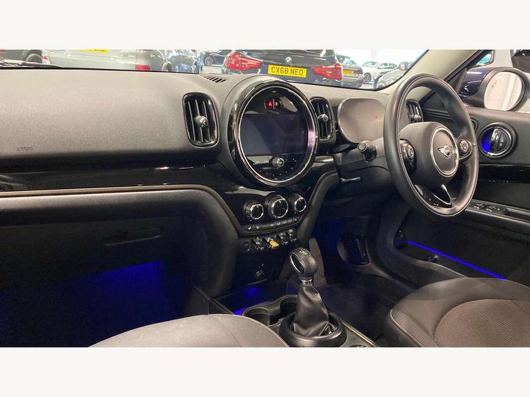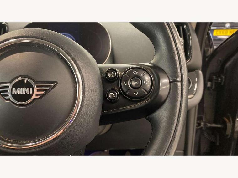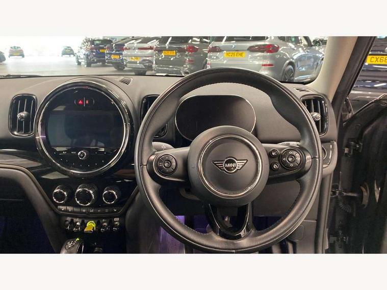 Active Guard incl speed limiting and lane departure functions with auto steering, and front collision warning with brake intervention, Automatic start/stop function with brake energy recuperation, Compatible mobile phone bluetooth with audio streaming, eDrive button, Electro-mechanical speed dependant steering assistance, Instrument cluster, On board computer, Rear parking distance control, 36L fuel tank, Automatic transmission, Charging flap on front left lower A-panel, Double Vanos system, Fully variable valve control, High precision injection, Home charging cable, Performance Control, Public charging cable, FM tuner and DAB digital radio, Bonnet scoop, Chrome border honeycomb structure radiator grille with S badge, Chrome fuel filler cap, Day time driving lights, Dynamic brake lights, Electric windows, Heated rear window, Heated windscreen washer jets, LED fog lights, LED Headlights, Metal door sill strips with Cooper S imprint, Model logo, Model logo on Tailgate, Rain sensor with auto headlights, Rear fog lights, Rear window wiper, Side scuttle panel with integrated indicator, Split rear doors, Sun/heat protection glass, Twin exhaust tailpipe, White indicator lenses, 12V socket in centre console, 3 spoke sport leather steering wheel + limiter function and audio controls, 360L luggage compartment capacity, 4 lashing eyes in luggage compartment, 40:20:40 split folding rear seats, Chrome interior highlights, Colour line - Carbon black, Cupholders, English handbook, Floor mats, Front headrests, Glove compartment, Headliner with grab handles and clothes hooks, Height and length steering column adjustment, Interior lighting with 12 basic colours selectable via toggle switch in roof, Isofix rear child seat preparation, Leather gearshift lever and handbrake gaiters, LED reading lights, vanity mirror lights, front foot well light and spotlight on front seats, Manual air conditioning, Mechanical seat adjustment, driver seat height adjust, forward/back and front seats backrest, Multifunction steering wheel, Passenger seat height adjuster, Rear headrests, Storage compartments in doors, Sunvisors with vanity mirrors, Excitement pack - Countryman, Navigation pack - Countryman, 2 tone horn, 3 point seatbelts on all seats, 6 Airbags - front, side, head and seat belt tensioners, Acoustic pedestrian protection, Anti-lock braking system (ABS), DSC - Dynamic Stability Control, Electronic handbrake, Front and rear disc brakes, Hill start assist, Tyre pressure monitoring system, Alarm system with tilt sensor, monitoring doors, bonnet interior and tailgate, Auto drive away locking, Deadlocking function, Electronic vehicle immobiliser, Locking wheel bolts, Start/stop toggle with keyless go, Piano black interior trim, Tool kit,