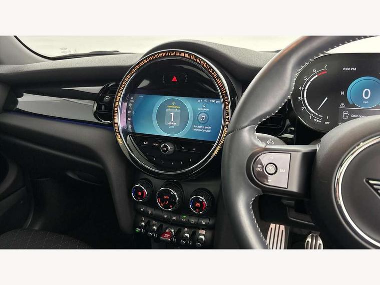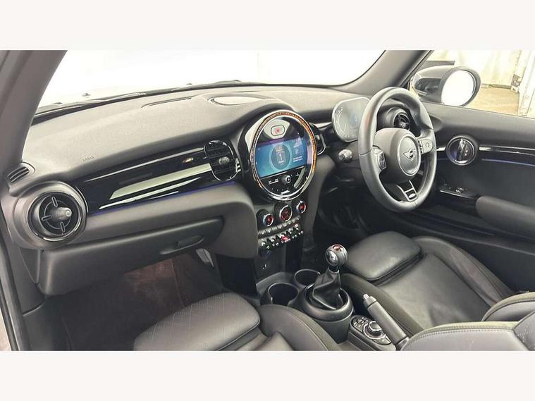 Automatic start/stop function with brake energy recuperation, Compatible mobile phone bluetooth with audio streaming, Cruise control with brake assist, Electro-mechanical speed dependant steering assistance, Flexible car sharing preparation, Instrument cluster, MINI Driving Modes - centre toggle switch to control driving setting (sport, mid and green), Mini E-call, MINI TeleServices, On board computer, Rear park distance control, Service interval indicator, 6 Speed manual transmission including gear change indicator display, Adaptive suspension, Double Vanos system, Fully variable valve control, High precision injection, Performance Control, 4 speakers in front door trims and underneath front seats, 8.8" touchscreen with LED ring, FM tuner and DAB digital radio, Automatic headlight activation switch, Bonnet scoop, Dynamic brake lights, Electric front windows, Heated rear window, Heated windscreen washer jets, JCW Aerodynamic kit - Front and rear bumpers with sporty JCW styling and part-painted side sills with MINI John Cooper Works door sill finishers, John Cooper Works rear spoiler, LED headlight with closed ring and daytime driving lights, Metal door sill strips with Cooper S, Model logo Cooper S on right of tailgate, Radiator grille chrome border with honeycomb structure including S Badge, Rain sensor window wipers, Rear fog lights, Rear LED lights with union jack design, Rear window wiper, Side scuttle panel with integrated indicator, Sun/heat protection glass, Two central exhaust tailpipes with chrome finisher, White indicator lenses, 12V Accessory socket in centre console, 4 lashing eyes in luggage compartment, 60/40 split folding rear seat, Anthracite headliner including grab handles and clothes hooks, Carbon black colour line - Knee roll and door armrest, Chrome interior highlights, Cupholders, Front and rear isofix with front passenger airbag deactivation, Glove compartment, Height and length steering column adjustment, Interior lighting with 12 different colours across the dashboard, underneath door bezel with illuminated laser-engraved design on central display, JCW Sport seats with integrated headrests, adjustable thigh support and John Cooper Works logo, Leatherette gearshift lever and handbrake gaiters, LED reading lights, vanity mirror lights, front foot well light and spotlight on front seats, Manual air conditioning, Mechanical seat adjustment - forward/back & backrest for front seats and driver seat height adjust, Multifunction steering wheel, Passenger seat height adjuster, Storage compartments in doors, Storage pocket on back of front seats, Sunvisors with vanity mirrors, Velour floor mats, Walknappa leather steering wheel with grey seam and John Cooper Works badge on Piano Black lower steering wheel spoke, Piano black exterior pack - Mini Hatchback Cooper S, 3 point seatbelts on all four seats, 6 Airbags - front, side, head and seat belt tensioners, Anti-lock braking system (ABS), DSC - Dynamic Stability Control, Front and rear disc brakes, Two tone horn, Tyre pressure monitoring system, Alarm system with tilt sensor, monitoring doors, bonnet interior and tailgate, Electronic vehicle immobiliser, Start/stop toggle with keyless go, Piano black interior trim, Tool kit,