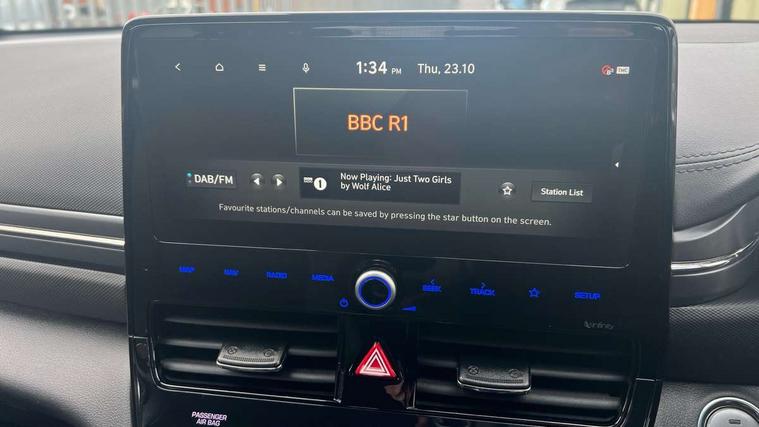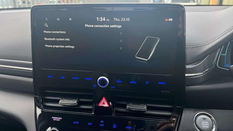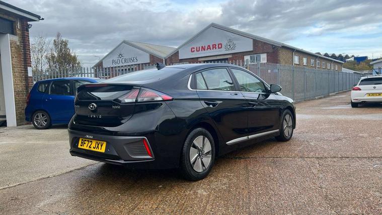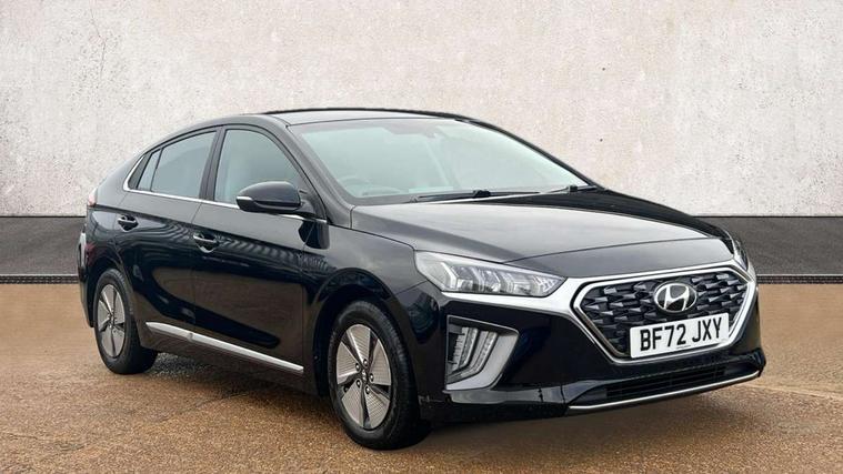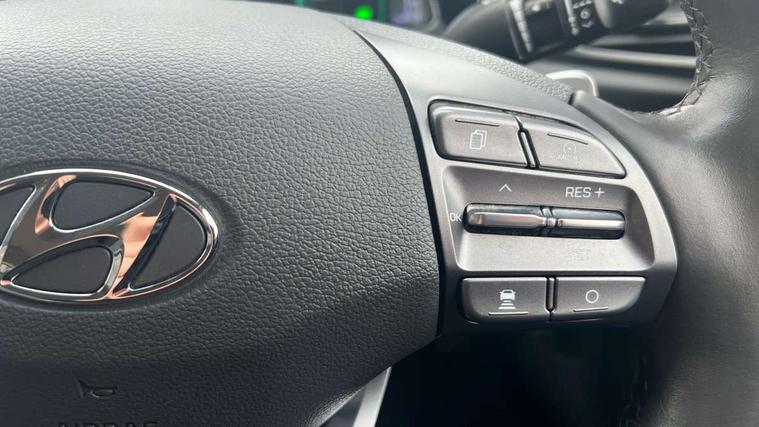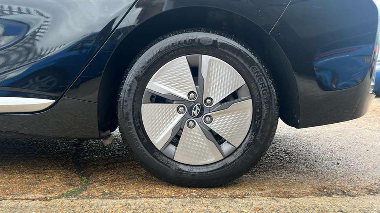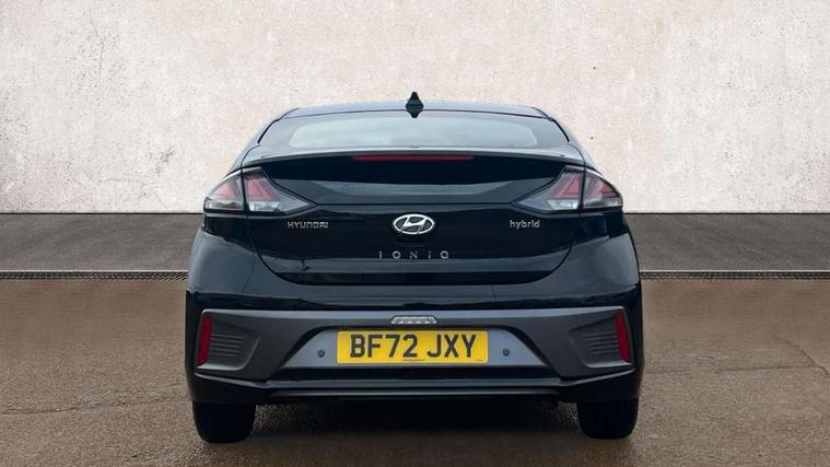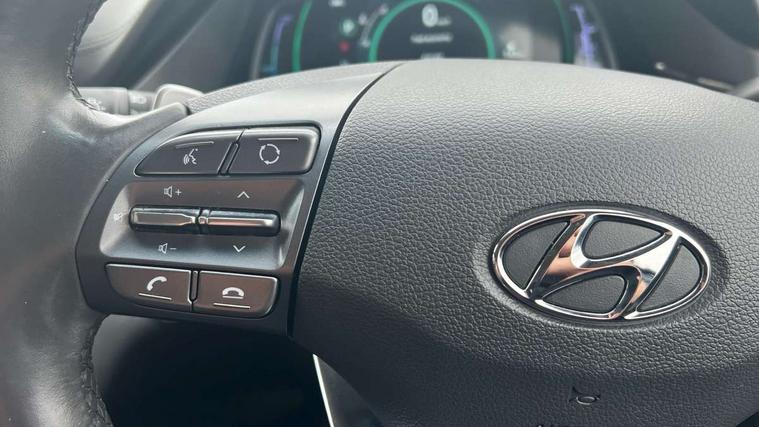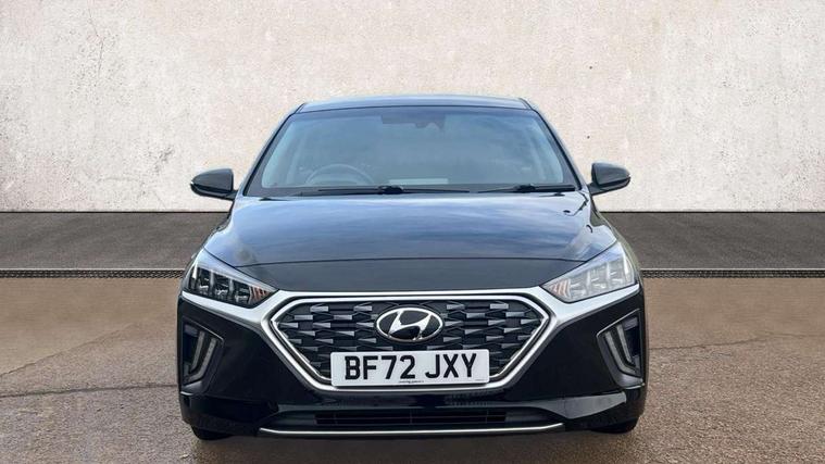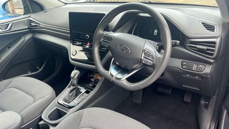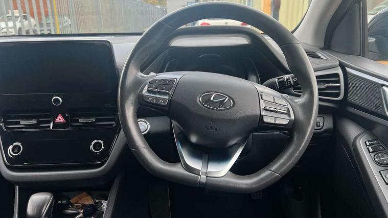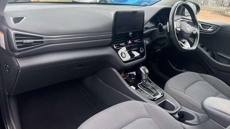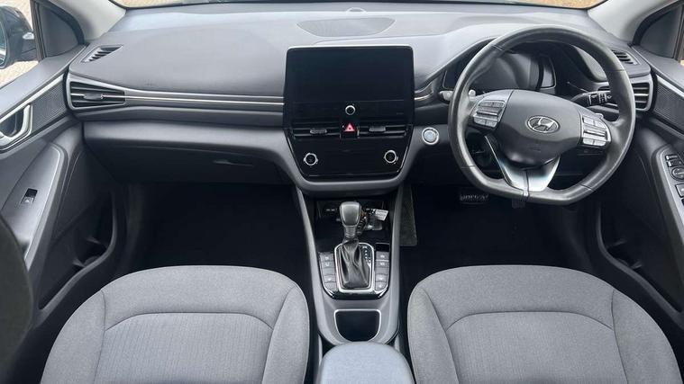 10.25" touchscreen satellite navigation includes traffic messaging channel, mapcare, live services and bluelink, Apple car play/Android Auto, Bluetooth system, Cruise control, Driver attention alert system, E-call, Eco driving assistant system (ECO DAS), Electric power steering with variable drive modes, Gear lever drive mode selector, Lane departure warning system with lane keep assist - LKAS, Parking Brake - Foot Brake, Parking system with rear camera and guidance system, Rear parking sensor, Rear view monitor, Roadside assistance, Supervision cluster with 7" high resolution TFT LCD, Voice recognition, Windscreen washer fluid sensor and warning indicator, Wireless phone charging pad, DAB Digital radio, Infinity sound system includes 1 centre, 2 tweeters, 2 front, 2 rear and 1 ext amp, Radio data system, Steering wheel audio, phone and cruise controls, USB and aux connection in front, Active air flap radiator grille, Auto dimming rear view mirror, Automatic headlights with dusk sensor, Body colour bumpers, Body colour door handles with chrome inserts, Body colour door mirrors, Bodyside mouldings, Chrome door scuff with ioniq logo, Chrome finish window surround, Chrome radiator grille, Door mirror puddle lights, Electric adjustable door mirrors, Electric front windows - anti trap + one touch, Electric heated door mirrors, Heated rear windscreen, High beam assist, LED daytime running lights, LED Headlights, LED indicators in door mirrors, LED rear fog light, Positioning Lights - LED, Power folding door mirrors, Rain sensor, Rear electric windows, Rear LED lights, Rear roof spoiler with integrated LED brake light, Rear side wing doors, Rear wiper, Solar glass with windscreen shade band, Tinted windows, Two tone rear bumper, Variable front intermittent wipers, 12V power outlets, 3 rear seats, 60/40 split folding rear seat, Centre console storage, Centre interior light, Chrome interior door handles, Cloth upholstery, Driver seat height adjust, Driver's electric adjustable lumbar support, Driver/passenger sunvisors with illuminated vanity mirrors, Dual zone climate control, Front centre armrest with storage compartment, Front cupholder, Front head restraints with vertical and horizontal adjustment, Front seat and rear pockets, Heated front seats, Heated steering wheel, Illuminated luggage compartment, Interior mood lighting, Leather wrapped steering wheel, Luggage net, Manual height adjustable front passenger seat, Map and reading lights, Paddle shifter, Rear centre console with air vents, Single front passenger seat, Sunglasses holder, USB - driver arm rest (charging only), Vertical adjustment rear head restraints, 3x3 point rear seatbelts, Airbags - front, front side, curtain and drivers knee airbags, Anti-lock brake system (ABS), Autonomous emergency braking, Electronic stability control, Front passenger airbag deactivation switch, Hill start assist control (HAC), Manual child lock in rear doors, Regenerative braking system, Traction control, Tyre pressure monitoring system with individual tyre pressure display, Deadlocks, Immobiliser, Keyless smart entry with push button start, Remote central locking, 15" Design B alloy wheels, Tyre repair kit,