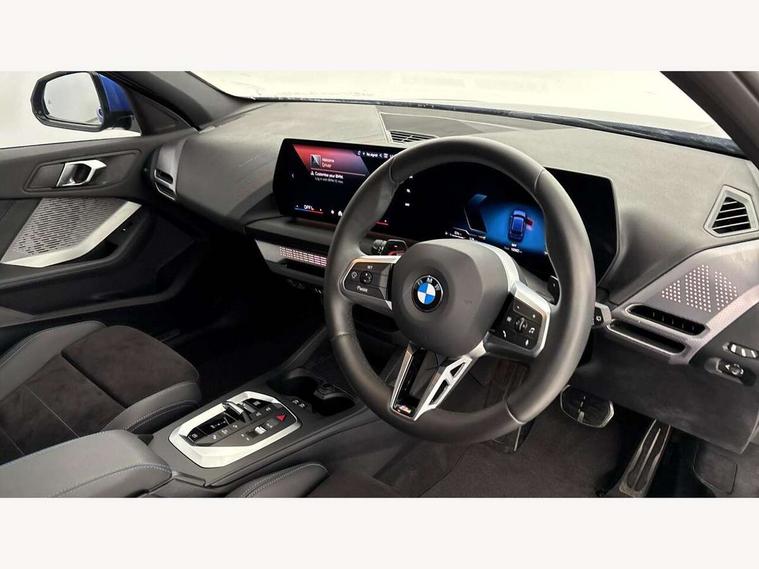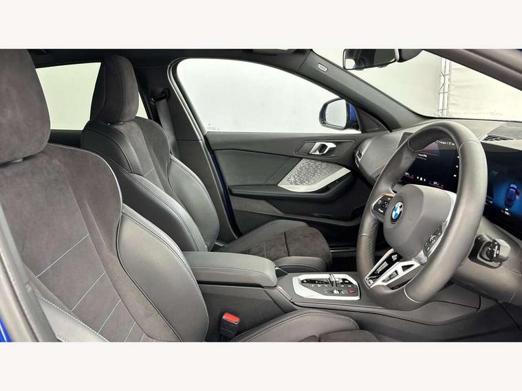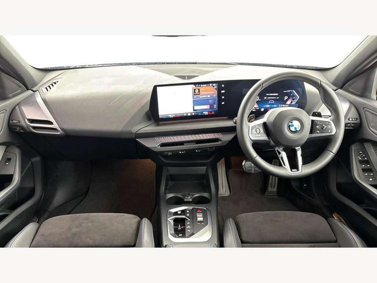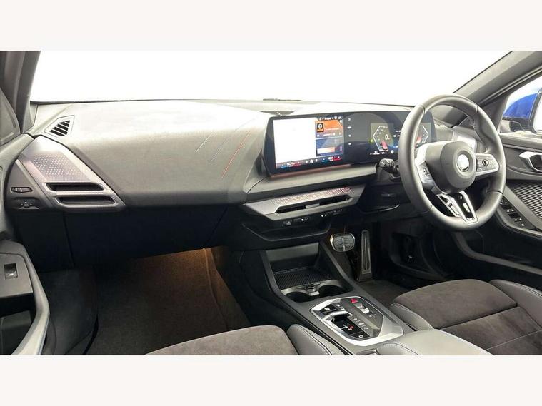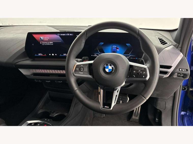 Active guard plus, Attentiveness assist, Bluetooth / WiFi interface for wireless connection of mobile terminal devices and audio streaming, BMW ConnectedDrive online services, BMW Live cockpit plus, BMW Teleservices, Check Control warning system for monitoring of lights and door/luggage compartment open warning, Eco pro mode, Electric power steering with Servotronic steering optimised at all speed ranges, Evasion assistant, Flat airvents in instrument panel with adjustable slats, Front and rear parking sensors, Front axle single joint with specific axle kinematics to minimise drive influences on steering + provide increased rigidity agile driving behaviour, Gearshift time display in manual mode, Integrated owners handbook, Left turn warning with brake function, My modes (Personal / Efficient / Sport), Oil sensor for level and grade, On board computer, Optimum shift indicator, Park assist including reversing assistant, lateral parking aid and reversing assist camera, Personal e-SIM, Personal Profile, Pull away assistant, Rigidly mounted rear subframe - Multi link construction with separate spring / damper configuration and excellent driving characteristics, Speed limit Info including no-overtaking indicator, Speed limiter, 49 litre fuel tank, Aluminium lightweight construction, Anti roll bar front and rear, Balancer shaft, Double VANOS twin scroll turbocharging system, Drive Performance Control, Electronic differential lock, Electronic selector lever, High precision injection, M Adaptive suspension, Petrol Particulate Filter, Steptronic transmission with double clutch, Twin tube gas filled shock absorbers with degressive characteristic curve, VALVETRONIC engine management, DAB Digital radio, Auto dimming rear view mirror, Automatic windscreen wipers and automatic headlight, Body colour door handles, Body colour mirror caps, Body colour roof trims, Chrome 'M' logo side designation, Chrome exhaust twin tailpipes round 90mm in left, Chrome kidney grille frame with Satin Aluminium struts, Direction indicator side lights in exterior mirrors, Electrically adjustable exterior mirror with mirror adjustment switch on drivers armrest and aspheric on driver side, convex on passenger side, Exterior M sport design elements, Fading support, Folding side mirrors with auto dimming/folding wing mirrors with auto dimming, Follow me home headlights, Front and rear bumper system with replaceable deformation elements, Front and rear electric windows with open and close fingertip control, anti trap facility and comfort closing, Front bumper panel with M specific design in vehicle colour with inserts in black high gloss, Front door sill finishers in black plastic with M designation in metallic look, Green tinted heat protection glazing, Heated rear window, High gloss black exterior mirrors, High gloss shadowline window frame, Recess cover mirror frames and B/C pillar embelisher trim, High level third brake light, Integrated front windscreen with washer jets, LED daytime running lights, LED eyebrow turn indicators, LED front fog lights, LED Headlights, Lightweight engineering, M identification on the sides, Matt black air guide grilles, Matt black wheel arch trim, Model badge on tailgate right, Nearside reverse light in rear light cluster, Preparation for high beam assistant, Rain sensor, Rear bumper panel with M-specific design in vehicle colour with inserts in black high gloss, Rear fog lights, Rear side wing doors, Rear window wiper, Shark fin antenna, Side sill covers with M specific design in body colour, Trailer stabilisation logic, Visible VIN plate, Welcome lighting, 12V power socket in front centre console with blanking plug, 3 rear seat head restraints, 3 seat bench in 2nd row, 3 spoke sports leather steering wheel with black leather and stitching, pearl chrome decorative finish, specific M Badge, Anthracite front and rear floor mats, Anthracite headlining, Black boot net with lashing eyes, Cargo function on 2nd seat row, Child seat ISOFIX attachment for two outer rear seats and front passenger seat with anchorage points, Conditioned based service, Driver and front passenger backrest net on rear, Driver and front passenger seat heating, Driver side folding compartment in instrument panel, Folding rear clothes hook, Footrest and pedals in black plastic, Four grab handles integrated in roof lining, Front and rear door pockets with bottle holders, Front and rear side armrest integrated into door trim, Front armrest with storage compartment, Gearshift paddles on steering wheel, Glove compartment, Height adjustable front head restraints, Luggage compartment for bag hooks on left and right, foldable luggage compartment liner and four lashing eyelets, Manual adjust steering wheel, Multi-function controls for steering wheel, Rear seat backrest with manual 60:40 split folding with 3 top tether clips integrated on rear of seat panels, Single front passenger seat, Storage compartment in centre console, Storage compartment in luggage compartment, Stowage of the parcel shelf in luggage compartment trim, Sun visors with vanity mirrors and insert tab, Two front centre console cupholders, Type C two USB ports in rear centre console, Upper retaining strap integrated into backrest rear panels, Connected pack professional - 1 Series, Interior lights pack - 1 Series, M Sport exterior styling aerodynamics pack - 1 Series, 2 tone horn, 3 point seatbelts on all seats, front pyrotechnic belt tensioners, stopper and belt force limiters, rear coded belt buckles, Airbags - Front driver/passenger, front and rear curtain head protection, front side, manual deactivation of front passenger airbag, Anti lock braking system (ABS) with brake assist, BMW emergency call, Brake drying, Braking readiness, Child proof locking system in rear door, Comfort modes, Cornering brake control, Crash sensor activating of airbags, Unlocking doors, hazard warning lights, interior light, safety battery terminal, Driver and front passenger seat belt sec