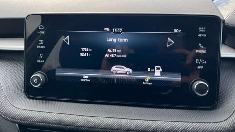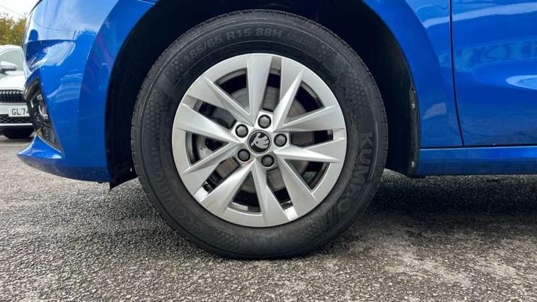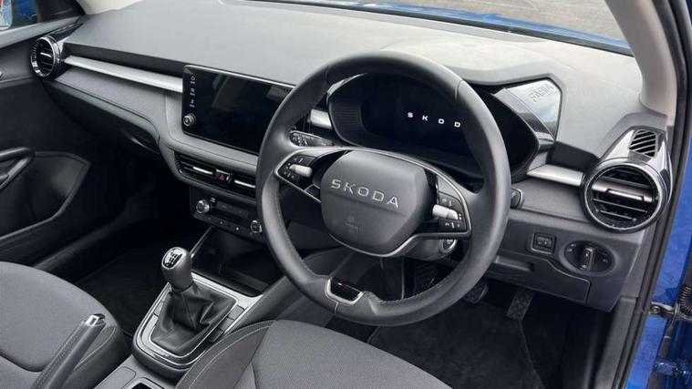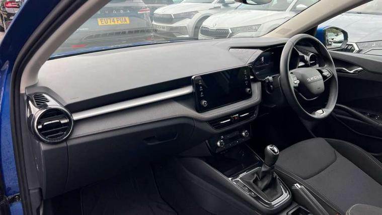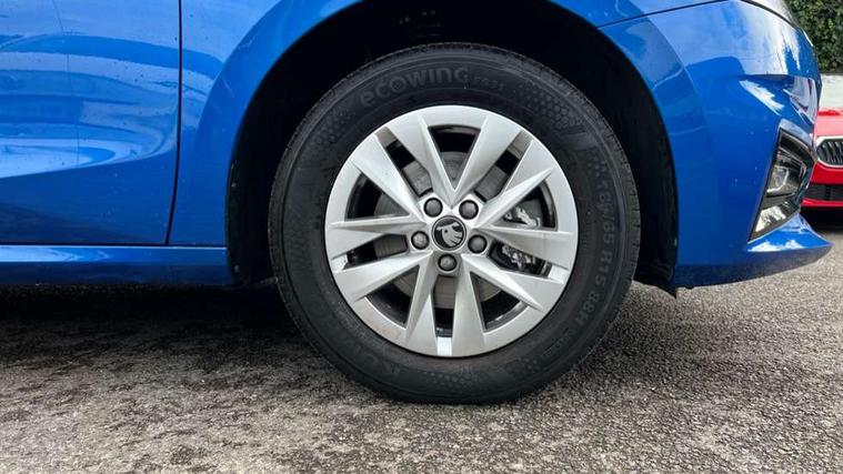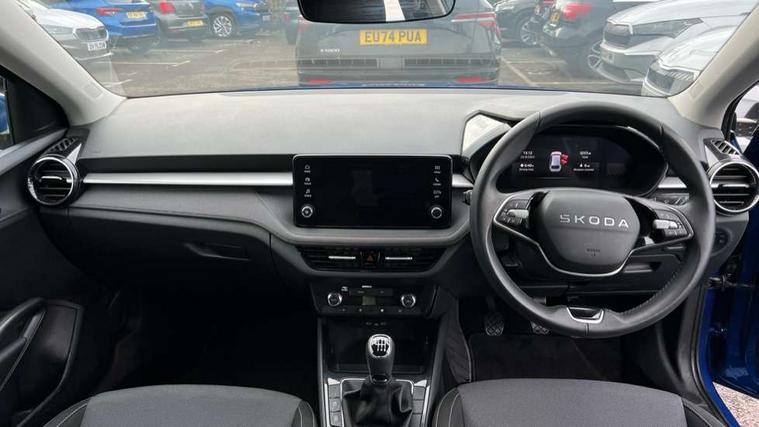 8" Digital instrument display, Advanced driver attention and drowsiness monitor, Bluetooth connection, Electromechanical power steering, Exterior temperature gauge, Service interval indicator, Traffic sign recognition, Wireless SmartLink for Apple CarPlay and Android Auto, 6 Speakers (4 in front and 2 in rear), 8.25" Skoda infotainment touchscreen display, Auxiliary socket for external MP3 player, DAB digital radio reception, Auto dimming rear view mirror, Body colour door mirrors, Body coloured bumpers, Door mirror integrated indicators, Front and rear electric windows, Front window wiper intermittent control, Headlight range control - Automatic, Ice scraper in fuel cap, LED 3rd brake light, LED daytime running lights with coming and leaving home feature, LED rear lights, Rear LED fog light, Rear side wing doors, Rear window wiper with washing nozzles, Roof mounted spoiler, SKODA tailgate lettering in chrome, Unique dark chrome design logo on alloy wheels, 2 reading lights in front and 2 reading lights in rear, 3 rear headrests, Backrest split and folding, Central console with removable cup holder and storage box, Chrome handbrake release button, Dual zone air conditioning with climatronic electronic control, Fabric upholstery, Front centre armrest, Gearshift knob/handle in leather, Grain satin black interior door handles, Hand brake lever handle in leather, Height adjustable front headrests, Height adjustable front seats, Height adjustable steering wheel, ISOFIX and TopTether anchorage points to the outer rear seats, ISOFIX and TopTether on the front passenger seat, Luggage compartment lighting, Manually adjustable lumbar support in front seats, Pollen filter, Rear seat bench unsplit, Single front passenger seat, Skoda lettering on steering wheel, Storm grey headlining, Sun visors with mirror and airbag label on passenger side, Textile floor mats, Ticket holder, Umbrella in drivers door, 3-point height adjustable front seats belts with pretensioner and force limiter, Automatic warning lights in case of crash, Driver and passengers airbag with switch off function, e-Call+, ESC including ABS, MSR, ASR, EDS, HBA and XDS, Front and rear seat belt warning, FRONT ASSIST (AEB City and AEB Inter Urban), Front side airbags, Head airbags, One tone horn, Pedestrian protection, Three rear 3-points safety seat belts with pretensioner and force limiter including stop function for outer rear seat belts, Tyre pressure monitoring system, Anti-theft alarm system including immobiliser, interior monitoring, backup horn, and towing protection, Central locking with radio remote control, interior controls, SAFE function and 2 foldable keys, Black painted air vents, Grain satin black central console cover, Metallic grey upper decorative trim, Satin black door and side trim panel in front, Textile Kota grey lower decorative inserts, Anti-theft wheel bolts protection, Super-low rolling resistance tyres,