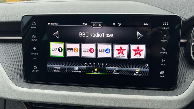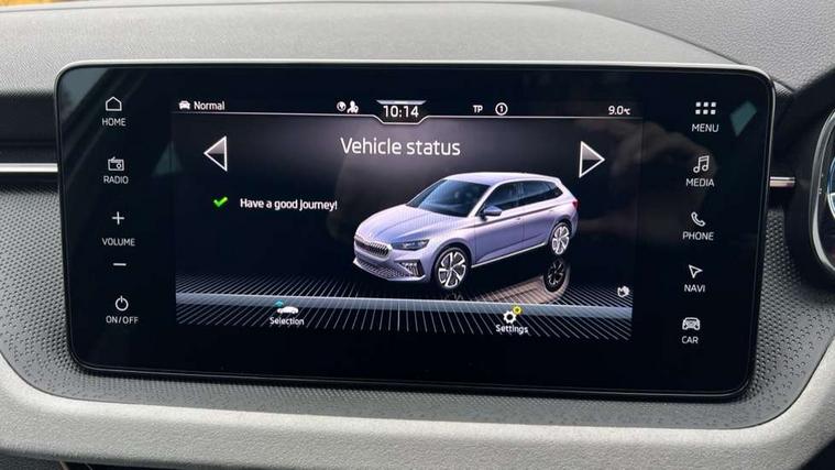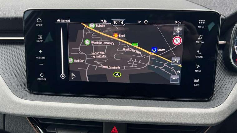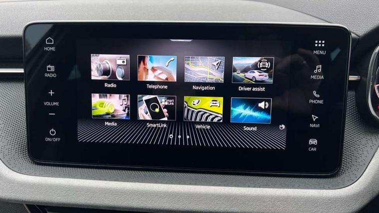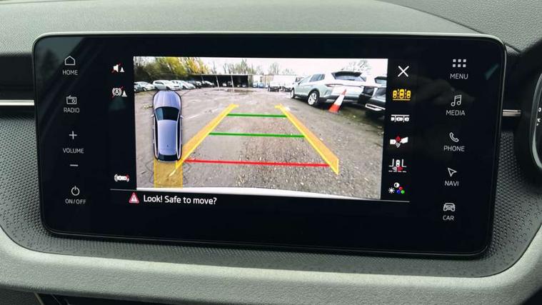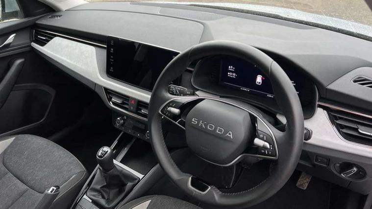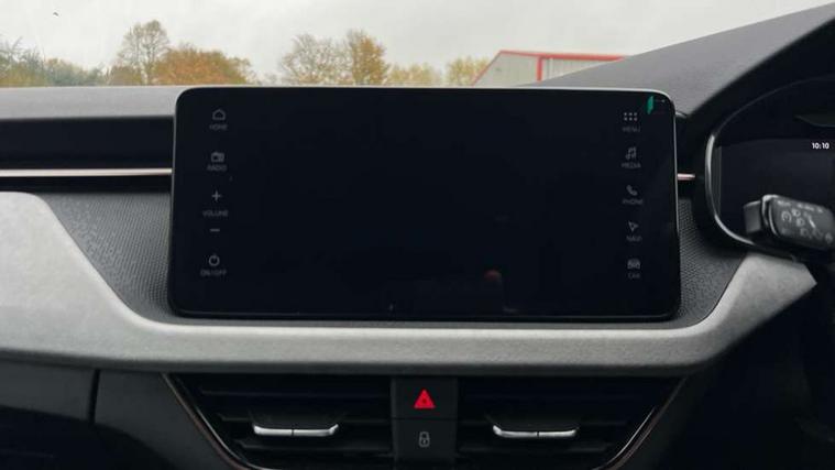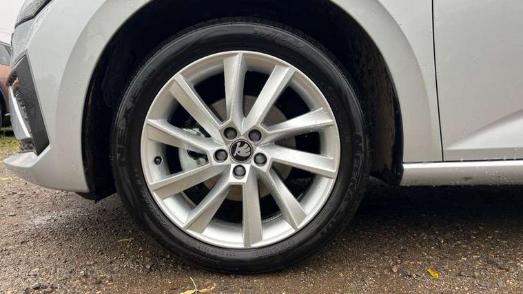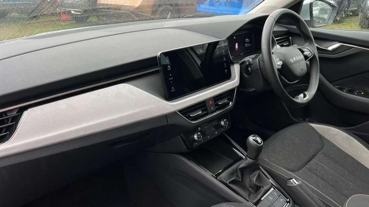Advanced driver attention and drowsiness monitor, Bluetooth, e-Call (emergency call), Front assist system, PAS, Rear parking sensors, Rear view camera, Speed limiter, Tailgate, Traffic sign recognition, Virtual Cockpit - 10.25" digital display, Voice control system, Wireless smartlink, 4 USB C ports, 8 Speakers, 9.2" Skoda navigation display, DAB radio, Auto dimming rear view mirror, Automatic headlamp activation with Coming home and Leaving home feature, Automatic high/low beam, Automatic intermittent wipers, Body colour bumpers, Body colour door mirrors and handles, Chrome moulding around grille, Chrome window frames, Front and rear electric windows, Heated rear window, LED 3rd brake light, LED brake lights, LED daytime running lights, LED front turning lights, LED high beam, LED low beam, Light sensors, Privacy glass, Rear LED fog light, Rear side wing doors, Rear wiper, Tinted windows, Unique dark chrome design logo on alloy wheels, 12V socket in luggage compartment, 3 seat bench in 2nd row, Ambient lighting in white/red, Black / Copper armrest stitching, Cargo elements, Chrome inner door handles, Copper hotstamping, Door inserts in accent black, Driver and passenger sun visors with vanity mirror, Dual zone climate control, Front and rear roof lights, Front centre armrest, Front head restraints, Glasses storage in roof liner, Height adjustable driver seat, Height adjustable passenger seat, Ice scraper, Illuminated glove compartment, Inner circulation control with pollen filter, ISOFIX for front passenger seat, Isofix preparation for back seats, Leather gearknob and handbrake lever, Lodge cloth upholstery, Luggage net under rear parcel shelf, Manual lumbar support for front seats, Net package and top tether hooks in boot space, Pearl grey ceiling, Pocket on the back of both front seats, incl. mobile phone pockets, Rear centre armrest, Single front passenger seat, Skoda lettering on steering wheel, Textile floor mats, Third rear headrest, Ticket holder, Top tether for front passenger seat, Umbrella in driver's door, Convenience pack without rear camera - Scala, 3x3 point rear seatbelts, ABS, Child locks, Curtain airbags and front side airbags, Disc brakes, Driver and front passenger airbags, ESP, Hill hold control, Manual leather parking brake, One tone horn, Passenger airbag switch off function, Seatbelt reminder for driver and front passenger, Tyre pressure monitoring system, Anti theft alarm system with interior monitoring, backup horn and towing protection, Anti-theft wheel bolts, Remote central locking with 2 remote folding keys, SAFE function for remote central locking, Decorative inserts,