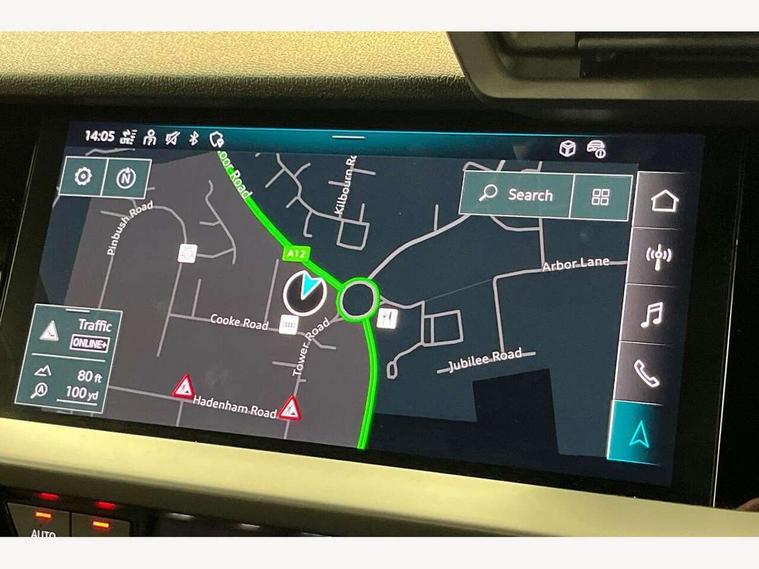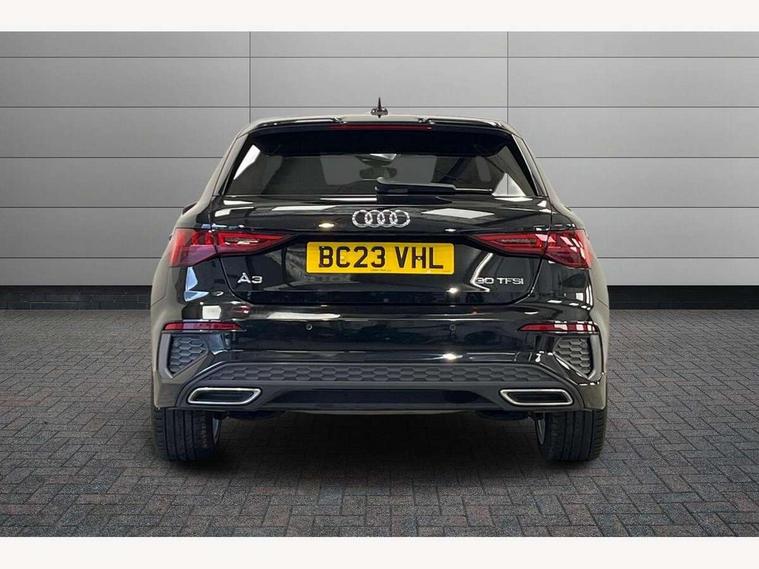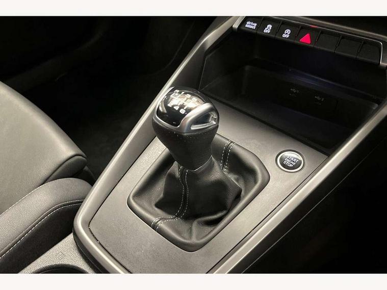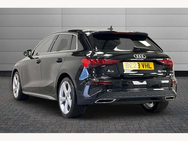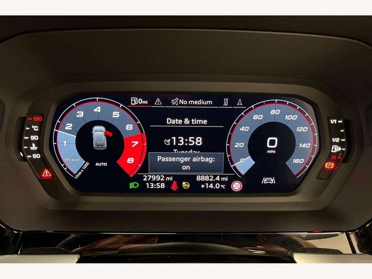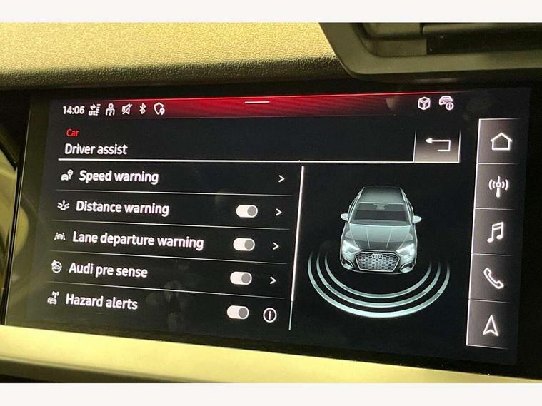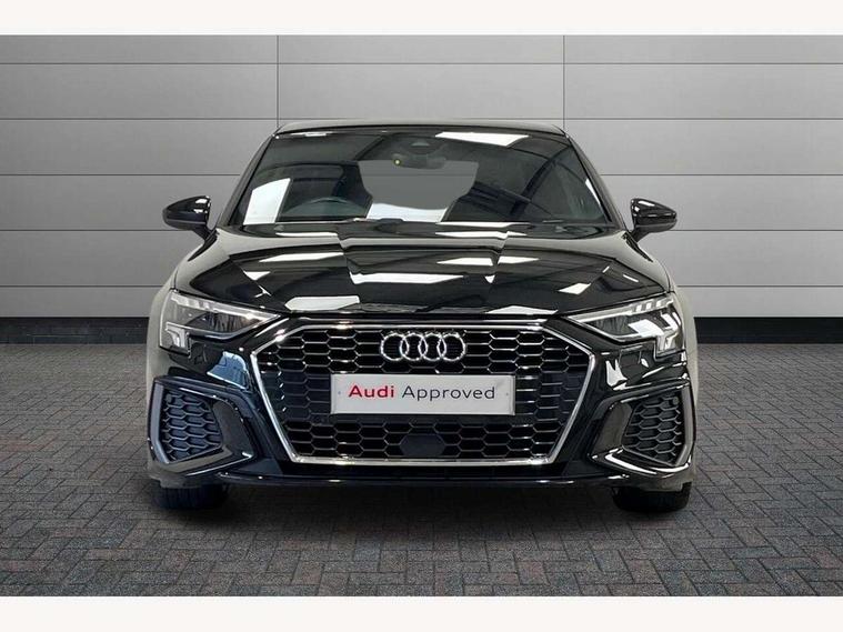 Audi drive select (Auto, Comfort, Dynamic and Individual), Audi smartphone interface, Audi Virtual Cockpit - 10.25" digital and colour instrument cluster, Automatic start/stop system with recuperation, Bluetooth interface, Camera based traffic sign recognition, Collision avoidance assistant, Cruise control, e-Call (emergency call), Electromechanical power speed sensitive steering, Lane departure warning system, MMI Navigation Plus with high resolution 10.1" colour touch screen display, Rear parking sensors, Service indicator, Trip computer, Voice control system with natural language interaction, Sports suspension, 2xUSB-C connection with data and charging functions, 6 passive loudspeakers, DAB Digital radio, 3rd brake light, Acoustic glass windscreen, Aluminium window trim, Auto dimming frameless rear view mirror, Body colour exterior mirrors, Electrically adjustable/heated/folding/auto dimming door mirrors with integrated LED indications + kerb view function for passenger side, Front electric windows, Illuminated door sills with aluminium inserts at the front with S logo, LED daytime running lights, LED headlights with LED rear lights and dynamic rear indicators, Light and rain sensors, Privacy glass - dark tinted rear window, rear door and side windows, Rear electric windows, Rear side air outlets in grained matt black, Rear side wing doors, Rear wiper, S line bumpers, S roof spoiler, 12V socket and storage compartment in front centre console, 3 seat bench in 2nd row, 3 spoke leather multifunction steering wheel, 4 way electrically adjustable lumbar support for driver and front passenger, 60/40 split folding rear seat bench, Black cloth headlining, Dual zone electronic climate control, Front and rear centre armrest in artificial leather, Front and rear headrests, Front/rear floor mats, Height and reach adjustable steering wheel, Interior lighting - glove compartment light and right hand side, Luggage compartment floor covering, Manual boot compartment lid, Manually adjustable front seats, Seat side bolsters, Single front passenger seat, Stainless steel pedals and front footrest in black, Twin leather upholstery with front sports seats S embossed logo, Aluminium interior elements pack - A3 Sportback, LED interior lighting pack - A3 Sportback, S line styling pack - A3 Sportback, 3x3 point rear seat belts, Driver and front passenger airbag with passenger airbag deactivation, Electronic Stabilisation Control (ESC) including ABS, ASR and EDL, First aid kit with warning triangle and 2 safety vests, Front side airbags with head airbags and interaction airbag, Pre-sense front with pedestrian and cyclist detection, Seatbelt monitoring, Tyre pressure loss indicator, Anti theft alarm, Anti-theft wheel bolts, Electronically operated child locks, Immobiliser, Remote control central locking, Dark spectrum aluminium inlays, accent surfaces in the dashboard and centre console in platinum grey silk effect paint finish,