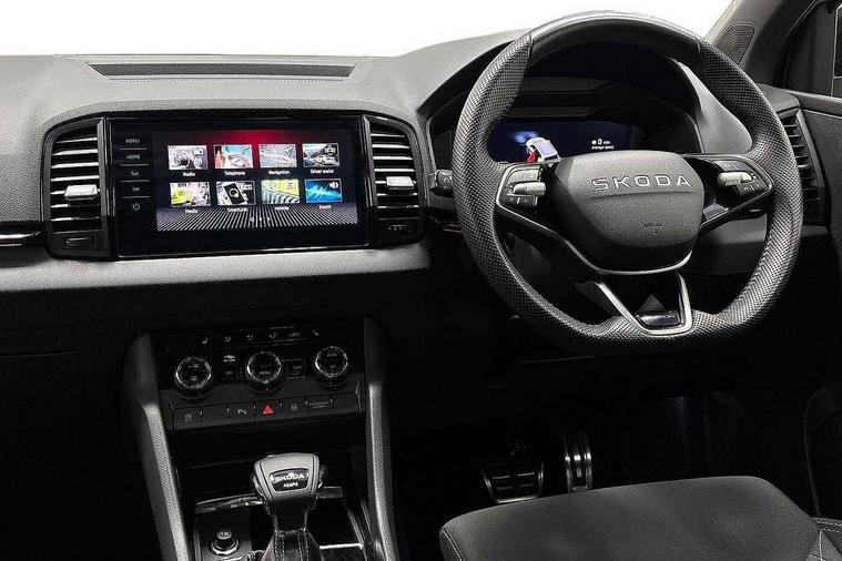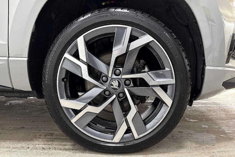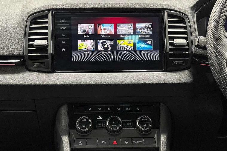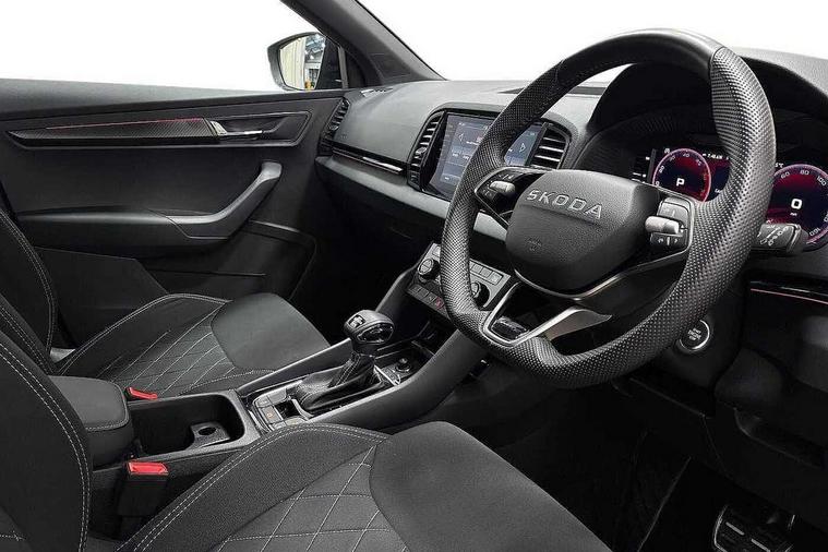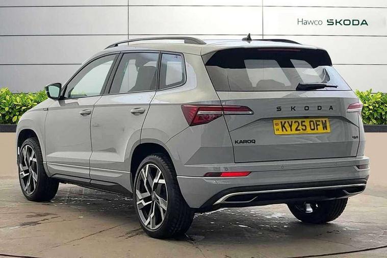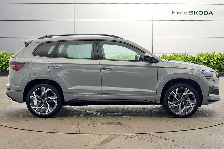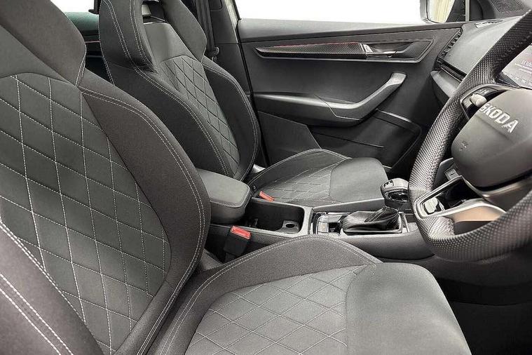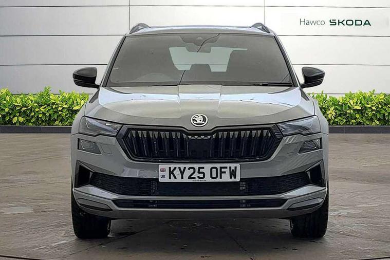 8" Digital display, Advanced driver attention and drowsiness monitor, Emergency services call system, Outside temperature gauge, Sensor for driver assistance systems, Service interval indicator, SmartLink wireless for Apple and wired for Android, Start/stop system with regenerative braking, USB C Port x 2 in front centre console, Virtual Cockpit - 10.25" digital display, Virtual pedal with electrically operated boot door, Wireless smartphone charging, Diesel particulate filter, DAB radio with Bluetooth, USB connection, Acoustic glass, Aero front windscreen wipers with intermittent function, Auto dimming rear view mirror with light and rain sensors, Black door mirrors, Black electric window control buttons, Black radiator grille, Black roof rails, Body colour door handles, Electric front and rear windows with child proof lock, Front door steps with SportLine logo, Heated rear windscreen, LED daytime running lights, LED rear lights with high functionality welcome effect and dynamic indicators, Light assistant (coming/leaving home/tunnel light), Panoramic sliding sunroof, Plastic scuff plates in door apertures, Privacy glass, Protective door side sills in body colour, Rear diffuser, Rear side wing doors, Rear spoiler, Rear window wiper with washer system and intermittent control, Safety reflectors on front doors, Skoda lettering on tailgate in black, Sportline badge on front fender, Sportline decorative inserts with badging, Sports front and rear bumpers, Third brake light, 1.5 litre bottle holders in driver and front passenger door panels, 12V socket in boot, 12v socket in front centre armrest with storage compartment and rear air vents, 2 x Tablet holder, 3 rear height adjustable headrests, 3 seat bench in 2nd row, 3 spoke sports leather heated multifunction steering wheel with DSG paddles, 4 foldable roof handles with rear coat hooks, Black floor carpet, Black roof headlining, Chrome inner door handles, Foldable hooks in the boot, Front head restraints, Height adjustable front three point seats belts with tensioners, Height/reach adjust steering wheel, Ice scraper, Illuminated glovebox, Illuminated luggage compartment, Isofix child seat preparation for front passenger seat, Isofix child seat preparation outer rear, Manual lumbar support for front seats, Pen holder, Pollen filter, Rear boot cover, Rear reading lights, Rear seats fixed folding and divided 60:40, Rubbish bin door, Safety vest holder, Single front passenger seat, Storage box in upper central dashboard closed, Sunvisors with illuminated vanity mirrors, Textile floor mats, Ticket holder, Titan black interior ceiling, Umbrella under passenger seat, Under passenger seat storage compartment, LED Interior lighting pack with Skoda welcome logo - Karoq, Light Pack - Karoq, Non Smokers pack, Automatic door unlocking in case of crash, Automatic fuel cut off in case of crash, Driver airbag, Electronic parking brake with auto hold function, Emergency rear braking signal, ESC (incl. ABS+MSR+ASR+EDS+HBA+DSR+RBS+MKB), Front side airbags, Head airbags, Hill hold control, Knee airbags, Passenger airbag with switch-off function, Pedestrian monitor, Seatbelt reminder signalisation and pretensioner for all seats, Three point seatbelts rear, Two tone horn, Tyre pressure monitor, Alarm with interior monitoring, back up horn and tilt sensor with safe function, Electronic engine immobiliser, Keyless entry and start/stop, Remote central locking with 2 remote folding keys, Black air vent surround, Black centre console, carbon door decor, Satin black dashboard, Satin black door trim, 19" Sagittarius anthracite alloy wheels, Anti-theft wheel bolts protection, Breakdown and tool kit,
