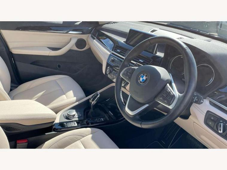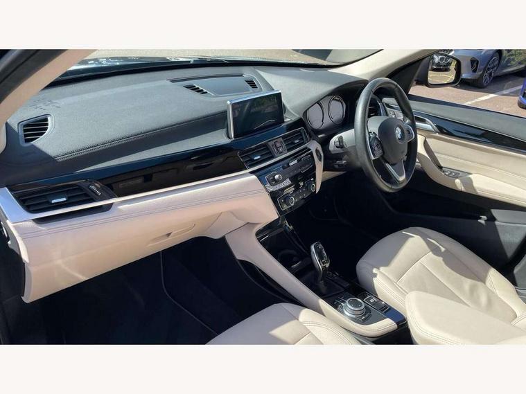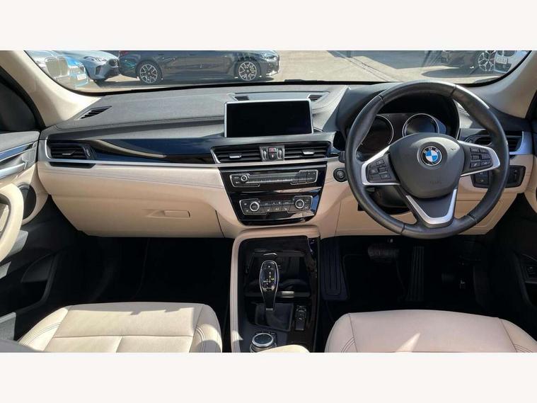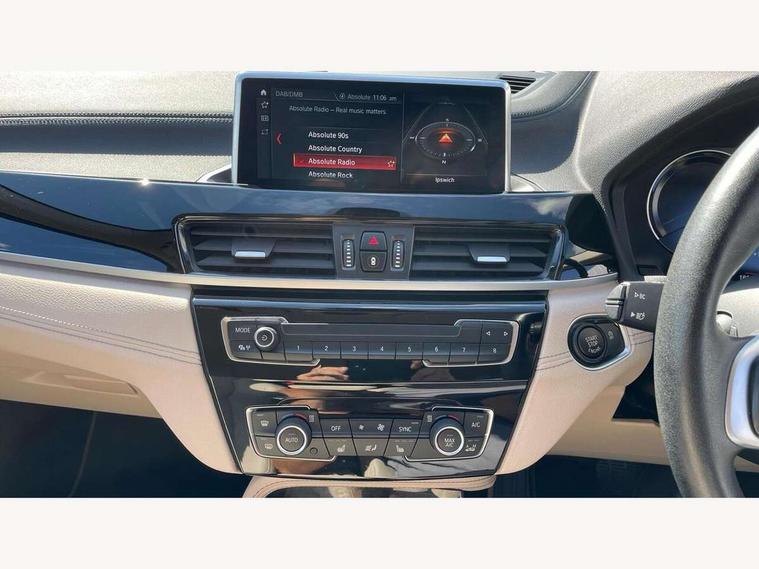 Ambient temperature display, Apple CarPlay, Arrow pointers, north up, direction of travel and perspective map displays, Attentiveness assist, Automatic tailgate opening, BMW ConnectedDrive, BMW Online services, BMW remote services, BMW Teleservices, Brake pad wear indicator in front and rear, Characteristic map controlled oil pump system, Front axle single joint with specific axle kinematics to minimise drive influences on steering + provide increased rigidity agile driving behaviour, Front/rear park distance control (PDC), Instrument cluster with Black optic display featuring superimposed dials and 5.7" colour display, Instrument cluster with speedometer with miles per hour read out, tachometer and fuel gauge, Integrated hard drive with map data updates via USB interface, Lights on warning by audio warning signal when ignition is switched off, On board computer, Operation by iDrive with direct selection buttons and 8 programmable buttons, Optimum shift indicator, Outside temperature gauge, Park assist system, Personal Profile - automatic lock when driving away selectable, Real time traffic information, Rigidly mounted rear subframe - Multi link construction with separate spring / damper configuration and excellent driving characteristics, Service interval indicator, Servotronic PAS, Tyre puncture warning system, 12V compressor with integrated sealant injection bottle and hose, Aluminium lightweight construction including crankcase, Anti-roll bars, Balancer shaft, Double VANOS, Drive performance control with ECO PRO comfort + sport mode, High precision injection, Performance Control, Seven speed dual clutch automatic transmission (DCT), Standard suspension, Stop/start function, Turbocharger with Valvetronic, Twin tube gas filled shock absorbers with degressive characteristic curve, DAB Digital radio, Adjustable headlights, Aero curtain, Automatically dimming rear view mirror, BMW Icon design LED daytime driving lights, Body colour bumpers, Body colour door handles, Body colour door mirrors, Direction indicator side lights integrated exterior mirrors, Dynamic brake lights, Electric windows - front and rear, with open/close fingertip control, anti-trap facility and comfort closing, Electrically adjustable door mirrors with aspheric on driver side, convex on passenger side with integrated indicators, Exclusive front door sill finishers with BMW designation, Exterior mirrors - electrically folding with anti-dazzle, Follow me home headlights, Front air guide finished in black silver, Front air inlets in matt black with silver finisher matt, Front and rear bumper system, Front bumper underbody protection in silver matt, Green tinted heat protection glazing glass, Headlight beam throw control, Heated door mirrors, Heated windscreen washer jets, High level third brake light, Kidney grille with 14 chrome matt aluminium fronted with black matt sides vertical bars, LED direction indicator lights in headlight eyebrow, LED front fog lights, Lightweight engineering, Model designation, Rain sensor including auto headlights activation, Rear bumper underbody protection in black silver with silver matt insert, Rear fog lights, Rear window aerial, Rear window wash/wipe, Reversing light in rear light cluster, Roof mouldings in matt black, Shark fin antenna, Sill cover matt black with matt silver insert, Single chrome exhaust tailpipe, Two eye face design on light, Visible VIN plate, Welcome lighting, 12v power point in centre console, 2 cup holders in front, 3 rear headrests, 3 spoke sport leather steering wheel, 40:20:40 split folding rear bench seat, Black door sill finishers with BMW designation, Boot light, Centre armrest in 20 degree part rear seat backrest, Child seat ISOFIX attachment for two outer rear seats and front passenger seat with anchorage points, Conditioned based service, Dakota leather upholstery with perforation and contrast stitching, Driver and front passenger heated seats, Driver/front passenger seat backrest back with luggage net, Driver/passenger sunvisors with ticket holders, Dual zone automatic air conditioning, Four grab handles integrated in roof linings, Front and rear side armrests integrated into door trim, Front centre armrest/sliding cover, Front centre interior light over interior mirror and rear centre automatic interior light when door is opened/ignition switched off or via remote key, Front/rear adjustable head restraints, Illuminated glovebox, Leather gearknob/gaiter/handbrake grip, Luggage area underfloor compartment, Luggage compartment access via recessed handle below tailgate, Luggage compartment lighting, Luggage compartment loading edge with stainless steel insert, Manually adjustment steering wheel column, Multifunction steering wheel, Rear coded belt buckles, Standing free front adjustable armrest and fixed in different positions, Steering wheel gearshift paddles, Velour floor carpets, Extended lights pack - X1, Extended storage package - X1, ABS/EBD, Audio/visual collision warning system, Automatic Stability Control (ASC), Battery safety cut-off, BMW emergency call, Brake drying, Brake energy regeneration, Braking readiness, Cornering brake control (CBC), Crash Sensor - activates hazard/interior lighting + unlocks doors, Driver/Front Passenger airbags, Driver/front passenger side airbags, Dynamic brake control, Dynamic stability control + (DSC+), Dynamic Traction Control - DTC, Electronic differential lock control (EDLC), Electronic parking brake, Front and rear head airbags, Front passenger airbag deactivation, Front seatbelt force limiters, Front ventilated disc brakes, Hill start assist, Pyrotechnically pre-tensioned front seatbelts, Rear disc brakes, Rear door child safety locks, Seatbelt security check for driver and front passenger, Side impact protection, Three point seat belts in all seats, Twin horns, Tyre pressure monitor, Warning triangle and first aid kit, Central locking switch for all doors, fuel filler cap and luggage compartment, Check control 