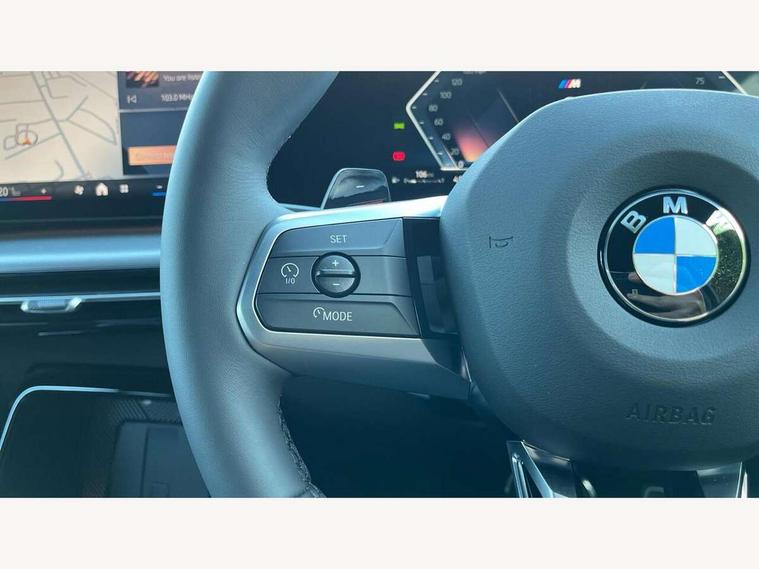 4G LTE connectivity, Attentiveness assist, Automatic start/stop function, Bluetooth / Wi-Fi interface with hands free system, BMW ConnectedDrive store and BMW Remote softwre upgrade, BMW Intelligent Personal Assistant, BMW Live Cockpit Plus - Widescreen display with 10.25" instrument cluster and 10.7" CID display, BMW Maps, BMW Operating System 9 with variable, confirgurable widgets, BMW Teleservices, Brake pad wear indicator, Condition based service, Connected drive services, Drive off assistant, Electrically opening/closing tailgate with opening/closing with remote control and contactless opening and closing, Gear display in instrument cluster including recommended gear, iDrive controller, Language version English, My modes (Personal / Efficient / Sport), Parking assistant with reversing assistant, active PDC, lateral parking aid and rear view camera, Personal Profile, Servotronic PAS, Smartphone integration for Apple CarPlay/Android Auto, Speed limiter, Touch operation on control display, Dynamic stability control, Larger Fuel Tank, Performance Control, Petrol Particulate Filter, Steptronic transmission with double clutch and gear shift paddles, BMW Personal eSim, DAB Digital radio, Tuner with diversity reception and RDS, AM radio and FM radio, B-pillar and front/rear door trim panels and exterior mirrors in matt black with mirror cap in vehicle colour, BMW radiator grille with mesh grid in black high gloss, radiator grille frame in pearl chrome, Dynamic brake lights, Electric adjustable heated door mirrors, Electric windows - front and rear, with open/close fingertip control, anti-trap facility and comfort closing, Folding door handles integrated flush with surface, Front bumper cover with air inlet trims for air curtains in matt black, Front door exit lights, Heated rear window, High Gloss Black rear spoiler, Home light, Invisible exhaust tailpipe, LED 3rd brake light integrated in rear window frame, LED daytime running lights, LED number plate light, Matt black roof strips, Rain sensor including auto headlights activation, Rear side wing doors, Rear wiper, Side sill trim panel in black matt grained, Trailer stabilisation logic, Welcome lighting, Window recess finisher strips and side window frames in matt black, Windscreen washer nozzle for rear view camera, Windscreen wipers front with heated washer nozzles, 12V - Power sockets with front centre console and luggage compartment, 12V socket in right side trim panel, 2 bag hooks in luggage compartment, 2 cup holders in front centre console, 2 front reading lights, 2 x USB Type C ports for charging and data transmission (front centre console) and 1 USB Type C ports for charging (rear centre console), 3 rear headrests, 3 seat bench in 2nd row, 3 upper retaining strap clips integrated into rear panels of seat backrests, 40:20:40 split folding rear seats, Ambient interior lighting, Anthracite front and rear floor mats, Bottle trays in all doors, Child seat ISOFIX attachment for two outer rear seats and front passenger seat with anchorage points, Driver and front passenger heated seats, Dual zone automatic air conditioning, Flat air vents on instrument panel in high gloss black, adjustable seats with elements in pearl chrome, Footrest and pedals in stainless steel look, Front and rear door pockets, Front and rear footwell lights, Front armrest with integrated control panel, Front centre console storage compartment, Front/rear adjustable head restraints, Glove compartment, Interior door handle recess light on all doors, Light on right in luggage compartment, M headliner Anthracite-A pillar trim panels, headliner in anthracite & B, C, D pillar upper trim panels, sun visors, grab handles, microphone cover in black, M leather steering wheel, Map pockets on the seats (version depending on equipment), Middle centre console storage compartment, One piece parcel shelf opens together with tailgate and removable, Rear armrest in door trim panel, Rear coat hooks, Selector lever with toggle operation, Single front passenger seat, Storage compartment lighting in centre console and storage tray in centre stack, Storage compartment net in left side trim panel, Storage compartment with folding cover under centre console armrest cushion, Storage tray in right side trim panel, Sun visors with illuminated vanity mirrors, Tilt adjustment incl. cargo function of 2nd row of seats, ABS, Automatic hold function, BMW emergency call, Braking readiness, Child lock for rear electric windows, Cornering brake control (CBC), Crash Sensor - activates hazard/interior lighting + unlocks doors, Driver/Front Passenger airbags, Driver/front passenger side airbags, Dry braking, Dynamic brake control, Electromechanical parking brake, Energy recovery system, First aid kit, Front and rear brake discs, Front centre airbag between driver and front passenger seats, Front passenger airbag deactivation, Head airbags for all 4 outer seats, Integrated brake system, Locking of doors after driving off, PC iBrake PostCrash approach control warning with light braking function, Rear door child safety locks, Three point seat belts in all seats, Tyre pressure monitor, Warning triangle, Alarm system with tilt sensor, monitoring doors, bonnet interior and tailgate, Closing system with central locking including 2 vehicle keys with integrated emergency key, Locking wheel bolts, Front centre console trim in high gloss black, Luxury instrument panel, Tyre repair kit plus,