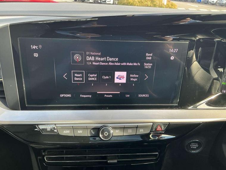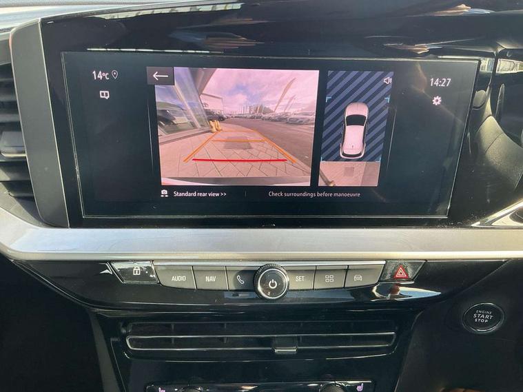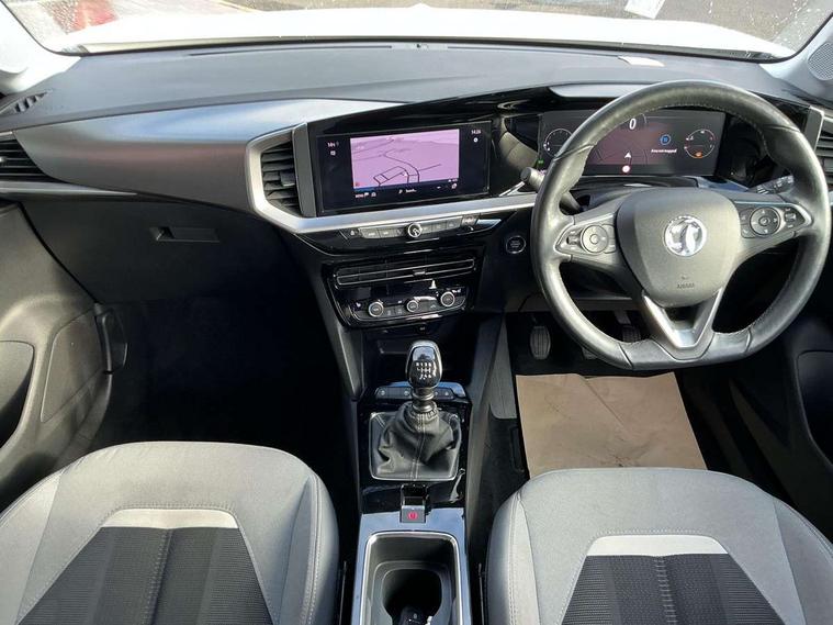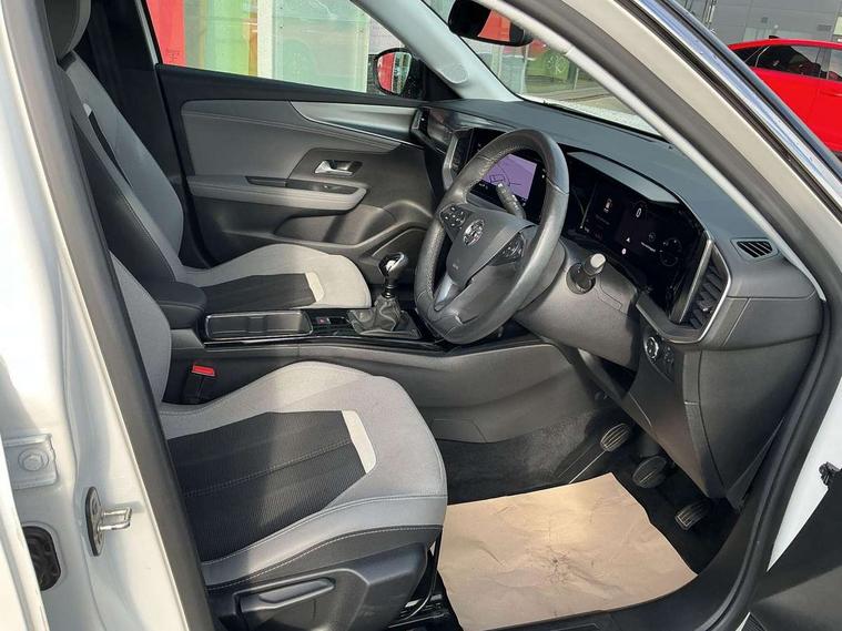 Automatic adaptive cruise control, Driver drowsiness alert system, Engine start/stop button, Front and rear parking distance sensors, Front camera system, Lane keep assist system (LAS) with Lane departure warning system (LDWS), Lights on audible warning, Multi function trip computer, Panoramic rear view camera, Power assisted speed sensitive steering, Side blind spot alert and flank guard, Smartphone integration compatible with Apple CarPlay and Android Auto, Speed sign recognition, Start/stop system, Vauxhall connect with e-Call, 6 speed manual transmission, Chassis drive line front wheel drive, Electronic fuel system, Front chassis equipment, Rear chassis equipment, Standard chassis suspension system ride handling, Bluetooth A2DP audio streaming, Flexible Roof Mounted Radio Aerial, Front USB connection, Mobile phone portal - bluetooth connect, vehicle microphone, handsfree calls, SMS read out and reply, phone book access, Multimedia Navi pro infotainment with satellite nav, 10" colour touchscreen, 6 speakers, DAB radio, 12" instrument panel, Apple carplay/Android auto, Steering wheel mounted controls, Two rear USB sockets, 3rd brake light, Adaptive brake lights, Automatic lighting control with tunnel detection, Automatically dimming anti dazzle rear view mirror, Black door mirror housings, Black rear spoiler, Body colour door handles, Body colour front and rear bumpers, Chrome effect skid plates, Chrome effect upper window moulding, Electrically adjustable, heated and folding door mirrors, Electrically operated front and rear windows with safety auto reverse and one touch up/down facility, Hazard warning lights, Heated rear window+rear wash/wipe, High beam assist, LED daytime running lights, LED front fog lamps, LED side repeat indicators, LED tail lights, Manual headlamp level control, Rear foglight, Rear side wing doors, Rear wiper, Reversing light, Solar heat absorbing windscreen and windows, Two speed rain-sensitive windscreen wipers with variable intermittent wipe, Windscreen and side window demist vents, 12V Accessory socket, 3 seat bench in 2nd row, 3 spoke flat bottomed leather steering wheel with satin chrome bezel, 4 speed fan with illuminated controls, 6 way manual adjustable driver fore/aft, up/down with reclining seatback, 6 way manual adjustable front passenger fore/aft, up/down with reclining seatback, Air recirculation system, Cabin particulate filter - removes dust, airborne particles and pollen, Centre console with two cup holders at front and one in rear, Chrome effect interior door handles, Door pockets with two litre capacity, Driver and passenger seat pocket, Driver and passenger sun visors with vanity mirror, Electronic climate control (ECC), Fabric/leather upholstery with jet black fabric side bolsters, Four adjustable facia vents, Four load restraint lashing eyes, Front centre armrest with storage, Front map reading lights, Front seat back storage pockets, Fully carpeted load area, Heated front seats, Heated steering wheel, Height adjustable front/rear head restraints, Illuminated load area, Interior courtesy light, Interior tailgate handle, Luggage compartment cover, Luggage compartment lighting, Reach + rake adjustable steering column, Single front passenger seat, Twin gas assisted tailgate struts, 2x Isofix child seat fitting on outer rear seats, 3x3 point rear seat belts, Anti-lock braking system (ABS), Automatic emergency city braking, Child proof locks on rear doors, Cornering brake control, Deactivation switch for front passenger front and side impact airbags, Drag torque control, Driver and front passenger airbags, front seat side impact airbags, full size curtain airbags, Electronic brake force distribution, Electronic Stability Programme (ESP), Emergency brake assist, Forward collision alert at all speed, Hill start assist, Inertia reel lap and diagonal seatbelts for all seats, Seatbelt unfastened audible warning and warning light, Straight line stability control, Traction control, Tyre pressure monitoring system, Electronically protected audio equipment, Freewheeling door locks, Immobiliser, Key left in ignition audible warning, Keyless entry and start, Locking wheel nuts, Remote control ultrasonic security alarm system, Visible vehicle identification number, Atlantis black trim inserts of front doors, Black facia with silver trim insert, Instrument panel bar in Light Gravel, 17" bi colour alloy wheels,