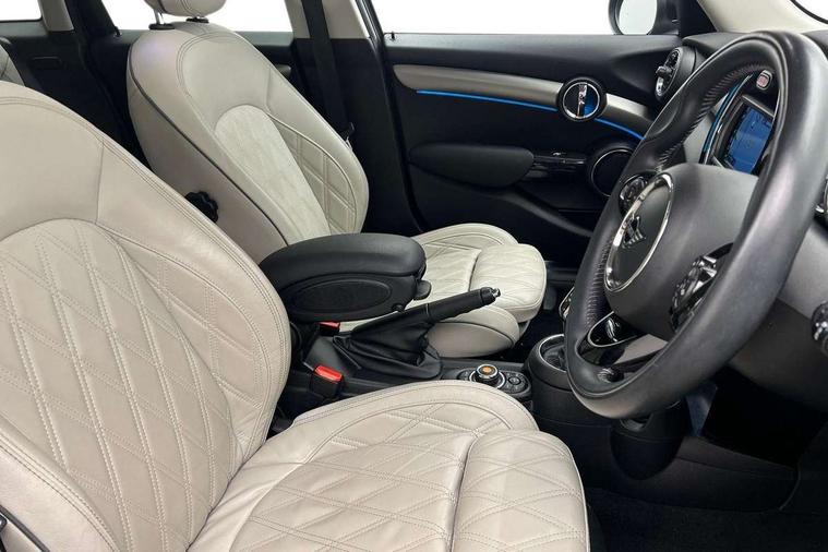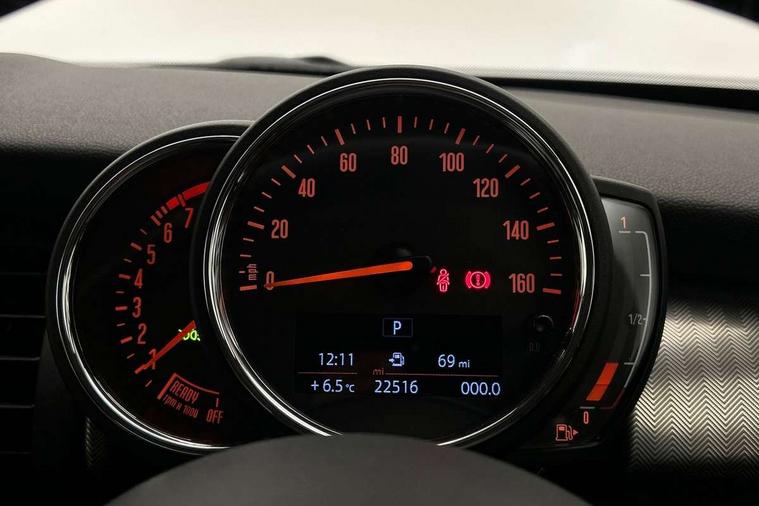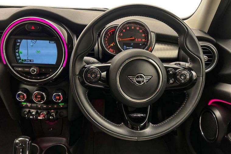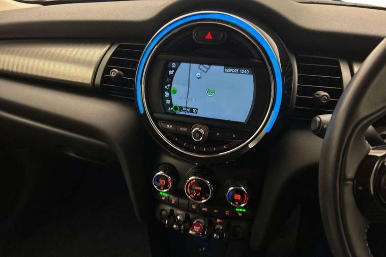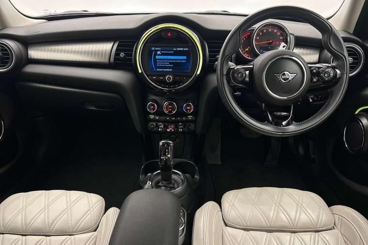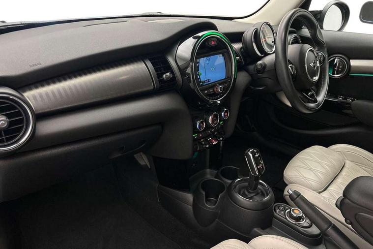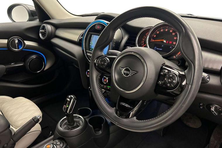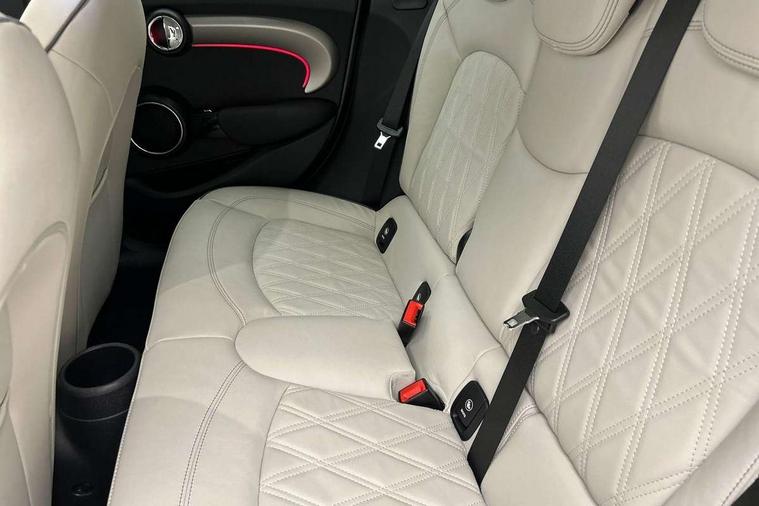 Automatic start/stop function with brake energy recuperation, Compatible mobile phone bluetooth with audio streaming, Electro-mechanical speed dependant steering assistance, Instrument cluster, Mini E-call, MINI TeleServices, On board computer, Service interval indicator, Double Vanos system, Fully variable valve control, High precision injection, Steptronic transmission with double clutch, 6.5" touchscreen with LED ring, FM tuner and DAB digital radio, Automatic headlight activation switch, Body colour fuel filler cap, Chrome border high gloss black slats radiator grille, Chrome line exterior, Dynamic brake lights, Electric front+rear windows, Heated rear window, Heated windscreen washer jets, LED headlight with closed ring and daytime driving lights, Left exhaust tailpipe with chrome finisher, Metal door sill strips with MINI imprint, Model logo Cooper on right of tailgate, Radiator grille bars, tailgate handle, lower front grille grating, rear central fog light in chrome, Rain sensor window wipers, Rear fog lights, Rear LED lights with union jack design, Rear window wiper, Side scuttle panel with integrated indicator, Sun/heat protection glass, White indicator lenses, 12V Accessory socket in centre console, 4 lashing eyes in luggage compartment, 60/40 split folding rear seat, Air vents, gear lever base, speakers in doors, door handles in chrome, Chrome interior highlights, Cupholders, Front and rear head restraints, Front and rear isofix with front passenger airbag deactivation, Glove compartment, Height and length steering column adjustment, Interior lighting with 12 basic colours selectable via toggle switch in roof, Leather gearshift lever and handbrake gaiters, LED reading lights, vanity mirror lights, front foot well light and spotlight on front seats, Manual air conditioning, Mechanical seat adjustment, driver seat height adjust, forward/back and front seats backrest, Mini logo projection on floor from drivers exterior mirror, MINI Yours leather steering wheel with silver contrasting stitching with MINI Yours badge, Multifunction steering wheel, Storage compartments in doors, Sunvisors with vanity mirrors, 3 point seatbelts on all five seats, 6 Airbags - front, side, head and seat belt tensioners, Anti-lock braking system (ABS), DSC - Dynamic Stability Control, Front and rear disc brakes, Hill start assist, Single tone fanfare horn, Tyre pressure monitoring system, Alarm system with tilt sensor, monitoring doors, bonnet interior and tailgate, Electronic vehicle immobiliser, Start/stop toggle with keyless go, Chrome line interior, Tool kit,