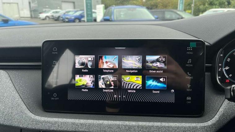 Advanced driver attention and drowsiness monitor, Bluetooth system, E-call, Front assist system, PAS, Rear parking sensors, Rear view camera, Service indicator, Speed limiter, Traffic sign recognition, Virtual cockpit with 10.25" display, Wireless smartlink, 4 USB C ports, 8 Speakers, 9.2" Skoda navigation display, DAB Digital radio, Auto dimming rear view mirror, Automatic headlight control with coming home and leaving home feature, Black roof rails, Body colour bumpers, Body colour door mirrors and handles, Chrome grille surround, Front and rear electric windows, Full LED headlights, Heated rear window, LED brake lights, LED daytime running lights, LED front turning lights, LED high beam, LED low beam, LED third brake light, Rear LED fog light, Rear side wing doors, Rear wiper, Ticket holder inside windscreen, 12V socket in luggage compartment, 3 seat bench in 2nd row, Black hotstamping, Cargo elements, Chrome inner door handles, Driver and passenger sun visors with vanity mirror, Dual zone climate control, Front and rear roof lights, Front centre armrest, Front head restraints, Glove compartment with illumination, Height adjustable driver seat, Height adjustable front passenger seat, Ice scraper, Inner circulation control with pollen filter, ISOFIX on front passenger seat, Isofix preparation for back seats, Krepp recycled decor inserts, Leather gearknob and handbrake lever, Loft cloth upholstery, Manual lumbar support for front seats, Net package and top tether hooks in boot space, Net under rear shelf, Overhead glasses storage compartment, Pocket on the back of both front seats include mobile phone pockets, Rake/reach adjustable steering wheel, Reading lights, Satin black door inserts, Single front passenger seat, Textile floor mats, Third rear headrest, Top tether for front passenger seat, Umbrella in driver's door, 3x3 point rear seatbelts, Airbags - driver and front passenger, Disc brakes, ESP, Extended and predictive pedestrian/cyclist protection, Front passenger airbag deactivation switch, Front side airbags with curtain airbags, Hill hold control, Manual leather parking brake, Manual rear child locks, One tone horn, Seatbelt reminder for driver an co-driver, Traction control, Tyre pressure monitor, Anti-theft alarm system with interior monitoring, backup horn, towing protection and remote central locking with SAFE system, Anti-theft wheel bolts, Electronic engine immobilizer,