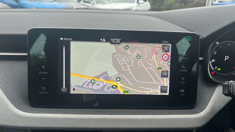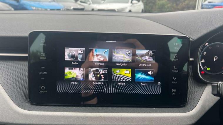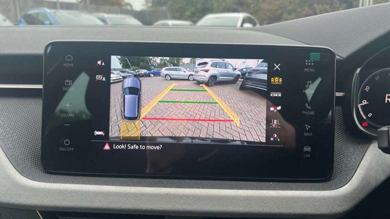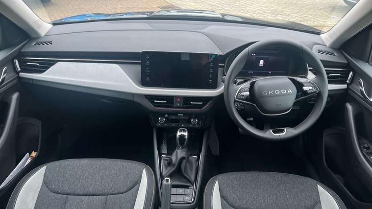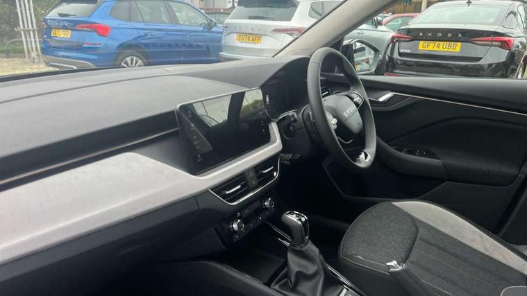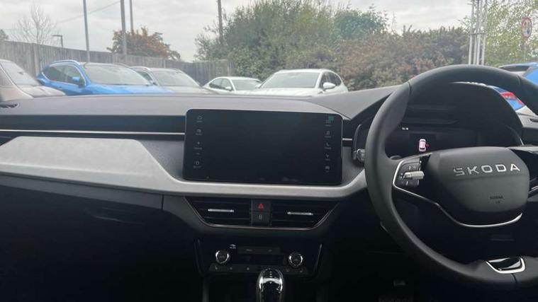 Advanced driver attention and drowsiness monitor, Bluetooth system, E-call, Front assist system, PAS, Rear parking sensors, Rear view camera, Service indicator, Speed limiter, Traffic sign recognition, Virtual cockpit with 10.25" display, Voice control system, Wireless smartlink, 4 USB C ports, 8 Speakers, 9.2" Skoda navigation display, DAB Digital radio, Auto dimming rear view mirror, Automatic headlight control with coming home and leaving home feature, Body colour bumpers, Body colour door mirrors and handles, Chrome grille surround, Chrome roof rails with chrome window surround, Front and rear electric windows, Heated rear window, LED daytime running lights, LED high beam, LED low beam, LED third brake light, Light sensors, Privacy glass, Rear side wing doors, Rear wiper, Ticket holder inside windscreen, 12V socket in luggage compartment, 3 seat bench in 2nd row, Accent black door inserts, Ambient lighting in white/red, Cargo elements, Chrome inner door handles, Copper hotstamping, Driver and passenger sun visors with vanity mirror, Dual zone climate control, Front and rear roof lights, Front centre armrest, Front head restraints, Glove compartment with illumination, Height adjustable driver seat, Height adjustable front passenger seat, Ice scraper, Inner circulation control with pollen filter, ISOFIX on front passenger seat, Isofix preparation for back seats, Leather gearknob and handbrake lever, Lodge cloth upholstery, Manual lumbar support for front seats, Net package and top tether hooks in boot space, Net under rear shelf, Overhead glasses storage compartment, Pocket on the back of both front seats include mobile phone pockets, Rake/reach adjustable steering wheel, Reading lights, Rear centre armrests, Single front passenger seat, Suedia grey decor inserts, Textile floor mats, Third rear headrest, Top tether for front passenger seat, Umbrella in driver's door, Convenience pack - Kamiq, 3x3 point rear seatbelts, Airbags - driver and front passenger, Disc brakes, ESP, Extended and predictive pedestrian/cyclist protection, Front passenger airbag deactivation switch, Front side airbags with curtain airbags, Hill hold control, Manual leather parking brake, Manual rear child locks, One tone horn, Seatbelt reminder for driver an co-driver, Traction control, Tyre pressure monitor, Anti-theft alarm system with interior monitoring, backup horn, towing protection and remote central locking with SAFE system, Anti-theft wheel bolts, Electronic engine immobilizer,