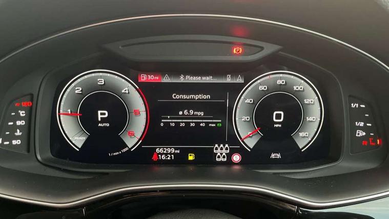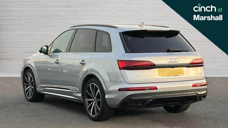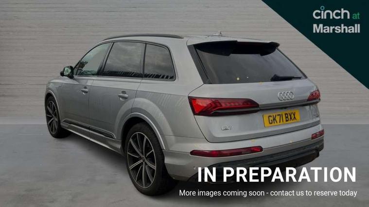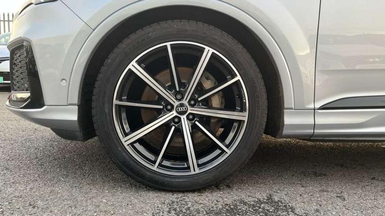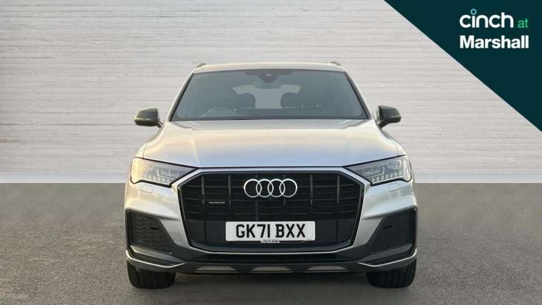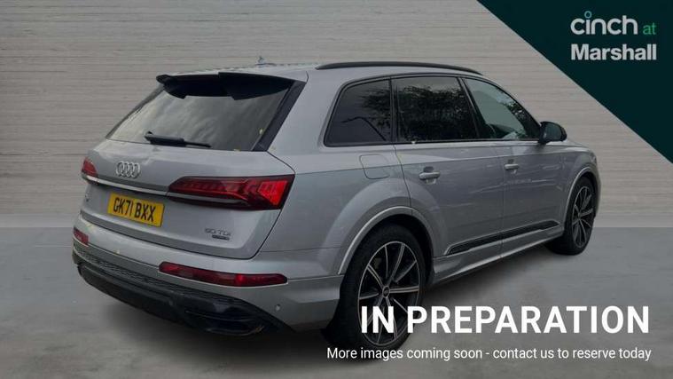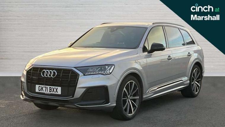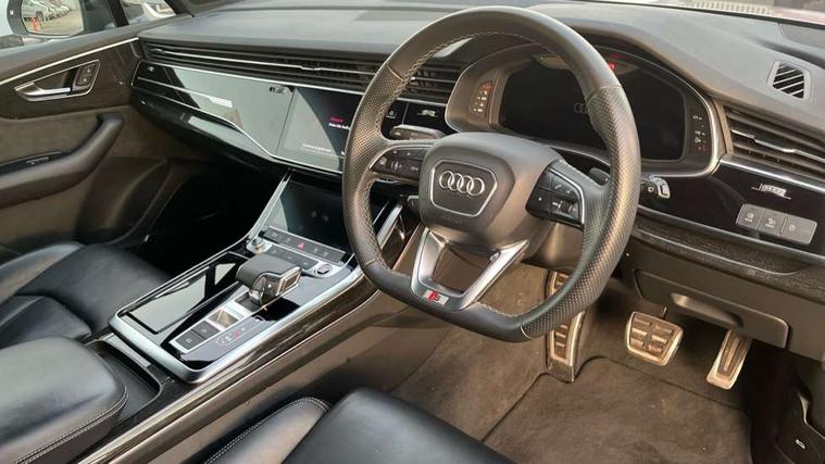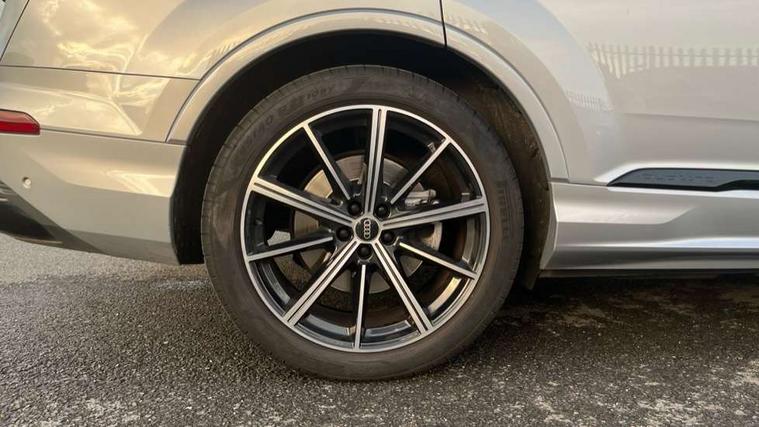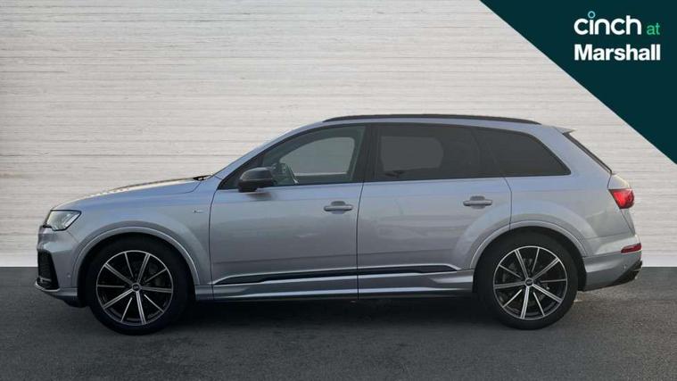 Audi connect safety and service (e-call), Audi connect with Amazon Alexa Integration, Audi drive select (Auto, Comfort, Dynamic, Efficiency, Individual, Off-road and All road), Bluetooth interface, Camera based traffic sign recognition, Electromechanical steering, MMI navigation plus with MMI touch screens includes 10.1" and 8.6" screens with haptic feedback, Natural voice recognition, Parking system plus with 360 degree display (front, rear and side sensors) - acoustic and visual park assist system, Power operated tailgate, Rear view camera, Smartphone interface includes wireless Apple carplay/Android Auto, Start/stop system, 48V Mild hybrid technology, Adaptive air sports suspension, Quattro all wheel drive with self locking centre differential, Audi music interface - front 2 USB-C ports with charger and data functions, Audi sound system with 6 channel amplifier, 180 watt amplifying capacity and 10 loudspeakers including subwoofer, DAB digital radio module, Audi matrix LED headlights with dynamic front and rear indicators, Auto dimming frameless rear view mirror, Black roof rails, Bumpers in contrast paint scandium grey finish includes door trim and wheel arch trim strips, inlays in door strip contain quattro embossing, Electrically adj heated/folding + automatically dimming exterior mirrors with memory + automatic kerb side function for passenger side exterior mirror, Heat insulating glass in windshield, Integrated LED indications in door mirrors, LED daytime running lights, LED rear tail lights, Privacy glass - dark tinted rear and rear side windows from B-pillar backwards, 4 zone deluxe automatic climate control, 7 seat layout with ISOFIX points for the front passenger seat and rear passenger seat, Black cloth headlining, Comfort front centre armrest, Electric adjustable front seat with 4 way lumbar support, driver memory functionality, Folding rear seats, Front head restraints, Front/rear floor mats, Heated front seats, Illuminated door sill trims with S logo, LED interior ambient lighting, Luggage compartment cover, Luggage compartment sill protection in stainless steel, Rear head restraints, Stainless steel pedals, Sunvisors with illuminated vanity mirrors, Titanium black styling pack - Q7/SQ7, 3 point seatbelts on all rear seats, Audi pre sense front, Driver and front passenger, front side and curtain airbags, Electromechanical parking brake, Electronic Stabilisation Control (ESC) including ABS, ASR and EDL, Extended pedestrian protection measures, Hill hold assist, Seatbelt monitoring, Tyre pressure loss indicator, Warning triangle and first aid kit, Anti theft alarm, Anti-theft wheel bolts and wheel loosening detection, Keyless Go, Remote central locking, Polished oak trim with grey finish inlay, Tool kit, Tyre repair kit,