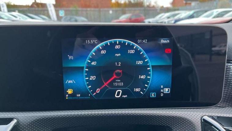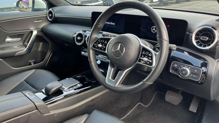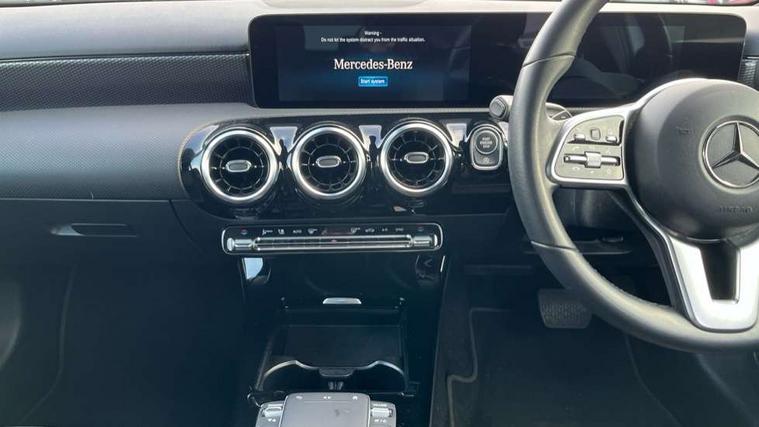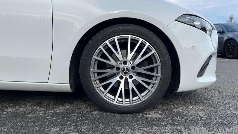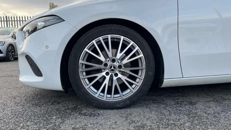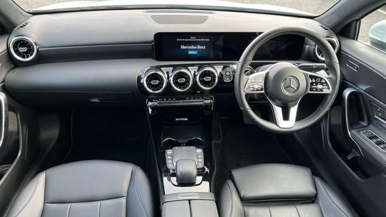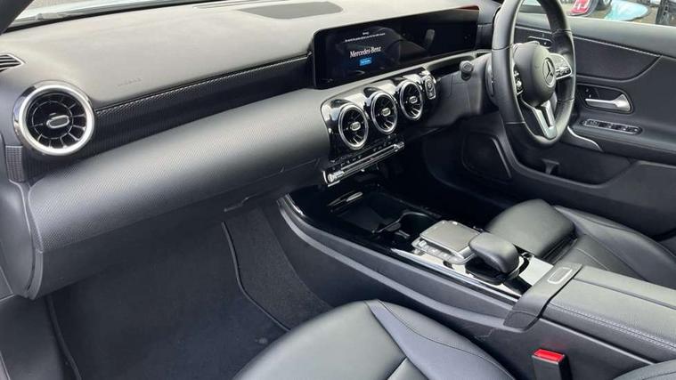 10.25" media display, 180 degree rear view camera with parking guidelines, 7" colour screen in instrument panel, Active parking assist with visual and audible warning of detected obstacles, Attention assist, Brake pad wear indicator warning light, Car wash mode, Cruise control + speed limiter, Direct steering, Dual bluetooth interfaces, DYNAMIC SELECT with a choice of driving modes (ECO, Comfort, Sport and Individual), ECO start/stop function, Fluid level warning indicator for fuel, oil, coolant and washer fluid, Hard-disk navigation, Hey Mercedes Voice activation, Lamp failure indicator, Lane keeping system, Mercedes me connect including emergency call system, accident recovery, breakdown and maintenance management, Mercedes me remote services, Outside temperature gauge, Owners manual in English, Pre-installation for private car sharing, Preinstallation for Mercedes Benz link, Service indicator (ASSYST), Smartphone integration with Apple CarPlay and Android auto, Speed sensitive power steering, Trip computer, Ultrasonic sensors positioned in the front and rear bumpers, Lowered comfort suspension, Rear axle torsion beam, 2 USB ports (type C) in rear stowage compartment and one in front of center console, 6 speakers, DAB Digital radio, MBUX multimedia system with DAB digital radio and touchpad including satellite navigation, Mercedes-Benz sound system - 100W, 4 Electric Front and Rear windows, Adaptive brake lights, Automatic headlights, Black weather strip, Body colour bumpers, Body colour door handles, Body colour side skirt, Body coloured door mirrors, Chrome beltline trim, Diamond radiator grille with black pins with one louvre in silver + chrome insert, Electric adjustable and heated door mirrors with integrated LED side indicators, Exhaust system - Twin visible tailpipes in polished stainless steel, Headlamp assist automatic headlamp activation, Heated glass rear windscreen + timer control, LED High level third brake light, LED high performance headlamps with integrated LED daytime running lights, LED tail lamp, Privacy glass, Radio aerial, Rain sensing windscreen wipers with two sensitivity settings, Rear fog lights, Rear side wing doors, Rear wiper, Window line trim strip in chrome, 3 seat bench in 2nd row, 3 Spoke leather multi function steering wheel, 40:20:40 split folding rear seats, Artico man-made leather upholstery, Auto Mercedes-Benz child seat recognition sensor, Black air vents with surround in silver chrome, Black roof lining, Controller on centre console with chrome surround, Front centre armrest with storage compartment, Front comfort seats with adjustable head restraints, Front door sills with Mercedes Benz lettering, Front seat backs luggage nets, Front seat cushion length adjustment, Gearshift paddles on steering wheel, Heated front seats, Height/reach adjustable steering column, Interior mirror with reading lamps in black and frameless, Manual height adjustable front seats, Rear head restraints, Seat occupancy sensor for front passenger seat, Single front passenger seat, Stowage compartment in centre console with retractable cover, Sunvisors with illuminated vanity mirrors, Touchpad on center console, Twin front cupholders, Two zone thermotronic luxury automatic climate control, Velour floor mats, Light and sight pack - A Class, Mirror package - A Class, Seat comfort pack - A Class, 3 rear 3 point seatbelts, ABS with Brake Assist, Active bonnet, Active brake assist includes forward collision warning system with autonomous braking, Adaptive brake assist with hold function and hill start assist, Black seatbelts, Childproof locks manually operated for rear doors and electrically operated for rear power windows, Crash responsive emergency lighting, Driver and passenger head and side airbags, Drivers knee airbag, Dual stage driver/passenger airbags, Electronic parking brake, ESP curve dynamic assist, ESP with ASR, Front and rear seatbelt reminder, ISOFIX and top tether child seat fixing points in two outer rear seats, Tyre pressure monitoring system, Warning triangle and first aid kit, Window airbags, Alarm system/interior protection/immobiliser, Keyless Go, Remote central locking and crash sensor with emergency opening function, Urban guard vehicle protection system with immobiliser and interior protection, Dark carbon fibre interior trim, 18" multi spoke light alloy wheels painted in himalayas grey with a high sheen finish, Summer tyres, Tirefit sealant kit,