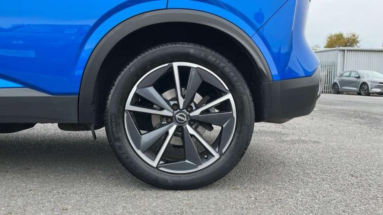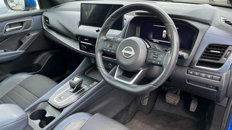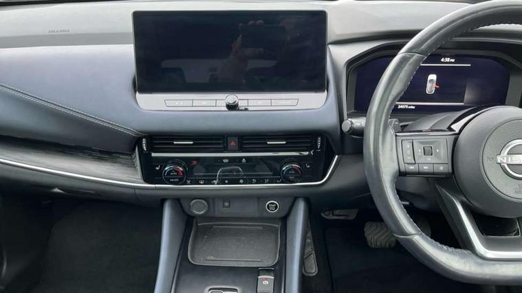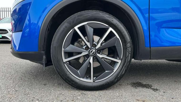 Advanced windscreen head up display, Android auto/Apple CarPlay (Wired), Blind spot warning, Drive modes (sport, normal, eco), Electric speed sensitive power steering, Emergency and breakdown call, Front and rear parking sensors, Full Digital 12.3" TFT Digital Combimeter, Google maps services - search, weather, 3D maps and Google street view, Hands free power tailgate, Idle stop/start system, Intelligent around view monitor, Intelligent Cruise control (ICC), Intelligent driver alert system, Intelligent forward collision warning, Intelligent lane intervention, Lane departure prevention, Lane departure warning system, Lane keep assist, Moving object detection, Nissan connect 12.3 inch touchscreen infotainment system, Nissan connect navigation, ProPilot, Push button starter, Rear cross traffic alert, Rear view camera, Remote control services - door locks, lights, horn and car locator, Telematics - notifications and connectivity services, TomTom live traffic services, Traffic jam pilot, Traffic sign recognition with legal speed adjustment, Trip computer, Virtual personal assistant and firmware over the air capability, Wireless apple carplay, Wireless charging pad, 6 speakers, AM/FM audio system with DAB, Bluetooth audio streaming, Front USB connections (Type-A and Type-C), Rear USB charging only ports (Type-A and Type-C), Auto dimming rear view mirror, Auto rear wiper when reversing, Automatic hazard signal with emergency stop signal, Body colour mirror caps, Body coloured door handles, Bodyside mouldings, Chrome side window finisher, Door handle with button, Electric auto folding door mirrors, Electrically adjustable and heated door mirrors with LED turn indicator, Follow me home headlights, Front and rear LED turning signals, Headlights auto levelling system, Intelligent auto headlights, LED daytime running lights, LED headlights with adaptive driving beam, LED rear lights, One touch front and rear electric windows with remote opening and closing, Partially body coloured bumpers, Privacy glass, Rear bumper with graphite insert, Rear reversing light (bulb lighting), Rear roof spoiler, Rear side wing doors, Rear styling plate, Shark fin antenna, Splash free rain sensing wipers, Super UV and infrared cut glass, Thermaclear heated windscreen, Three blink turn signal, 12v power socket in dashboard and luggage, 2x Rear coat hooks, 3 bench rear seats in 2nd row, 3 rear headrests, 4 folding assist grip, 6 Luggage hooks - 4 on floor, 2 on side, 60/40 split folding rear seat bench, Ambient lighting around centre console, Ambient lighting in front doors, Centre console storage tray, Chrome interior door handles, Cloth/syntech leather monoform upholstery, Dark black/blueish PVC wrapping, Dark headlining, Driver and front passenger sunvisors with illuminated vanity mirrors, Driver seat back pocket, Dual zone automatic climate control with pollen filter, Electrically adjustable driver seat, Electrically adjustable lumbar support for driver, Front and rear door storage, Front centre console and armrest, Front cupholders x 2, Front door with bottle holders, Glovebox with light, Hard trunk cover, Heated front seats, Heated steering wheel, Height adjustable driver's seat, Height adjustable front headrests, Height adjustable passenger seat, Leather steering wheel, Luggage board system, Luggage space lighting, Manual lumbar support on passenger seat, Manually adjustable passenger (slide recline + lifter), Multifunction steering wheel, Passenger seat back pocket, Rear armrest with 2 cupholders, Rear door bottle holders, Single front passenger seat, Soft PVC kneepad, Steering wheel gearshift paddles, Steering wheel switches, Tilt/telescopic adjustable steering wheel, Two rear isofix child seat anchorage points with top tether, Welcome light and doors with console tray ambient lighting, Glass roof pack with roof rails - Qashqai, 3x3 point rear seatbelt pretensioners + load limiters, ABS with EBD and brake assist, Active brake limited slip, Auto hold function, Child locks on rear doors, Curtain and front side, far side airbags, Driver and passenger airbags, Driver, passenger and 2nd row rear seat belt reminder, Electronic parking brake, Front seatbelt pretensioners + load limiters, Height adjustable front seatbelts, Hill start assist, Intelligent blind spot intervention, Intelligent front emergency braking with pedestrian, cyclist recognition and junction assist, Intelligent rear automatic braking, Tyre pressure monitoring system, Vehicle dynamic control, Capless fuel filler, Engine immobiliser, Intelligent Key, Remote central door locking with deadlocking, Thatcham Cat.1 alarm, Interior instrumental panel C finisher, 19" Alloy wheels, Tyre puncture repair kit,