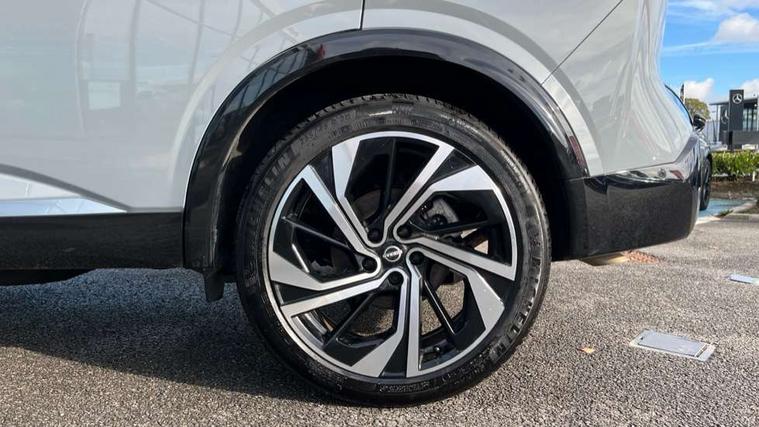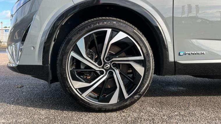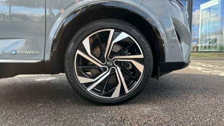2 front USB-C ports, 2 rear USB-C ports, 360 degree Intelligent around view monitor with moving object detection, Advanced windscreen head up display, Blind spot intervention, Blind spot warning, Drive assist custom mode, Drive modes (sport, normal, eco), Driver drowsiness and attention warning, e-Pedal step, Electric speed sensitive power steering, Emergency and breakdown call, Emergency lane keep assist, Emergency Stop Signal (ESS), Engine start/stop button, EV mode switch, Event data recorder, Front and rear parking sensors, Full Digital 12.3" TFT Digital Combimeter, Google virtual personal assistance, Hands free power tailgate, Idle stop/start system, In-car WIFI hotspot, Intelligent Cruise control (ICC), Intelligent forward collision warning, Intelligent speed assist, Lane departure warning system, Nissan connect 12.3 inch touchscreen infotainment system, Nissan connect navigation with google maps, Nissan connect services 2.0 (Google Automotive System), Outside temperature sensor, Rear cross traffic alert, Reversing detection, Traffic jam pilot, Wireless Apple CarPlay/Android Auto, Wireless charging pad, Limited slip differential, Multi link suspension, 10 Bose speakers - 2 tweeters, 6 high and medium frequency door speakers and 2 in subwoofer, AM/FM audio system with DAB, Bluetooth audio streaming, Bose acoustimass bass box, Auto dimming frameless rear view mirror, Auto rear wiper when reversing, Body colour mirror caps, Body coloured bumpers, Body coloured door handles, Bodyside mouldings, Chrome side window finisher, e-POWER badging, Electric auto folding door mirrors, Electrically adjustable and heated door mirrors with LED turn indicator, Follow me home headlights, Glossy black bumper inserts and fenders, High beam assist, Intelligent auto headlights, LED 3rd brake light, LED daytime running lights, LED headlights with adaptive driving beam, LED rear lights, LED sequential turn lights, One touch front and rear electric windows with remote opening and closing, One touch passenger window, Rear privacy glass, Rear roof spoiler, Rear side wing doors, Rear styling plate, Reverse tilting door mirrors, Shark fin antenna, Silver roof rails, Splash free rain sensing wipers, Super RED rear LED lights, Super UV and infrared cut glass, Thermaclear heated windscreen, 3 bench rear seats in 2nd row, 3 rear headrests, 60/40 split folding rear seat bench, Chrome interior door handles, Dark headlining, Driver seat back pocket, Dual zone automatic climate control with pollen filter, e-POWER shifter, Fixed Glass roof with electric sunshade, Front door with bottle holders, Heated front seats, Heated steering wheel, Height adjustable front headrests, Luggage board system, Luggage space lighting, Multifunction steering wheel, Passenger seat back pocket, Quilted premium leather upholstery, Rear door bottle holders, RGB ambient light (Full area coverage), Single front passenger seat, Smooth leather steering wheel, Tilt/telescopic adjustable steering wheel, Two rear isofix child seat anchorage points with top tether, 3x3 point rear seatbelt pretensioners + load limiters, Autonomous emergency braking, Child locks on rear doors, Curtain and front side, far side airbags, Driver and passenger airbags, Driver, passenger and 2nd row rear seat belt reminder, Electric handbrake with auto hold function, Front seatbelt pretensioners + load limiters, Height adjustable front seatbelts, Hill start assist, intelligent front emergency braking, Rear automatic braking, Tyre pressure monitoring system, Vehicle dynamic control, Engine immobiliser, Intelligent key with walk away lock and approach unlock functions, Remote central door locking with deadlocking, Thatcham alarm, 20" Diamond cut alloy wheels, Tyre puncture repair kit,